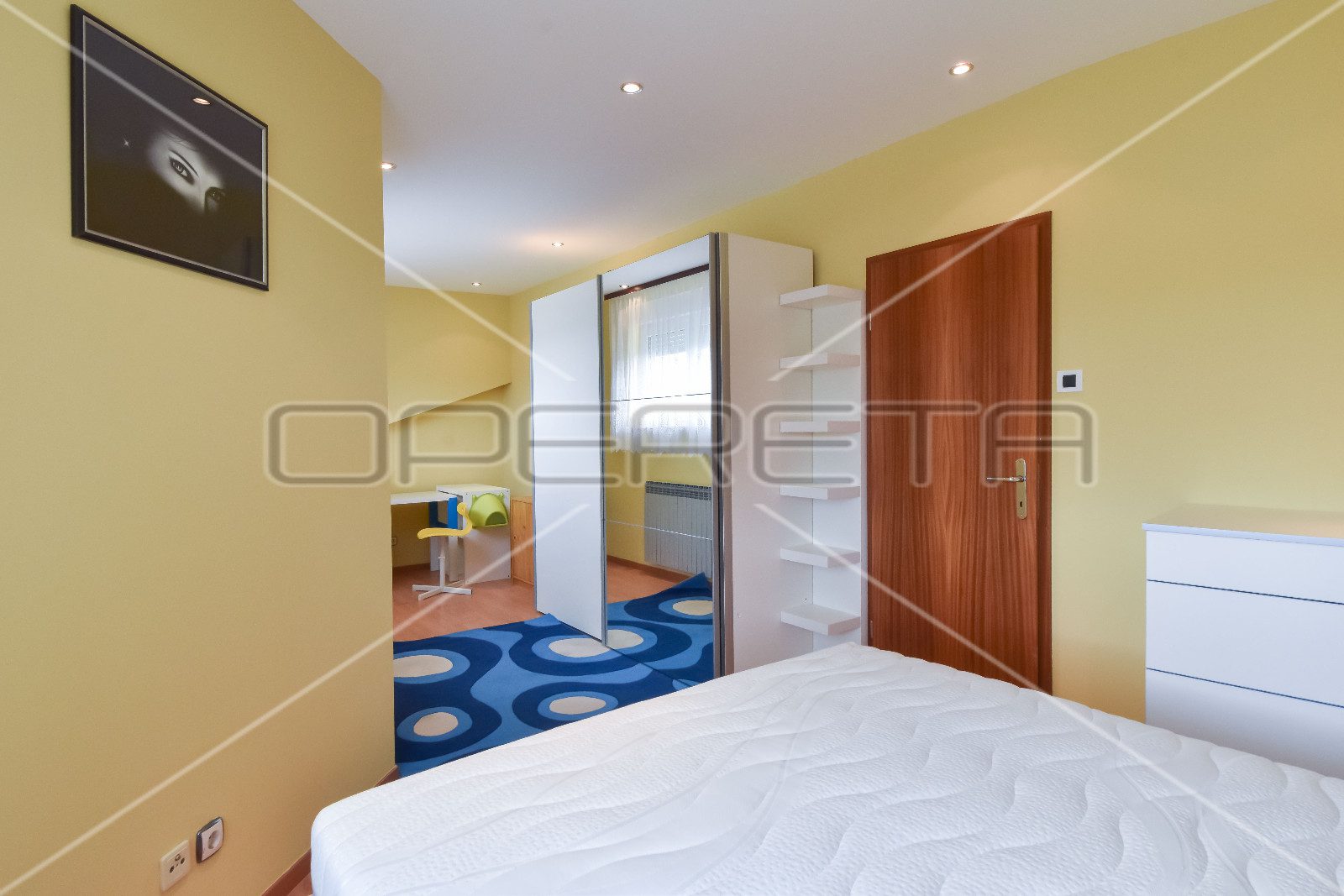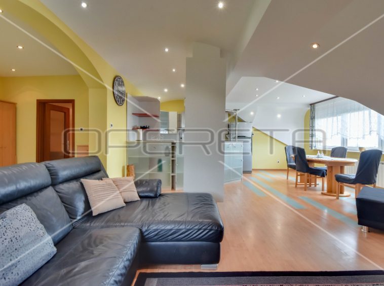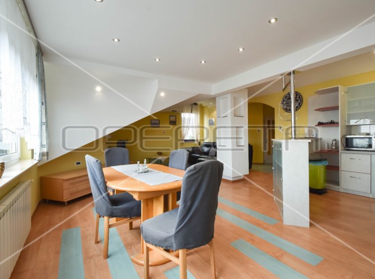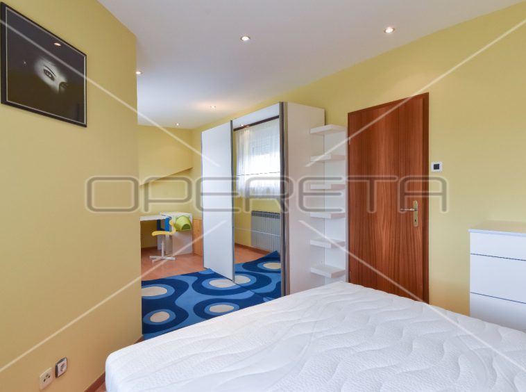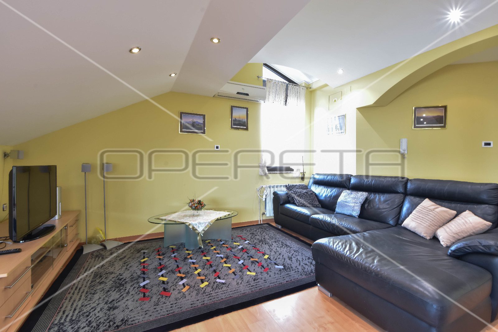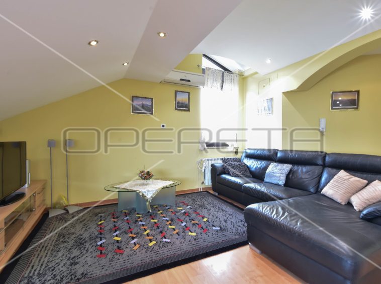 Bukovačka, 2-bedroom penthouse on the second floor, living area 90m2. Fully furnished, with air conditioning, furniture and household appliances. Parking space in the yard, quiet environment and beautiful view of the city. Possibility of using the garden with gazebo and barbecue.