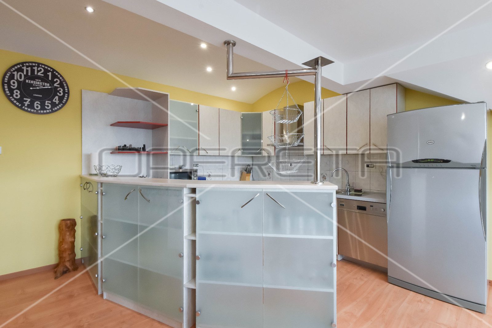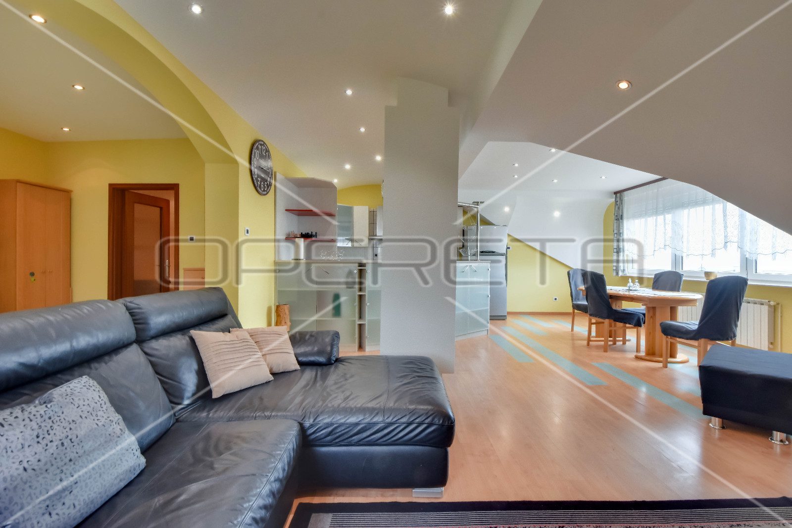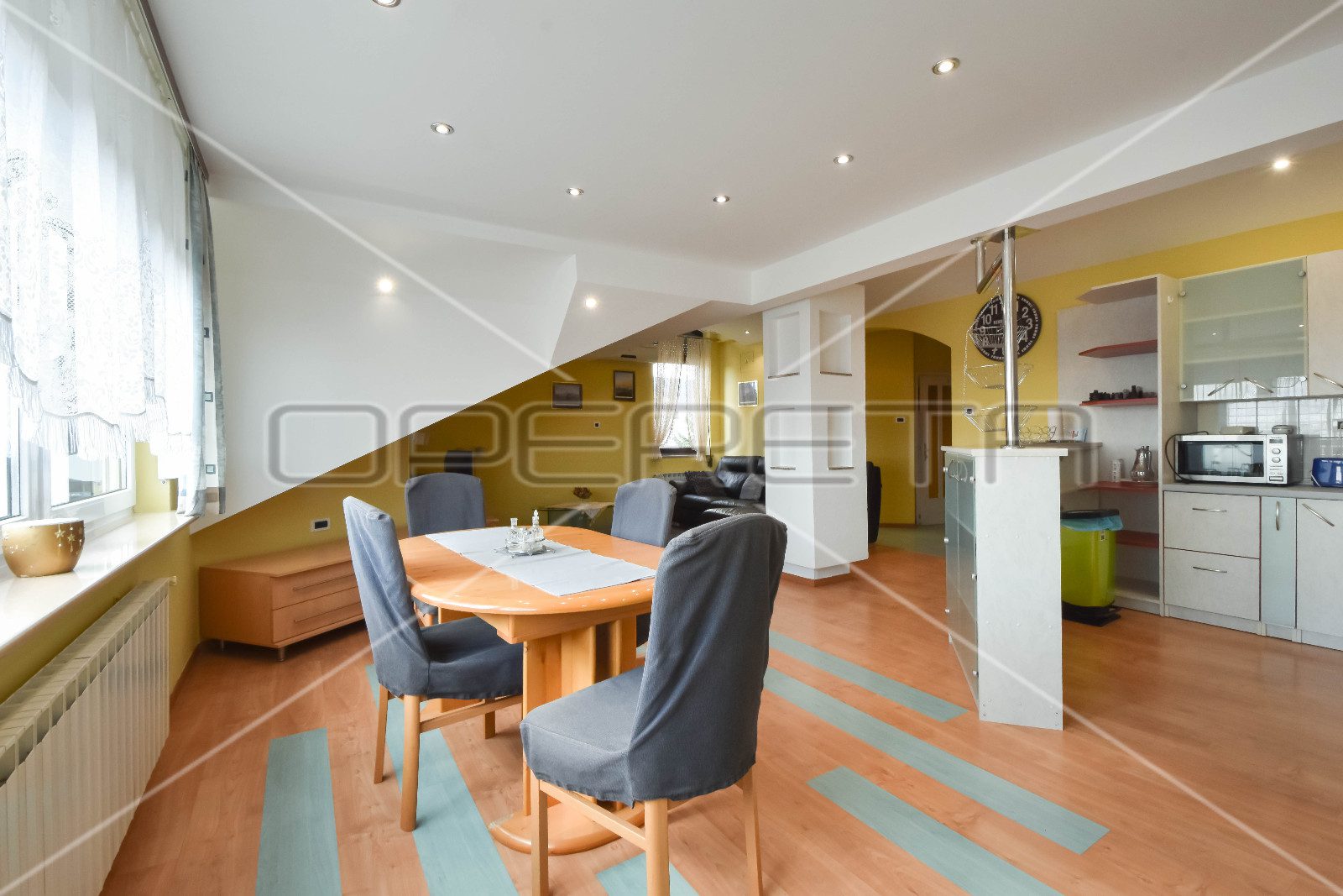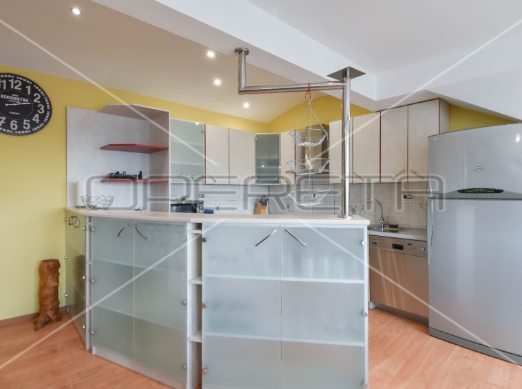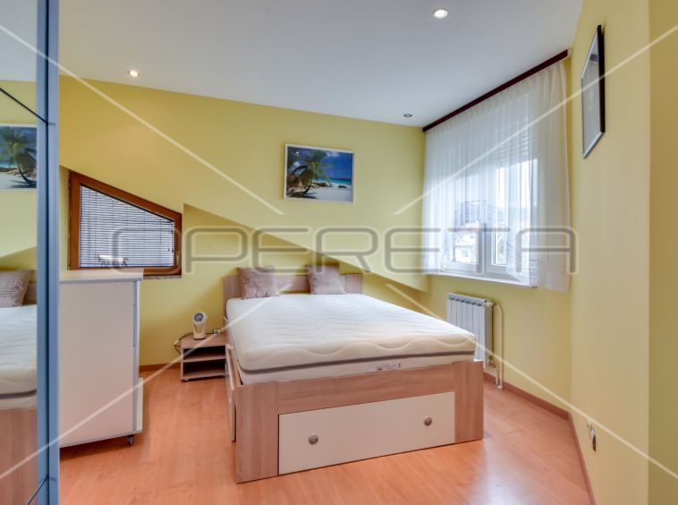 Bukovačka, 2-bedroom penthouse on the second floor, living area 90m2. Fully furnished, with air conditioning, furniture and household appliances. Parking space in the yard, quiet environment and beautiful view of the city. Possibility of using the garden with gazebo and barbecue.