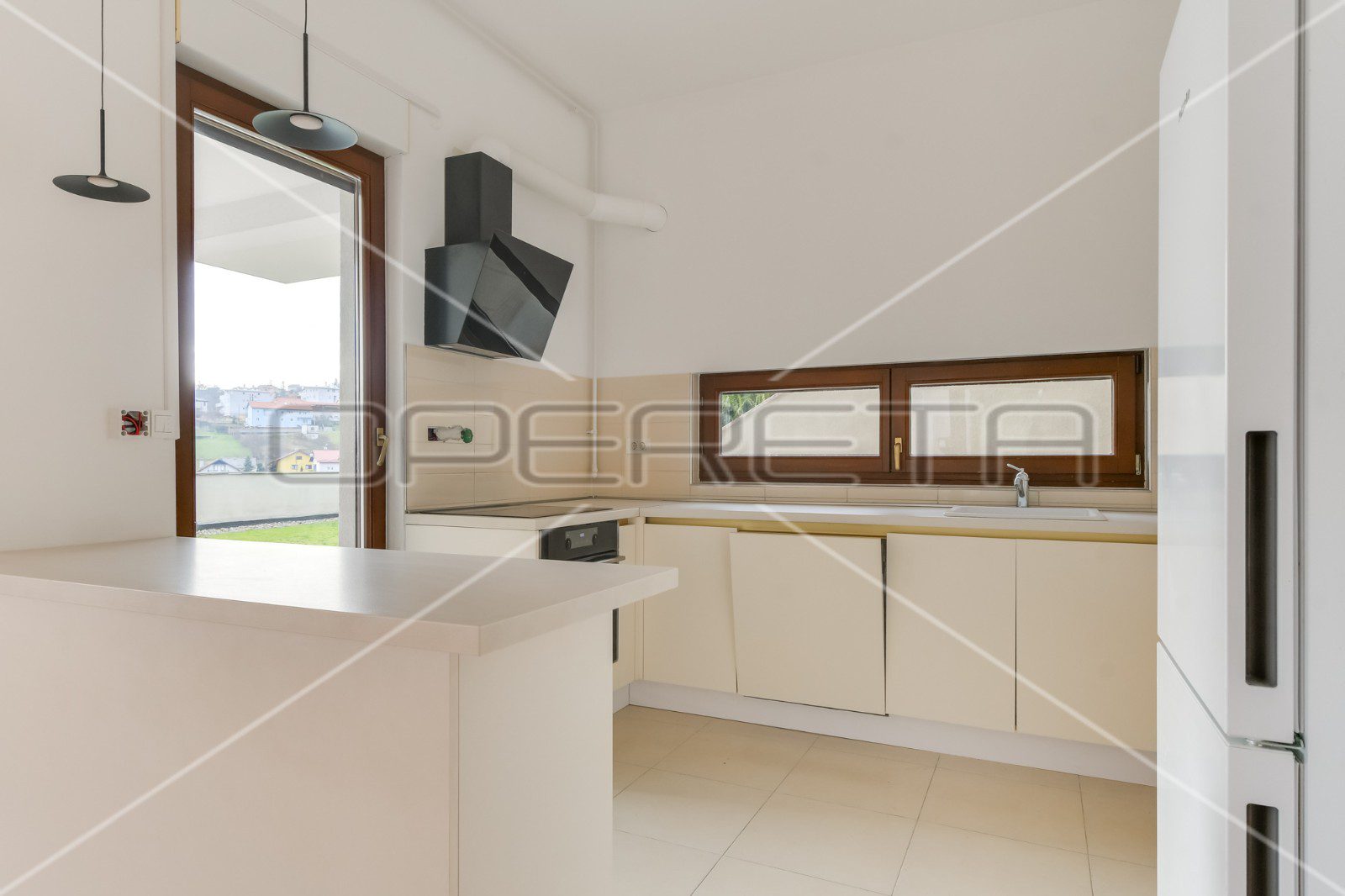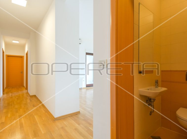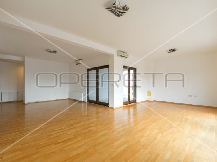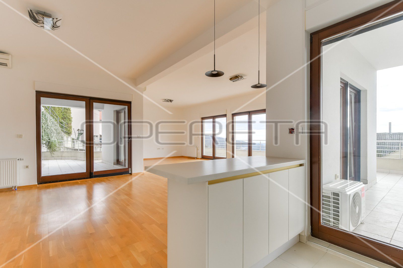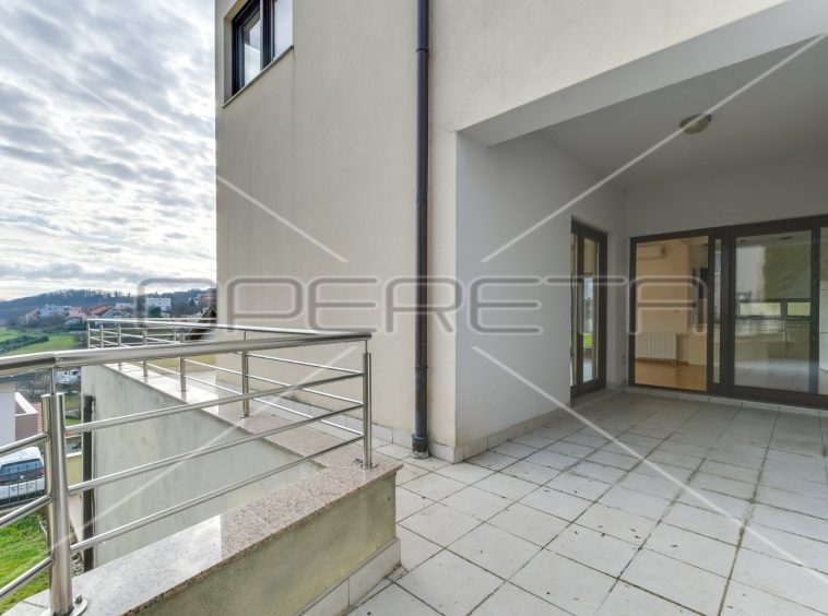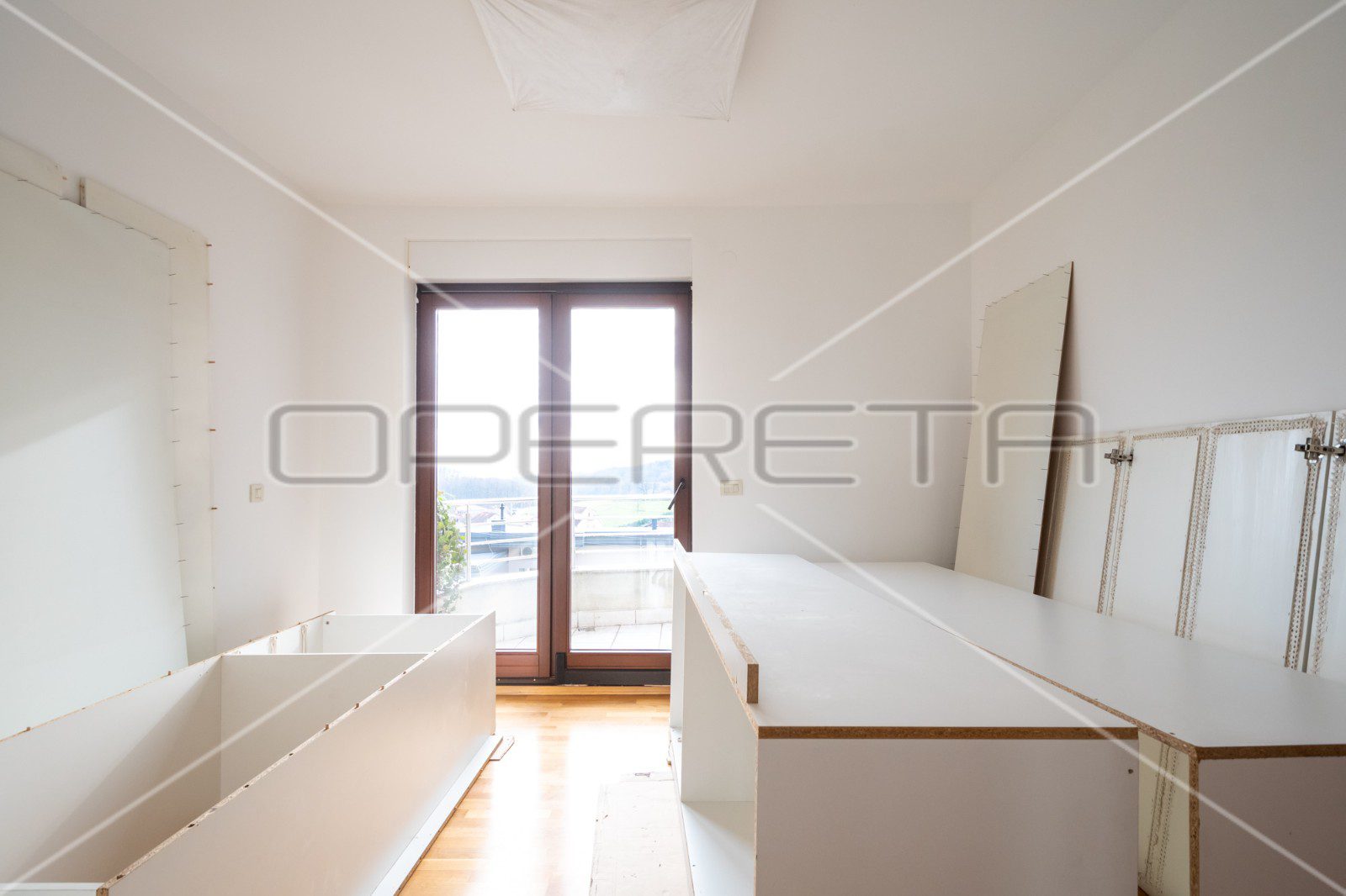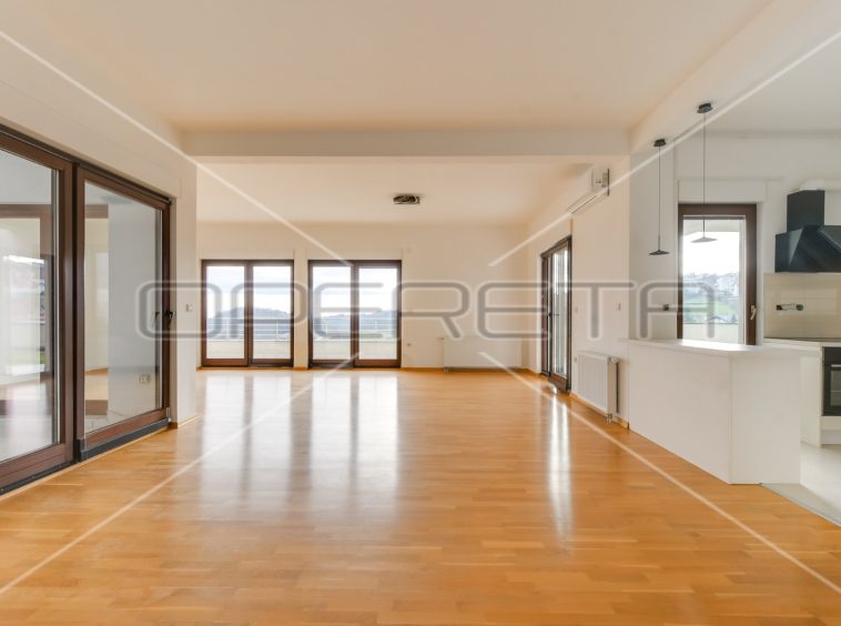 RENT OF 5-ROOM APARTMENT WITH GARAGE, 150 m2. In the Podsljemne part of the city, in a natural and peaceful environment with a beautiful view, an unfurnished apartment is for rent, consisting of 4 bedrooms, 3 bathrooms, a toilet, a kitchen with a dining room and a living room with access to a terrace and a garden. The apartment is surrounded by several balconies and terraces and has its own small garden, garage and one parking space, and is directly accessible by elevator. It is only 6 minutes to the grocery store, the bakery, and the bus station. A very pleasant and bright apartment, suitable for all those looking for a stay in nature, not far from the city.