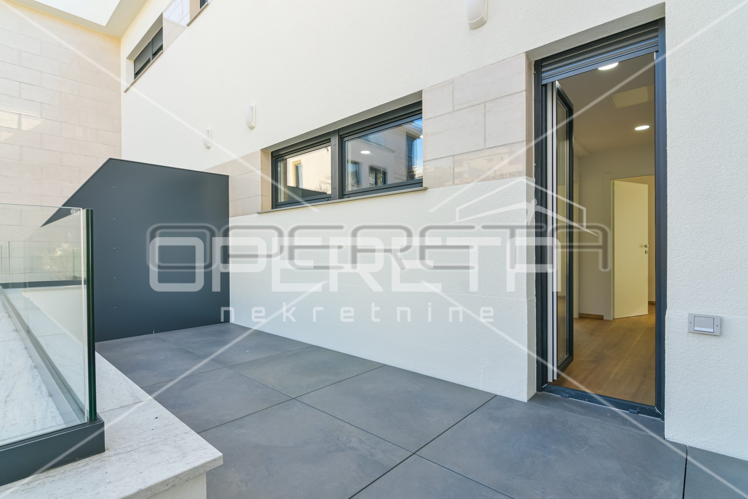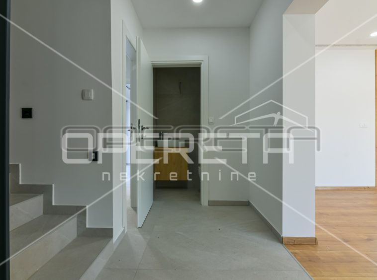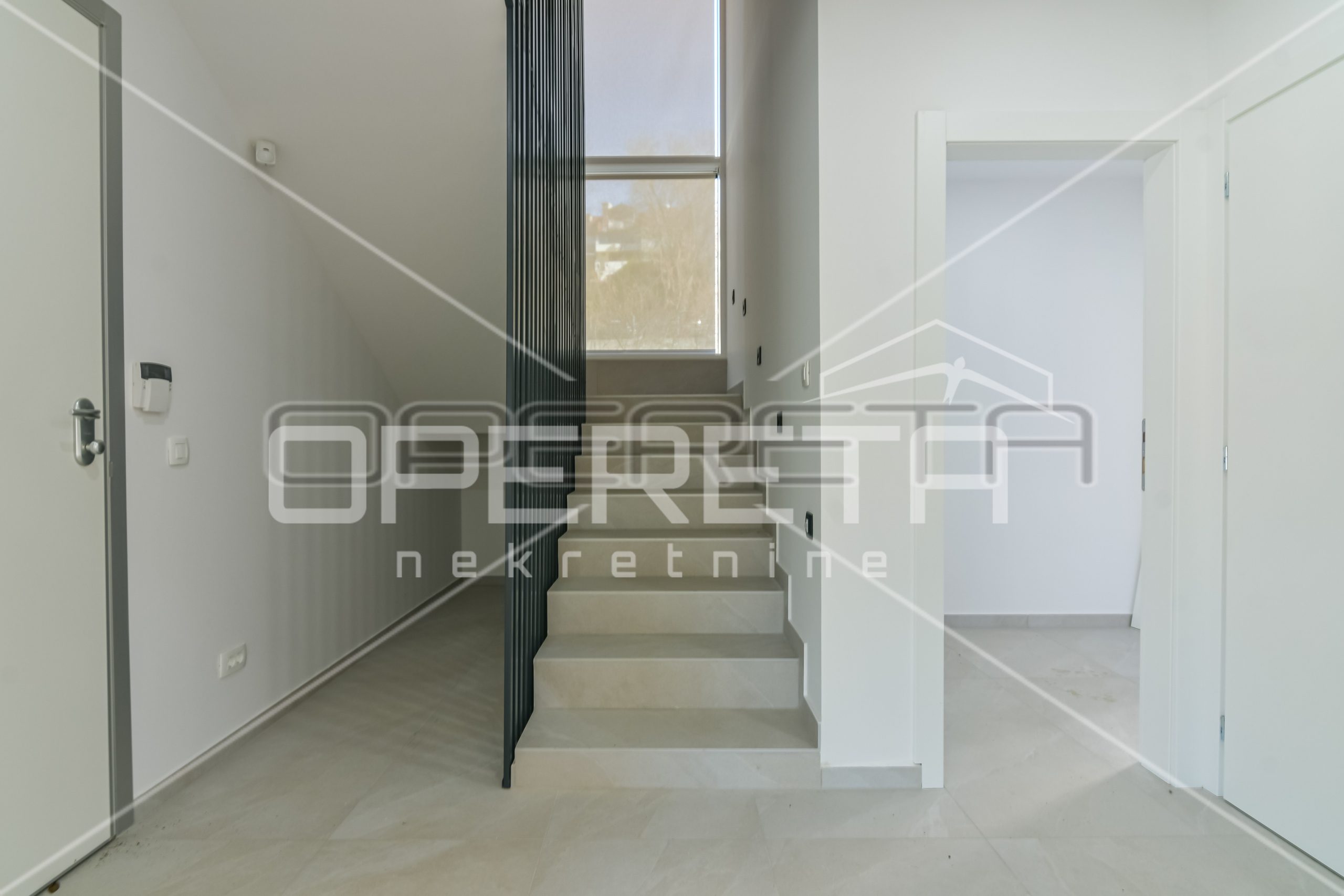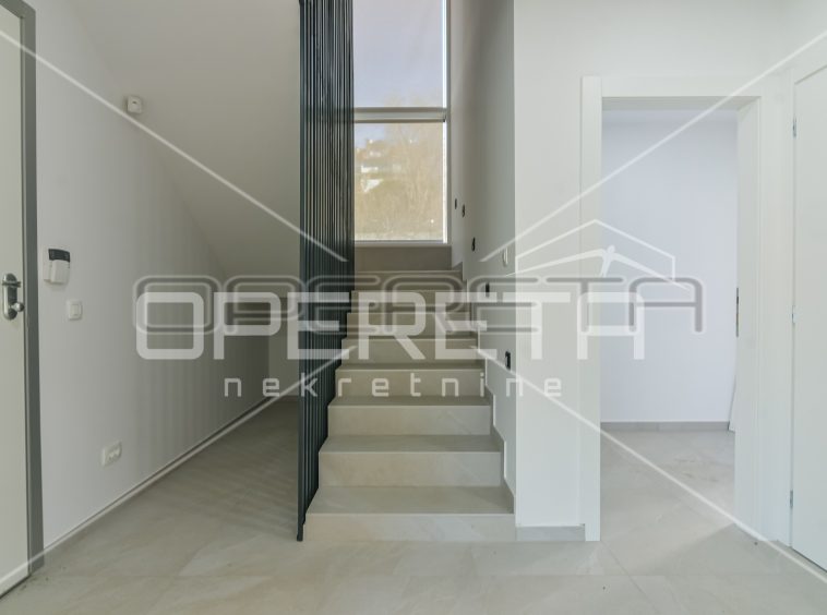 An exceptional property for rent in the luxurious Mlinovi Hills settlement. The duplex house, set back from the main road with its own driveway and garage and two parking spaces, enjoys complete privacy, and from all three floors offers a view of Sljeme and greenery.