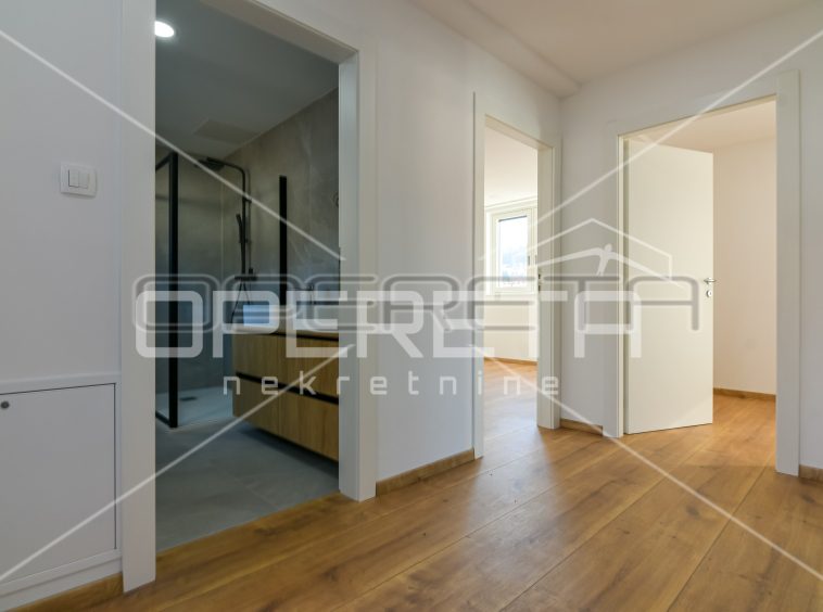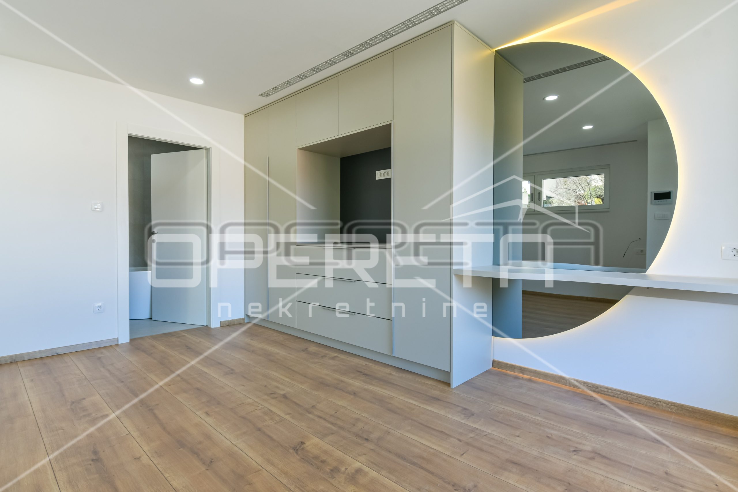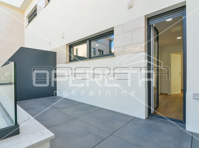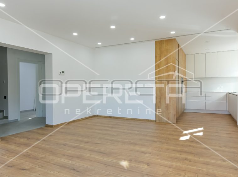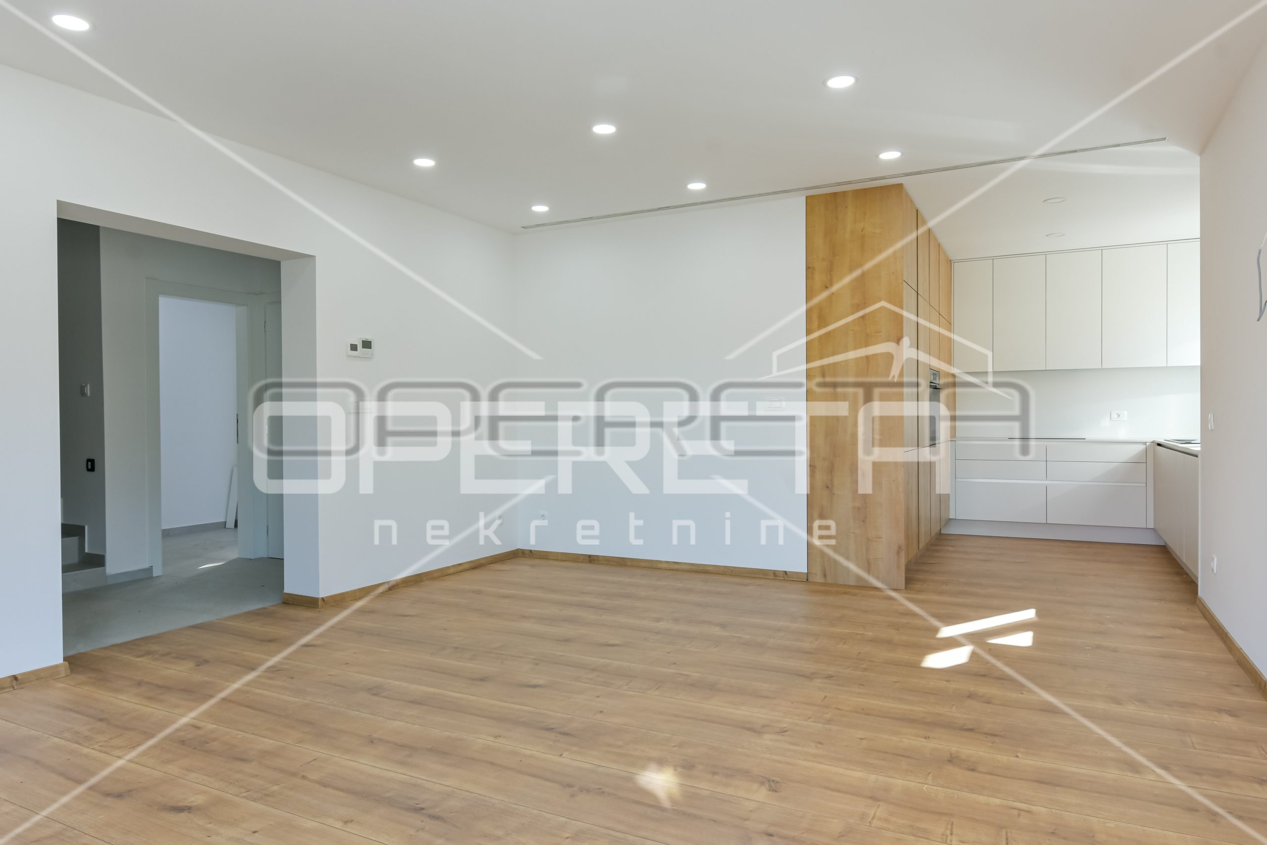 An exceptional property for rent in the luxurious Mlinovi Hills settlement. The duplex house, set back from the main road with its own driveway and garage and two parking spaces, enjoys complete privacy, and from all three floors offers a view of Sljeme and greenery.