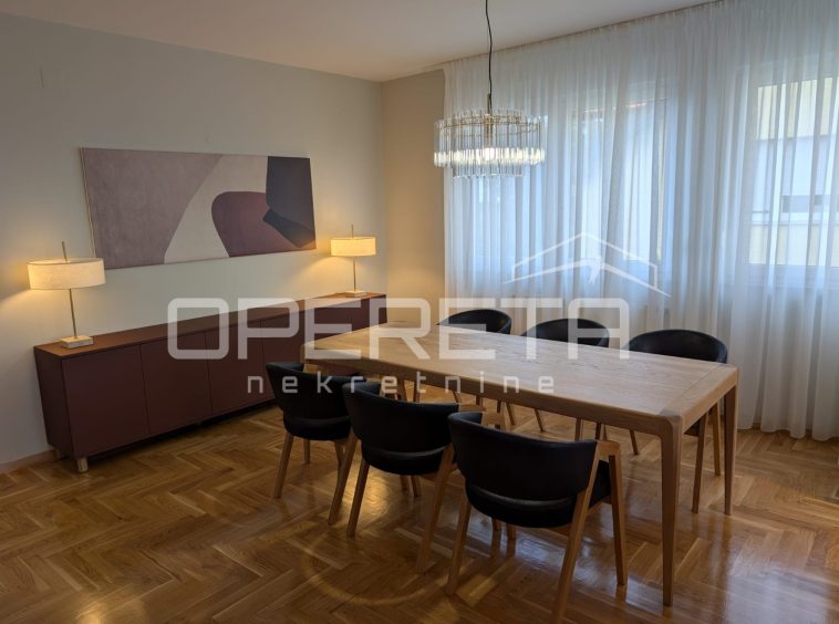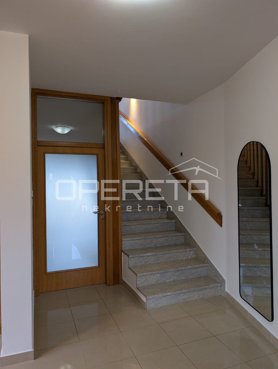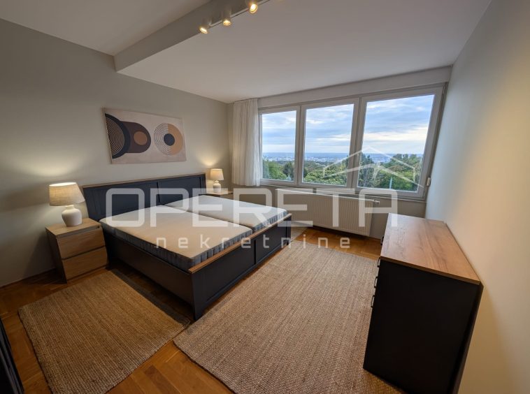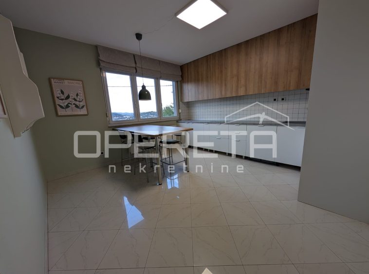LUXURY APARTMENT FOR RENT, ŠESTINE. Šestinski vrh, 240 m2, 4-bedroom with garage, garden and parking for three cars, which is spread over I. and II. floor. On the first floor there is an entrance hall that can be entered from the yard or from the garage, 3 separate bedrooms, 2 bathrooms with a toilet and one room with a washing machine and a clothes dryer, while on the II. on the first floor there is a living room that communicates with a spacious terrace and a dining room, a kitchen, a bathroom with a toilet and a separate toilet. Furnishing of the apartment is by agreement. Available from 01.07.2025. Excellent location with an emphasis on peaceful surroundings, closeness to nature and a great view.