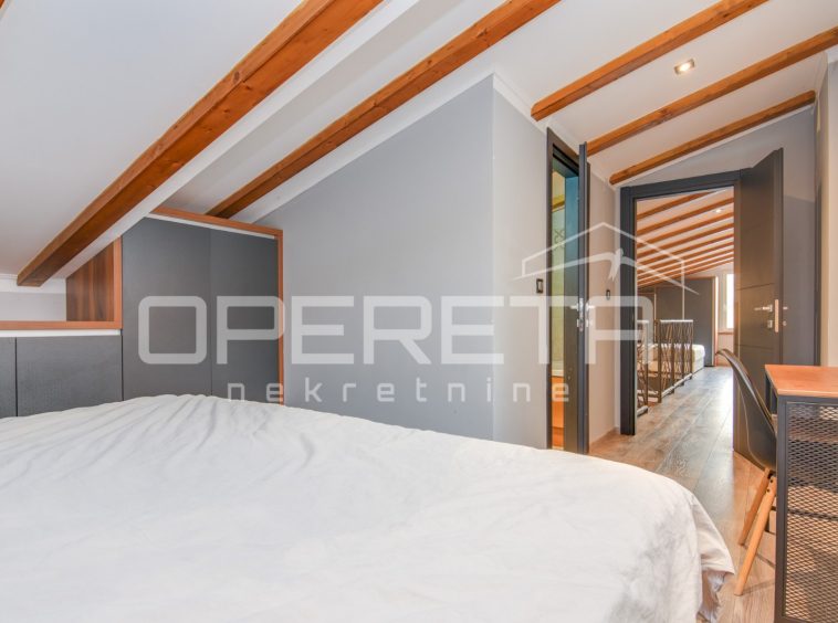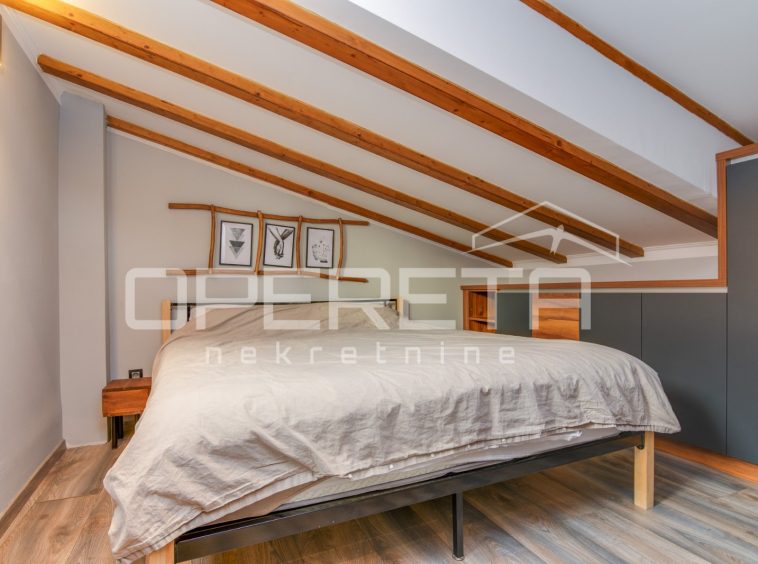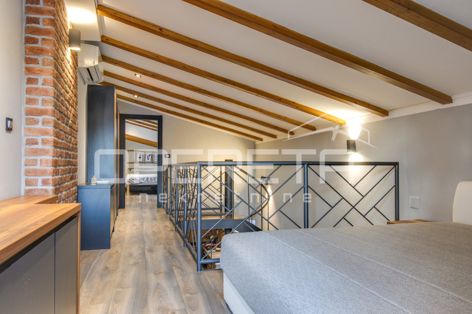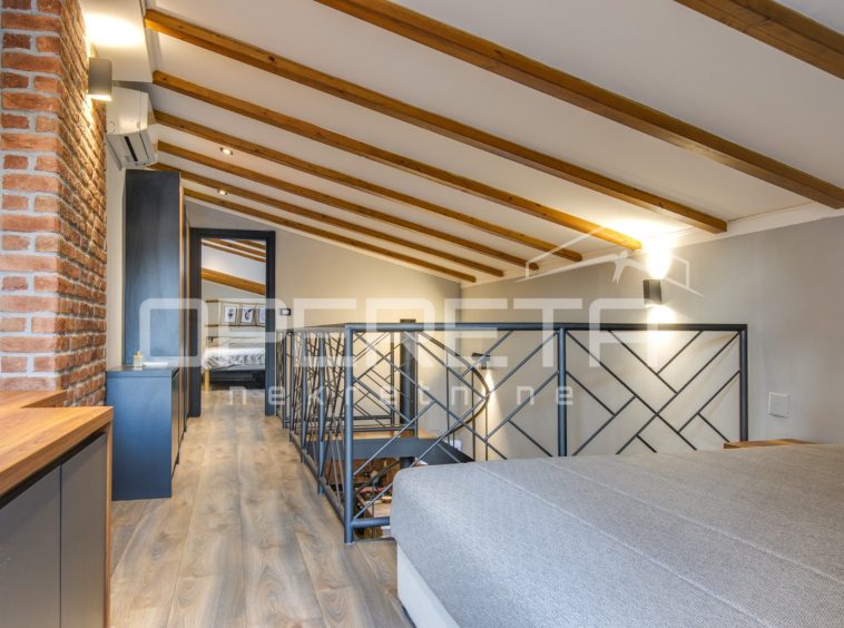 A duplex apartment is available for rent in Zagreb, located in Ilica, in close proximity to all essential amenities and public transportation. The apartment is situated on the first floor of a mixed-use residential and commercial building and has a total area of 86.88 m². It consists of a living room with a dining area and kitchen, a wardrobe, two bathrooms, a gallery, and a bedroom. In addition to the living space, the apartment features a spacious terrace of 19.61 m², providing extra room for relaxation and enjoyment. An ideal property for those seeking a high-quality and functional home in the very center of the city.