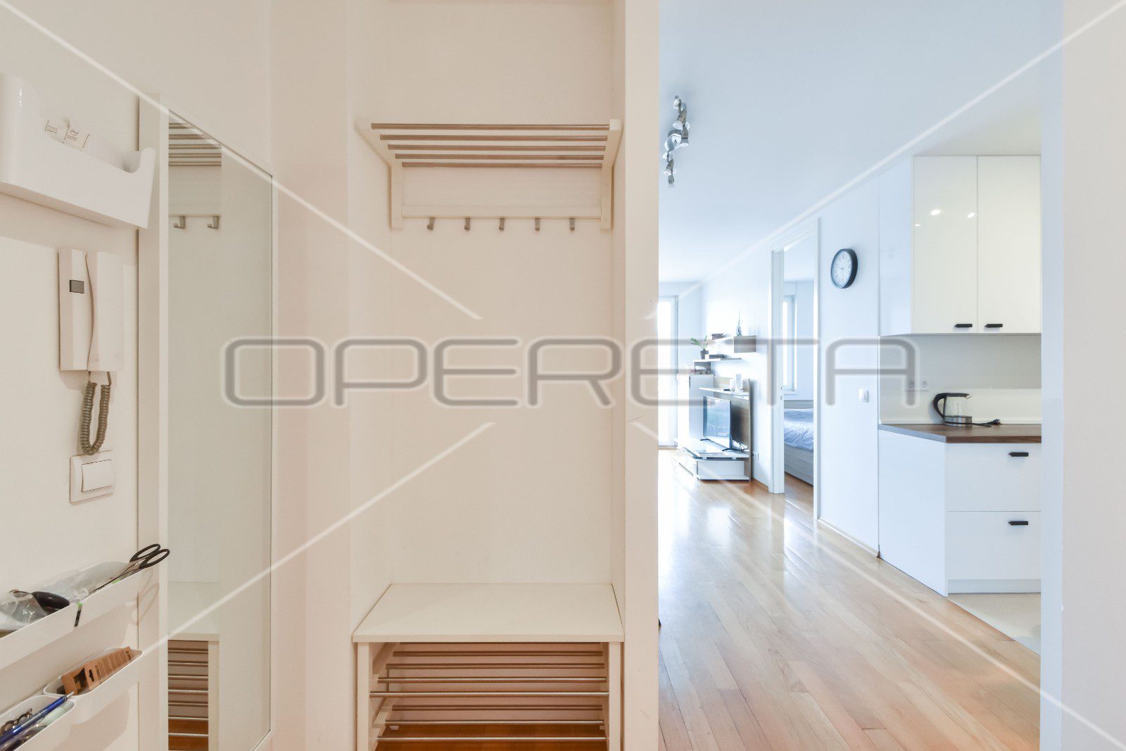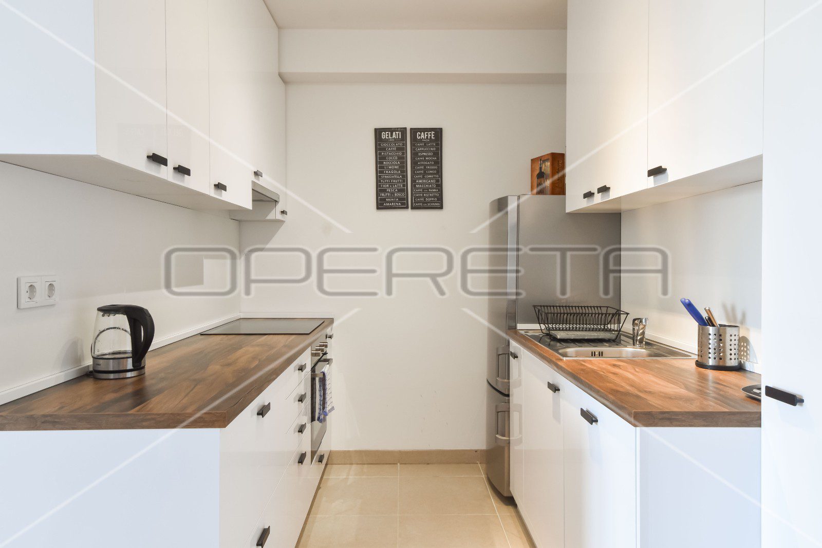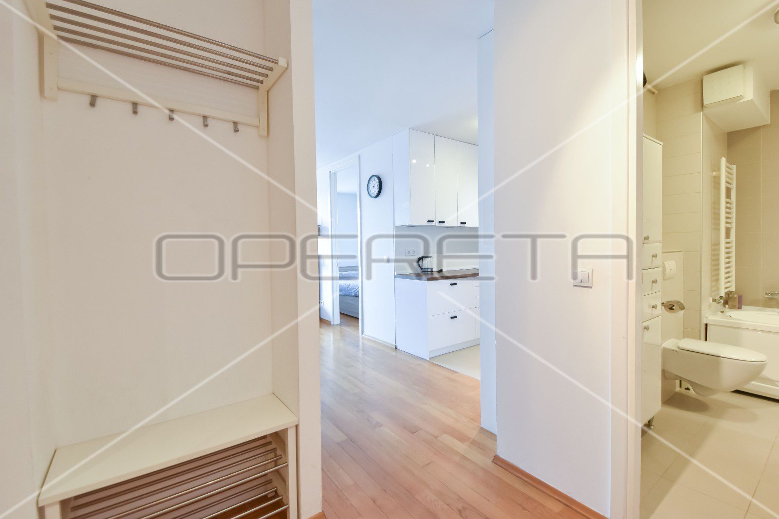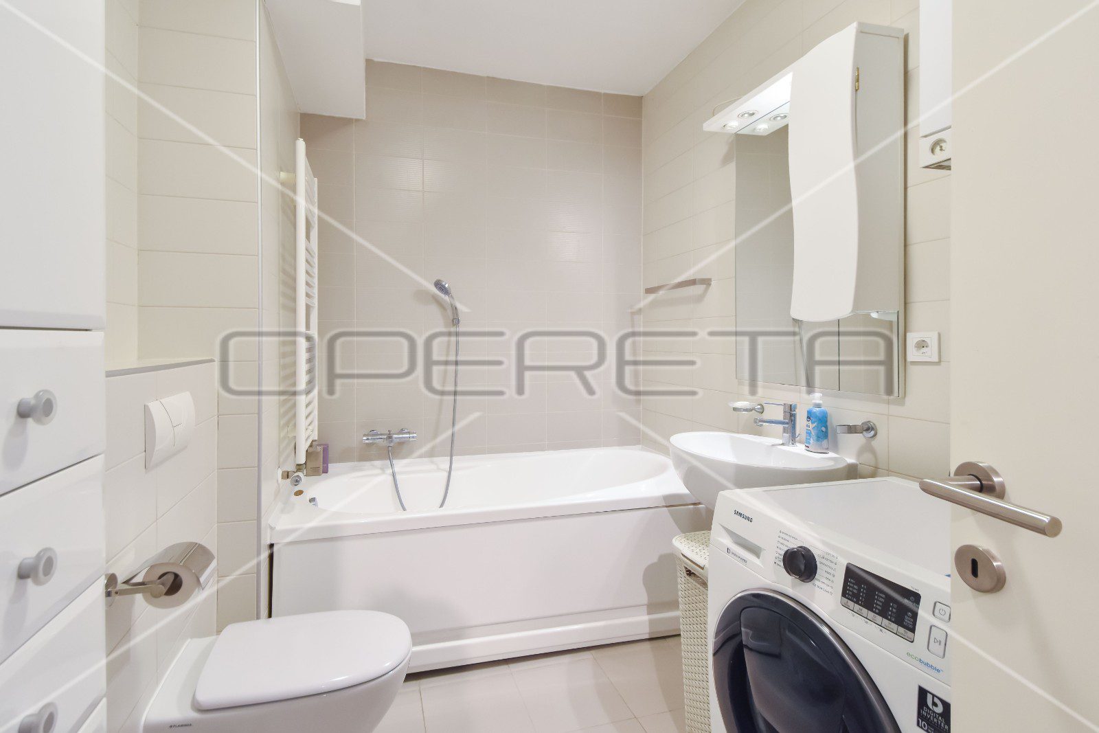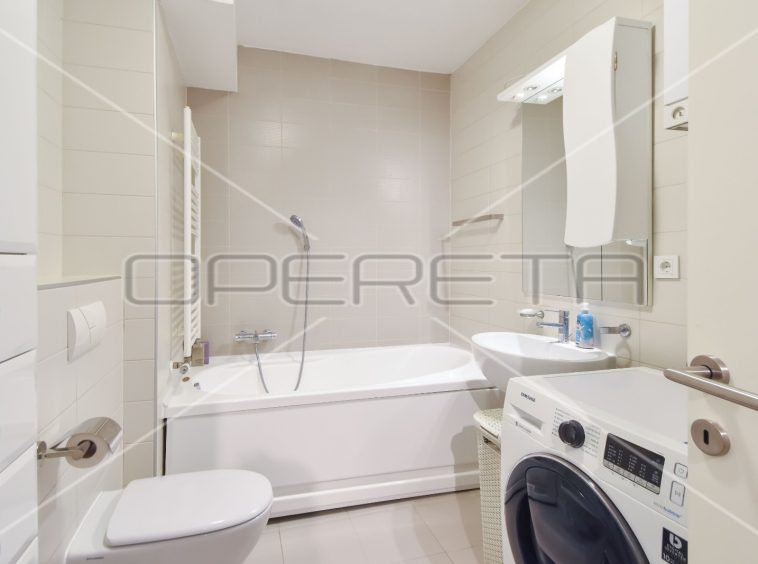 Excellent, modern two bedroom apartment on the 4th floor of a newer building with an elevator (2008). It consists of an entrance hall, bathroom with tub, living room connected to the dining room and kitchen, bedroom and loggia. Ideal for single or couple, fully equipped, gas central heating, air conditioning, north orientation, garage parking space. Excellent traffic connection, surrounded by all necessary facilities for life,