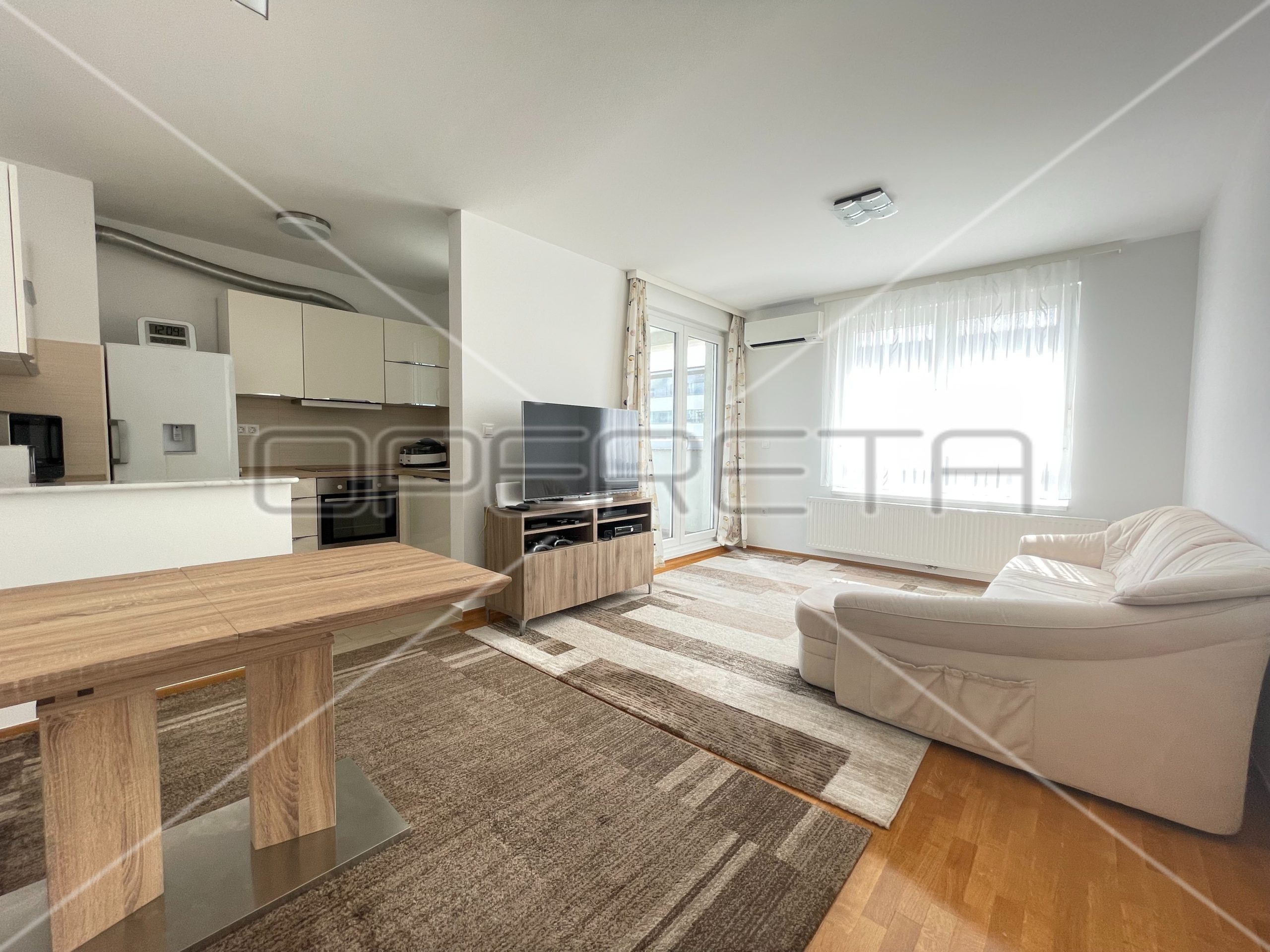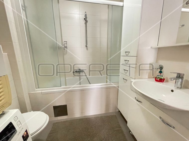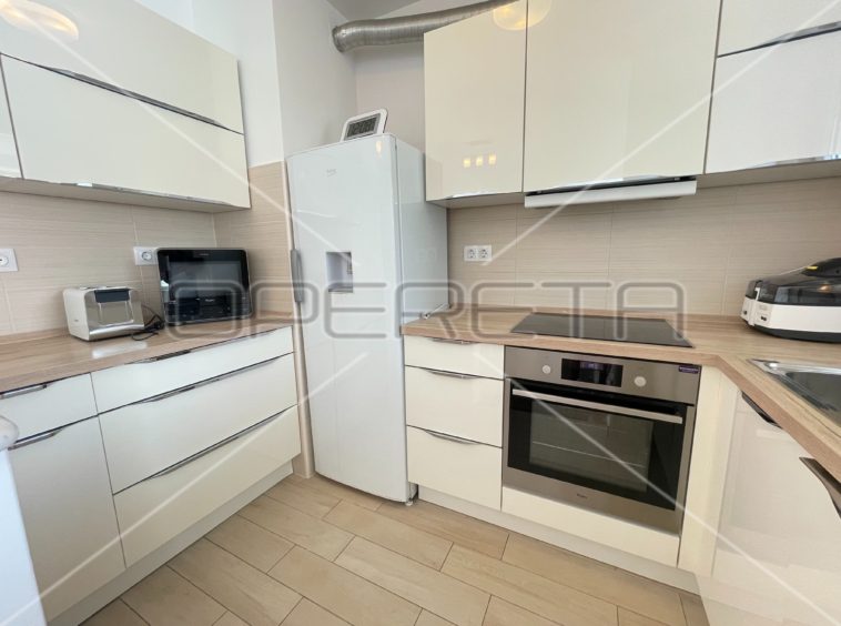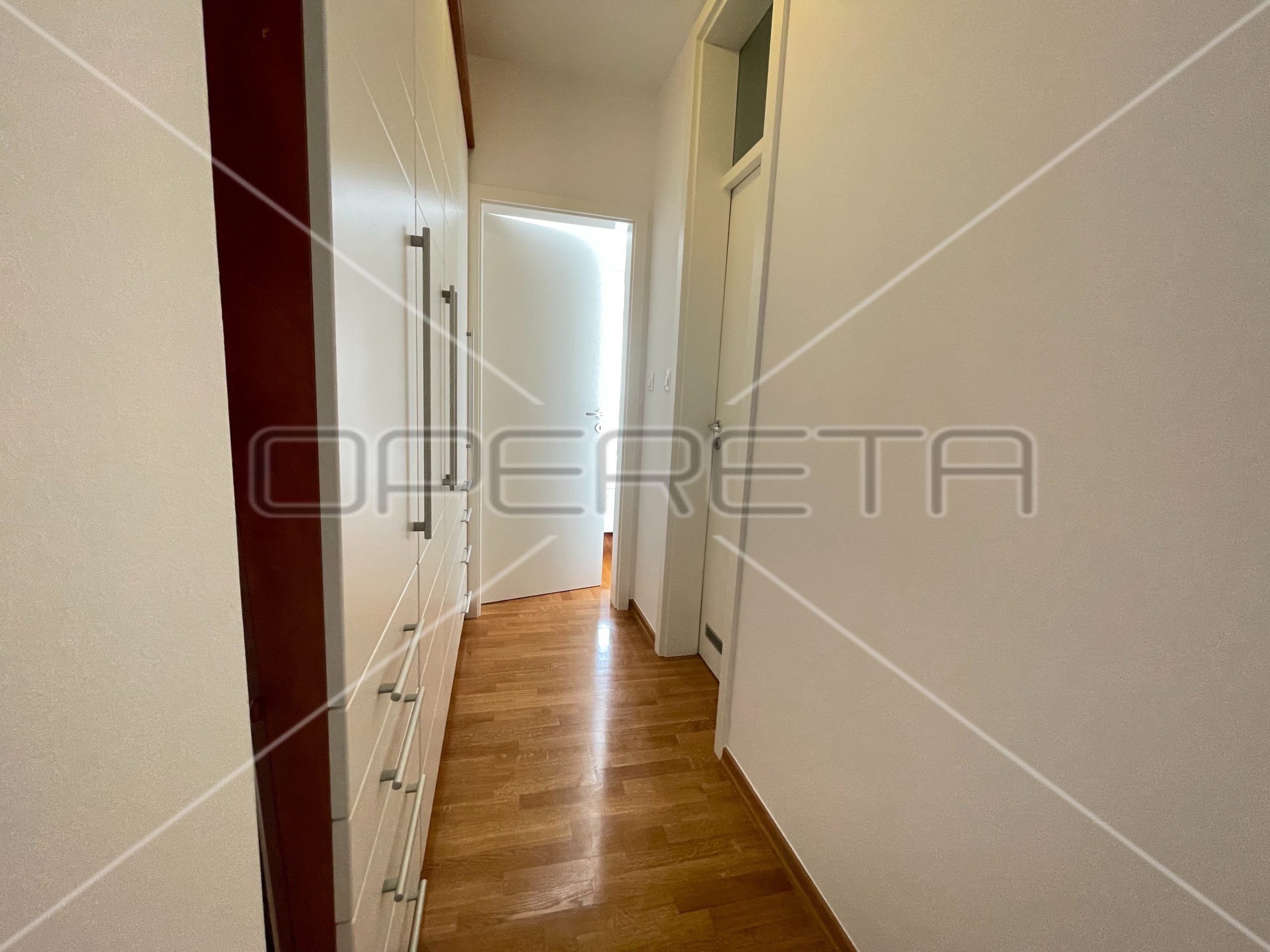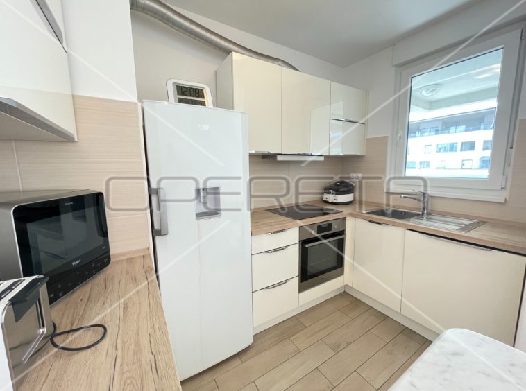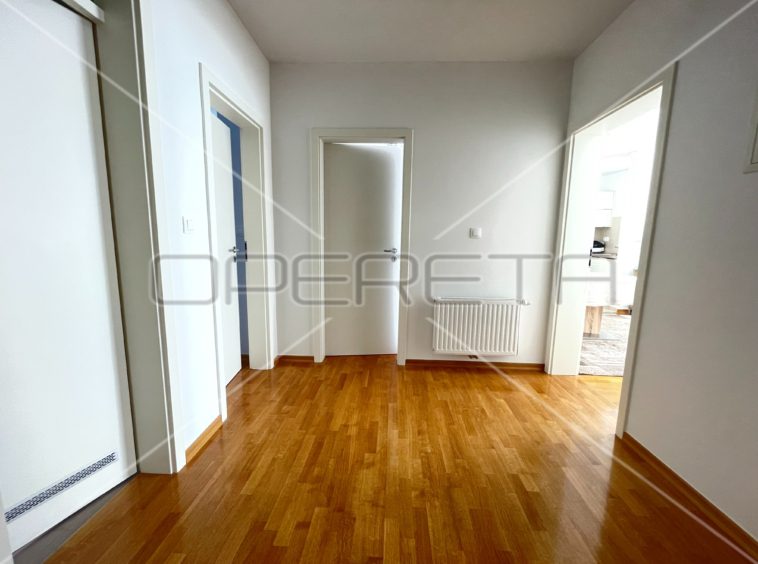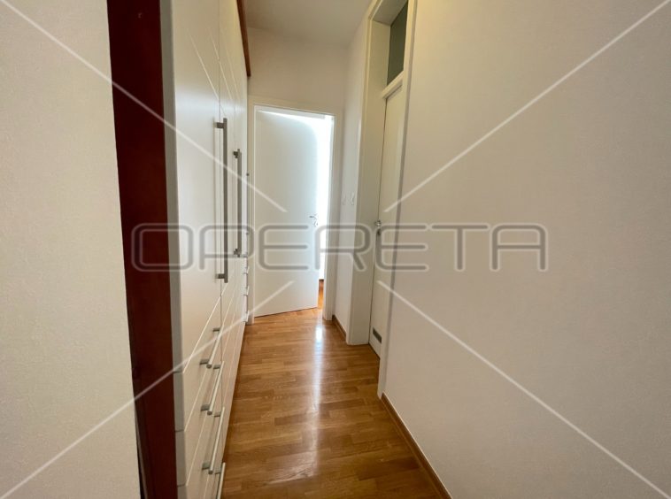 A 4-room apartment with an excellent layout is for rent in Trešnjevka, Višnje Strahuljak Street. The apartment is located in a building from 2015 on the 4th floor of a building with an elevator. It consists of an entrance area, a living room with a dining room and a kitchen and an exit to the south-facing loggia, a bathroom with a bathtub, a storage room, 3 bedrooms and a bathroom with a shower.