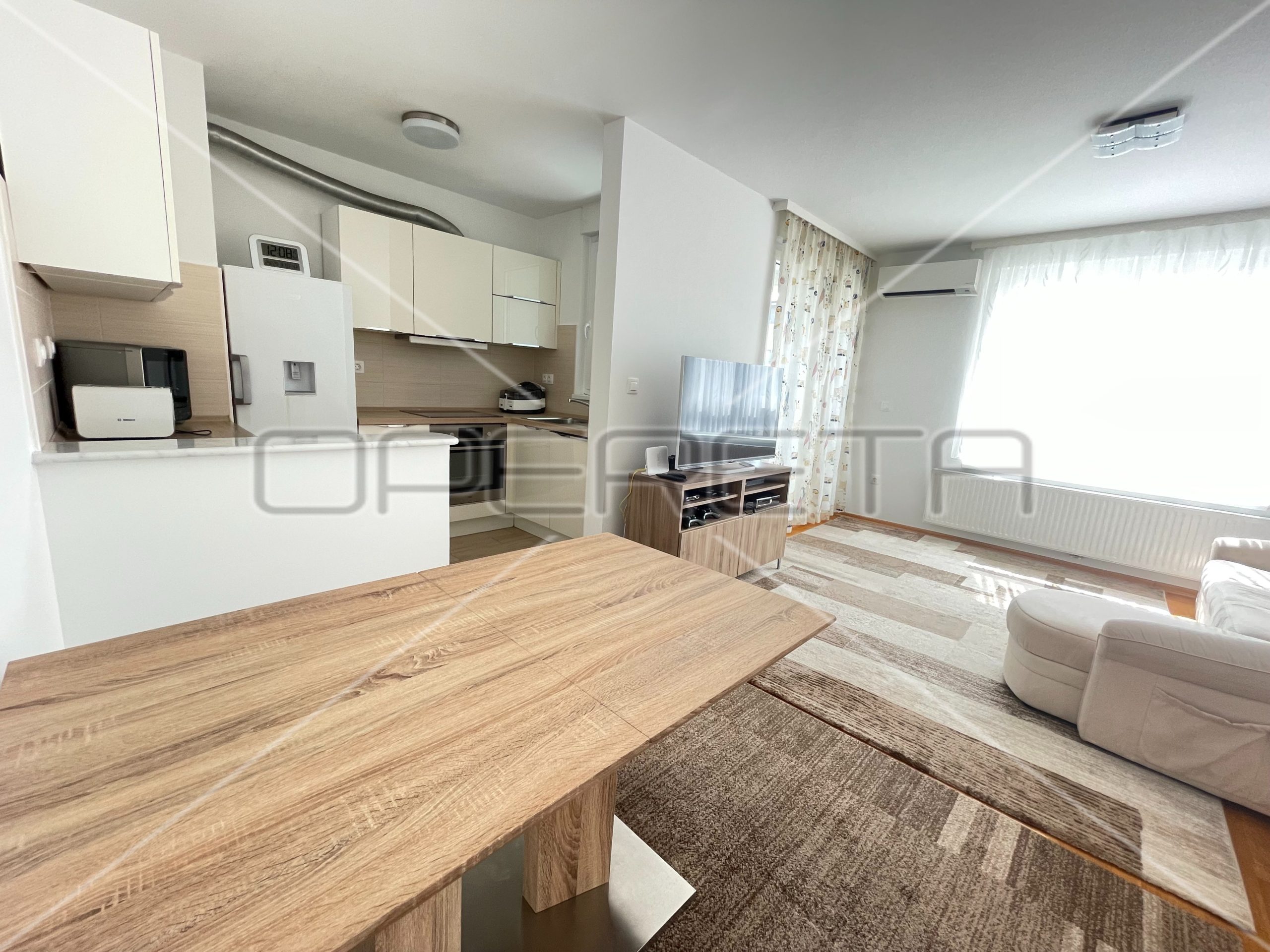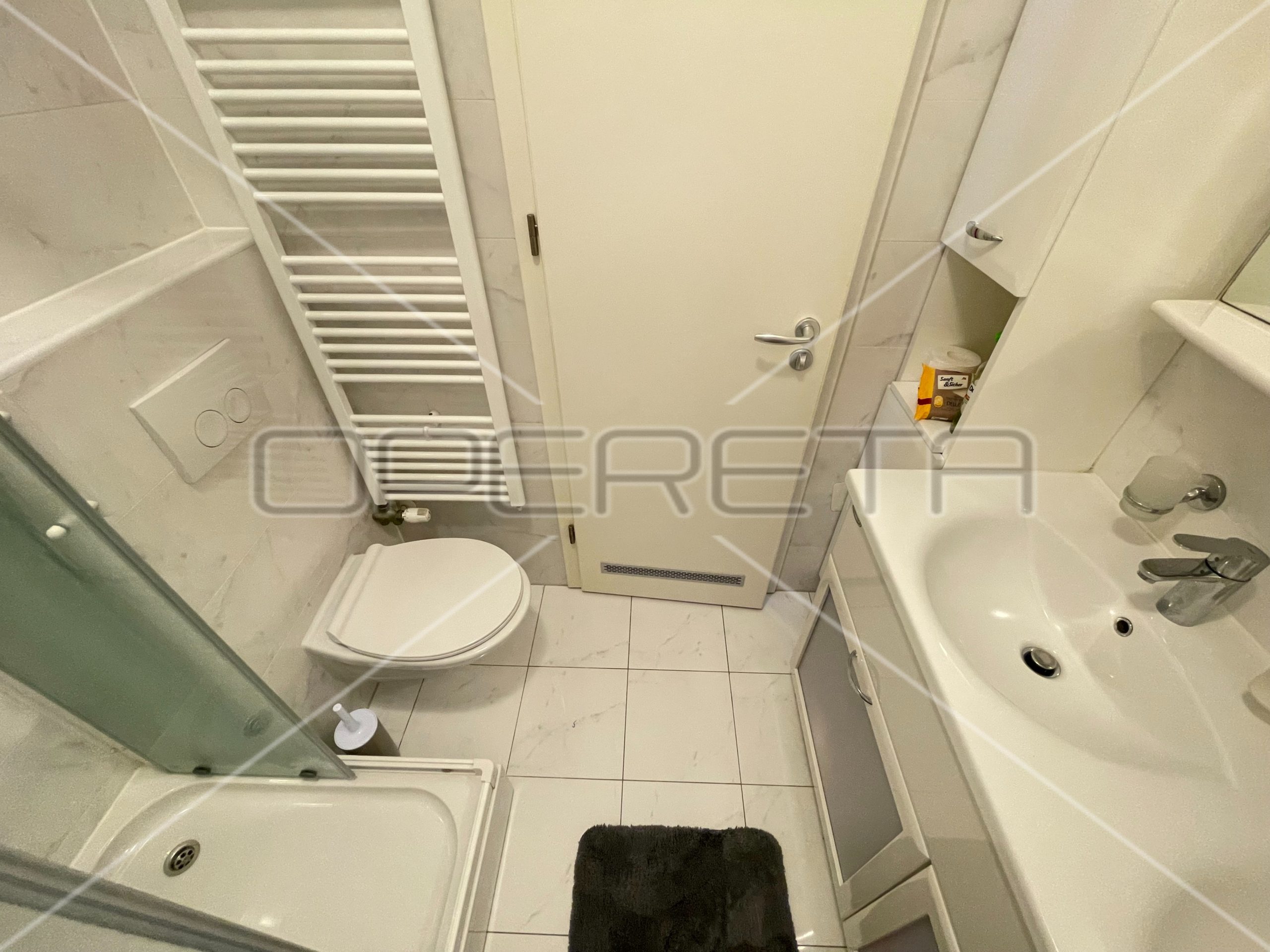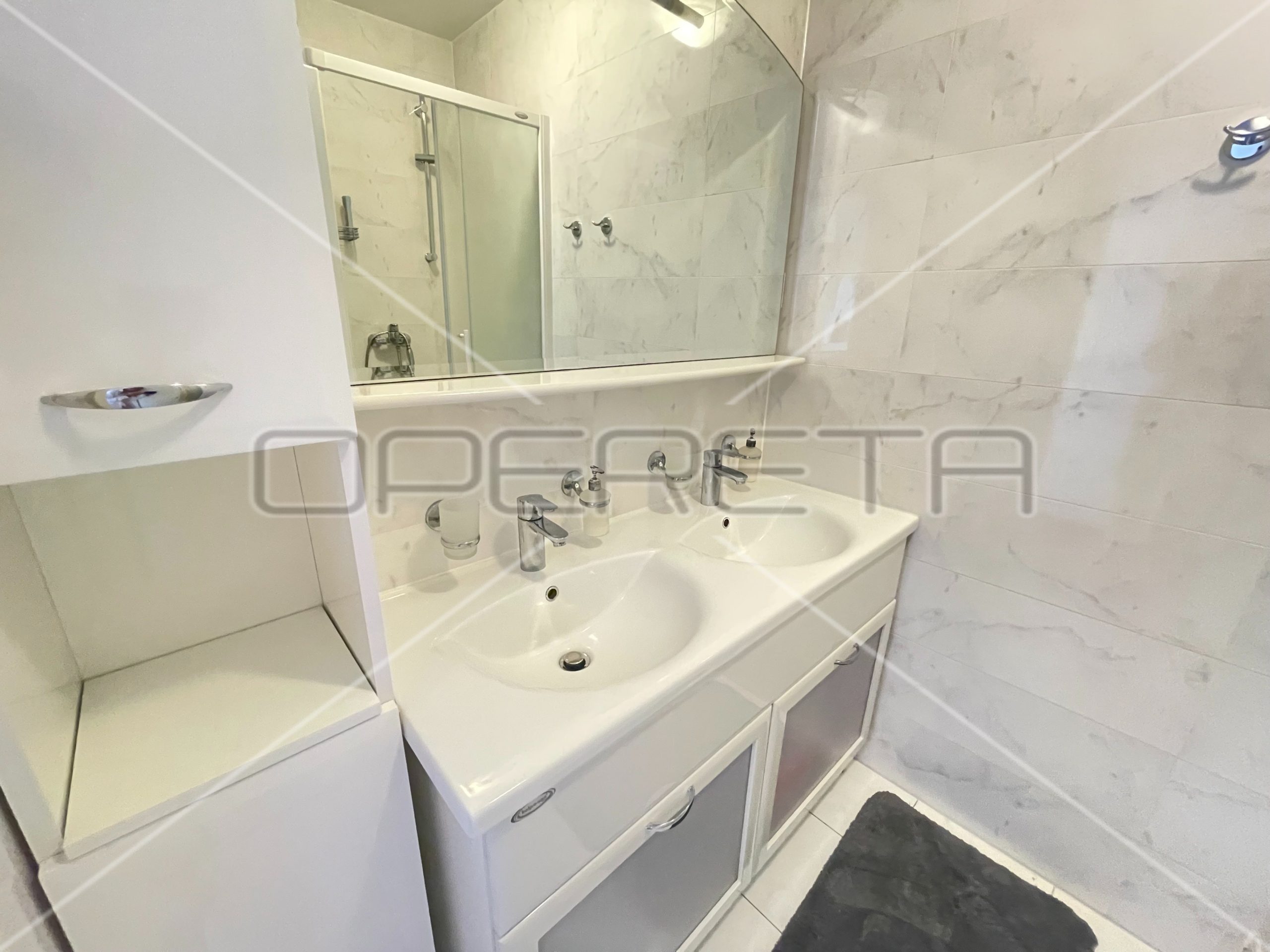 A 4-room apartment with an excellent layout is for rent in Trešnjevka, Višnje Strahuljak Street. The apartment is located in a building from 2015 on the 4th floor of a building with an elevator. It consists of an entrance area, a living room with a dining room and a kitchen and an exit to the south-facing loggia, a bathroom with a bathtub, a storage room, 3 bedrooms and a bathroom with a shower.