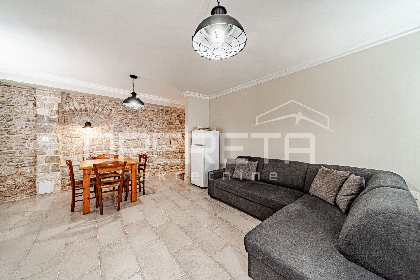 In the very heart of the charming town of Blato on the island of Korčula lies an exceptional traditional stone house that perfectly blends authentic Mediterranean character, refined renovation, and modern comfort. Positioned in a highly attractive location—just steps from all essential amenities, only two minutes from the school and a few minutes from a popular winery, grocery store, playground, and a beautifully arranged park—this property is ideal for family living, tourist rental, or a boutique accommodation concept.