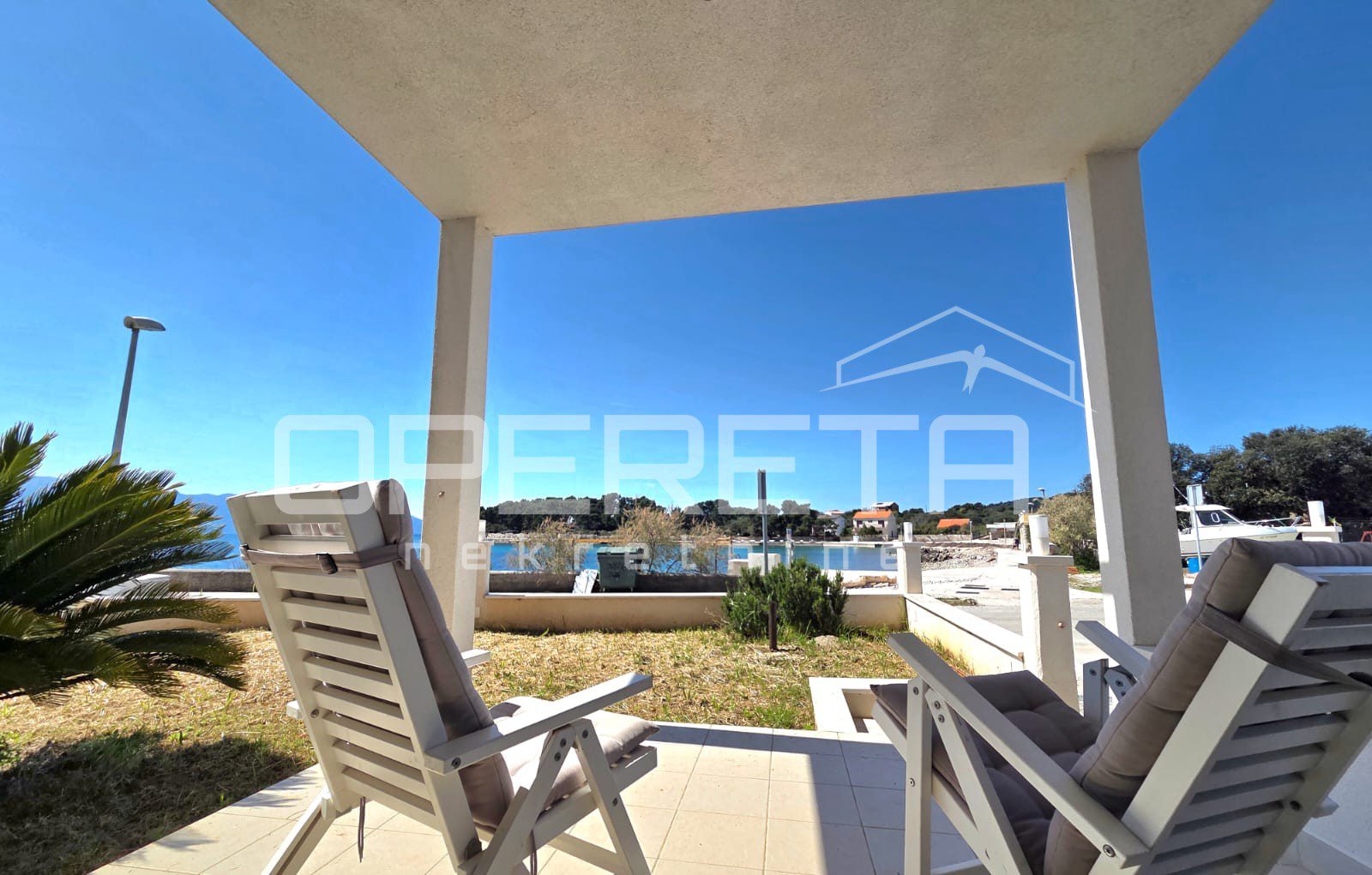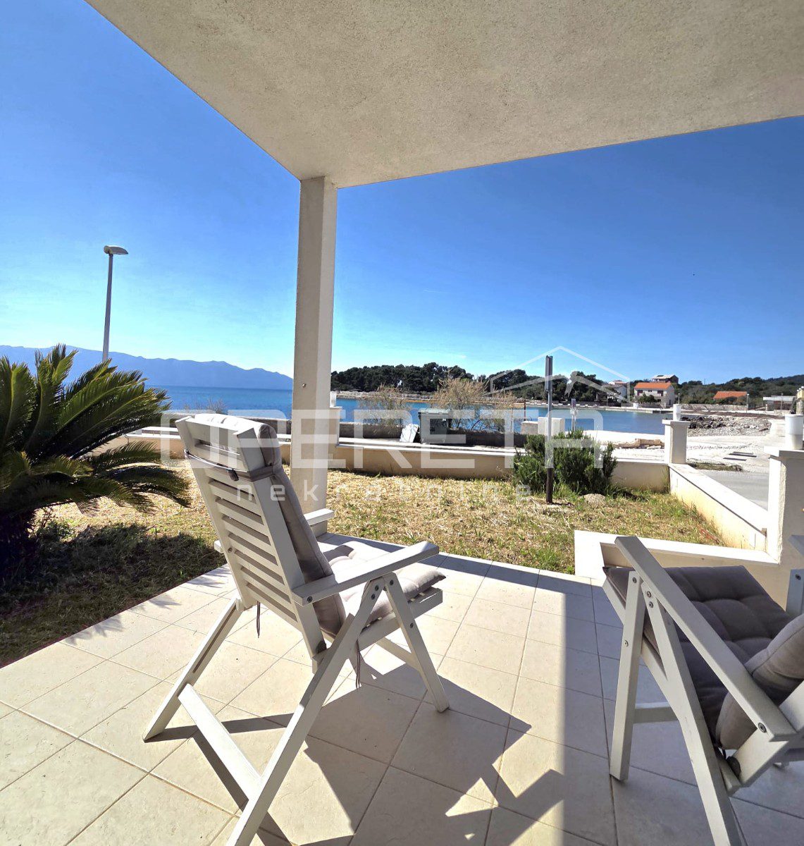 The house is arranged over two levels with separate entrances, allowing flexible use for private living or tourist purposes. The lower floor is conceived as a spacious and harmonious living area, where the living room, kitchen and dining area flow seamlessly and open onto a covered terrace surrounded by Mediterranean greenery. From here, uninterrupted views of the sea and coastline create a unique sense of tranquility. Three comfortable bedrooms, each with its own en-suite bathroom, provide a high level of comfort. The rear part of the house opens onto a large garden, offering excellent potential for the construction of a swimming pool and/or an outdoor kitchen.