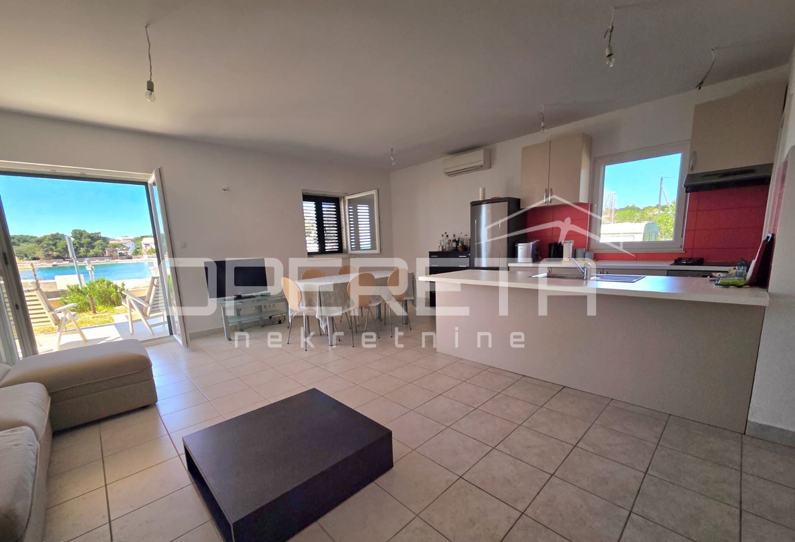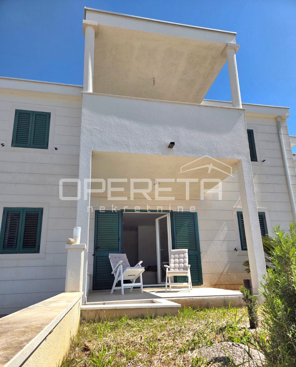 The upper floor features three separate apartments, each with its own bathroom and a terrace or loggia with beautiful sea views, making them ideal for high-end tourist rental or guest accommodation.