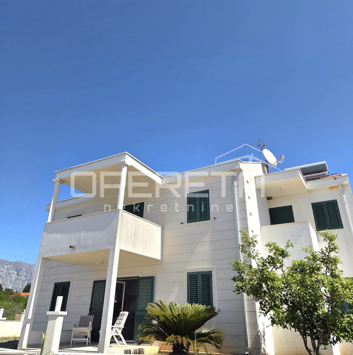The property has been built with quality materials, emphasizing energy efficiency and Mediterranean aesthetics. The façade is finished with authentic Brač stone, thermal insulation has been installed, and all modern installations required for contemporary living are in place. Additional value is provided by a solar system for hot water and ample parking space for several vehicles.