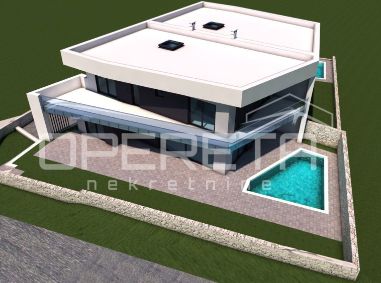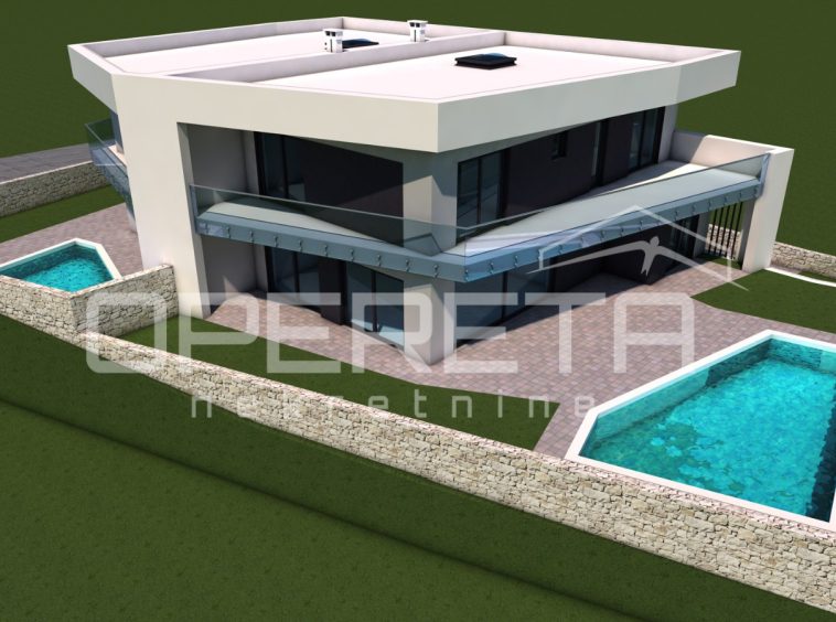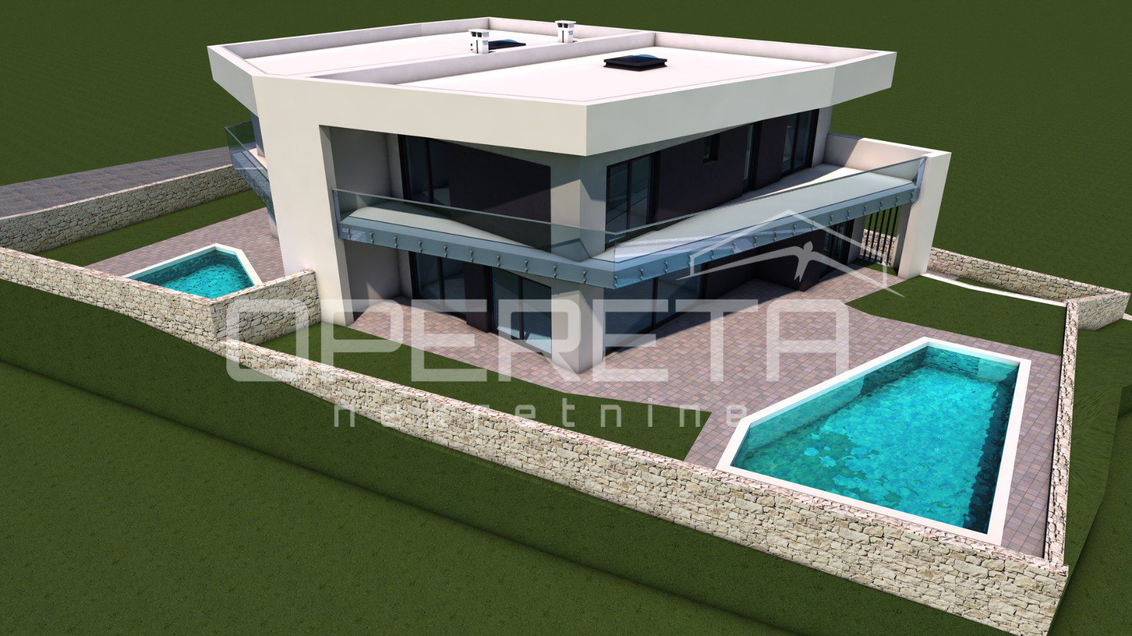 In Kanfanar, just 500 meters from the town center, there is a modern semi-detached villa project with a swimming pool that combines contemporary architecture and functional space layout. Construction is scheduled to begin in April 2026.