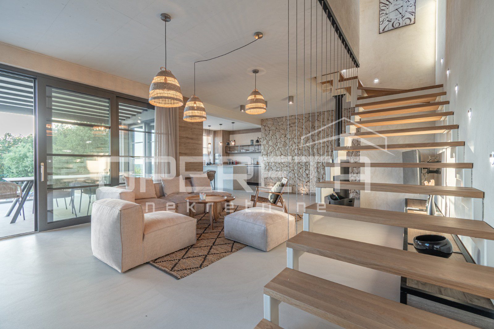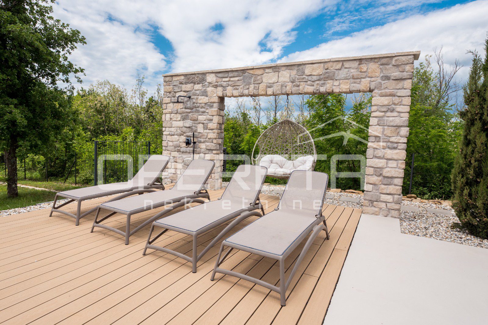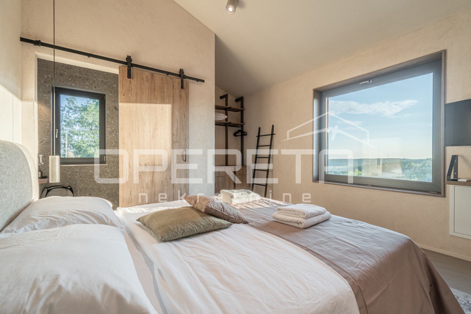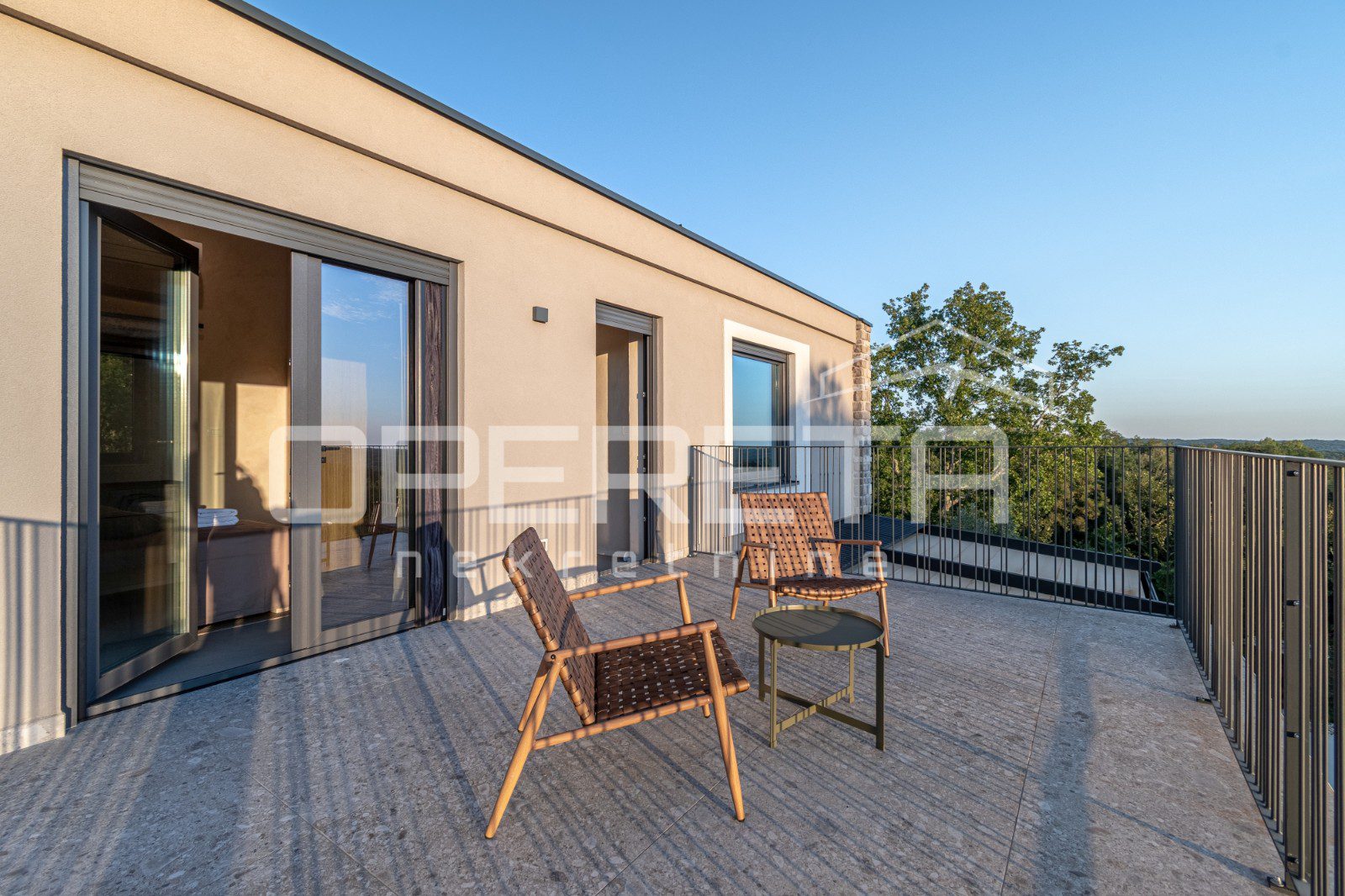 For sale, a newly built and completely refurbished villa with a heated swimming pool and volleyball court on a 2000m² plot in the vicinity of Karojba (10 minutes from Motovun).