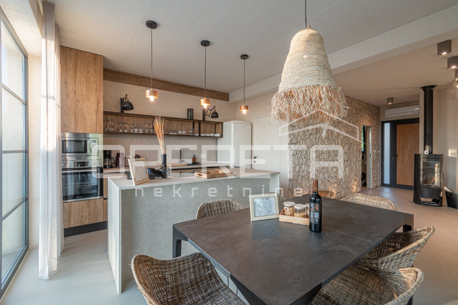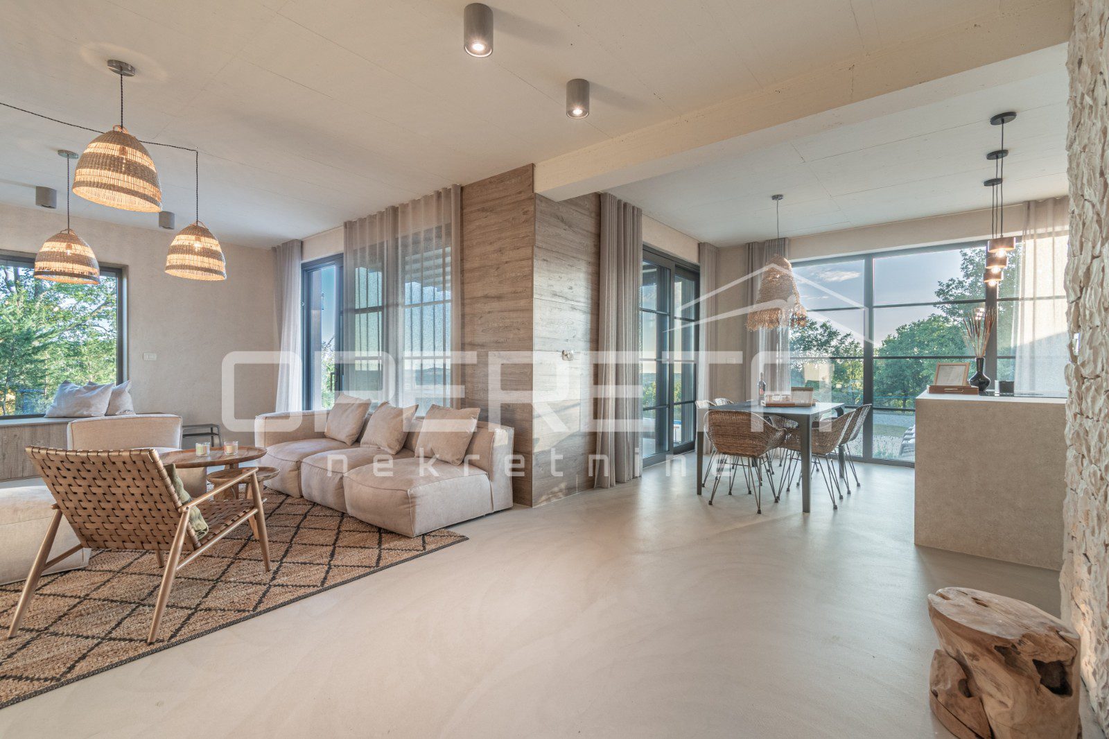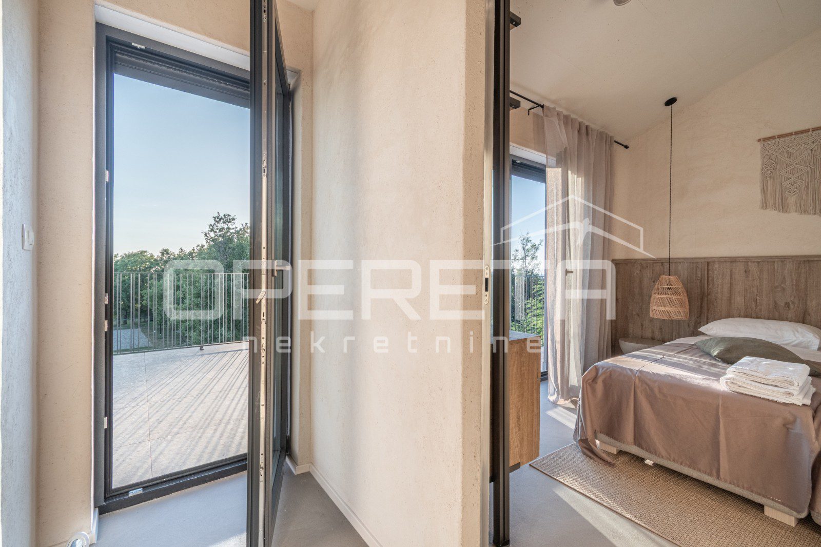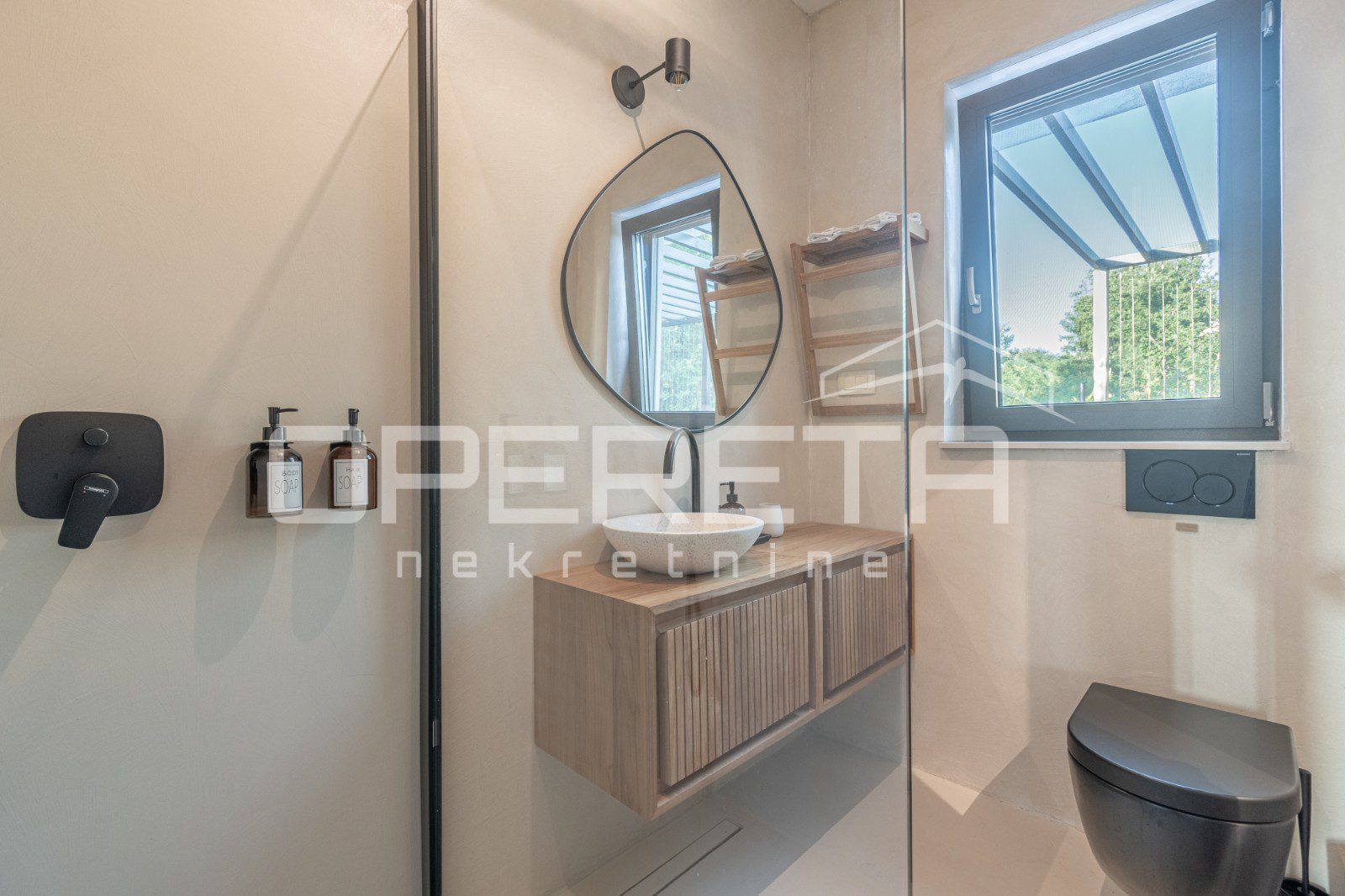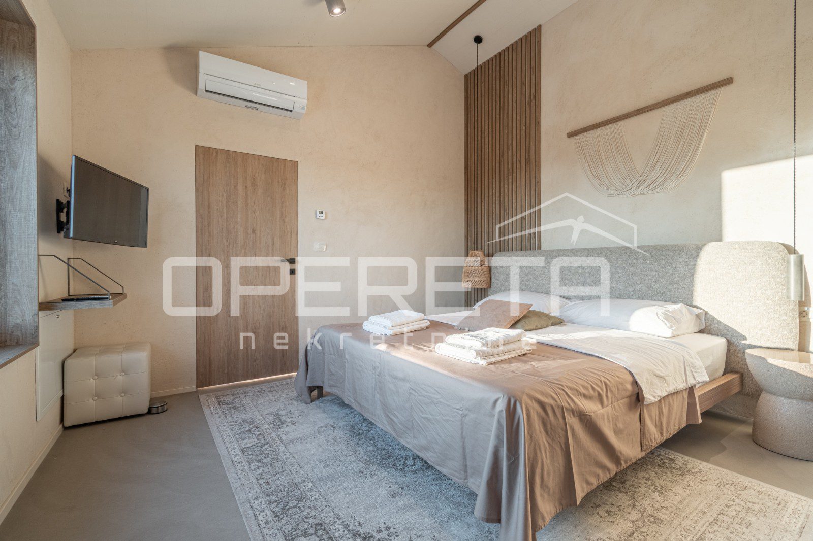 For sale, a newly built and completely refurbished villa with a heated swimming pool and volleyball court on a 2000m² plot in the vicinity of Karojba (10 minutes from Motovun).