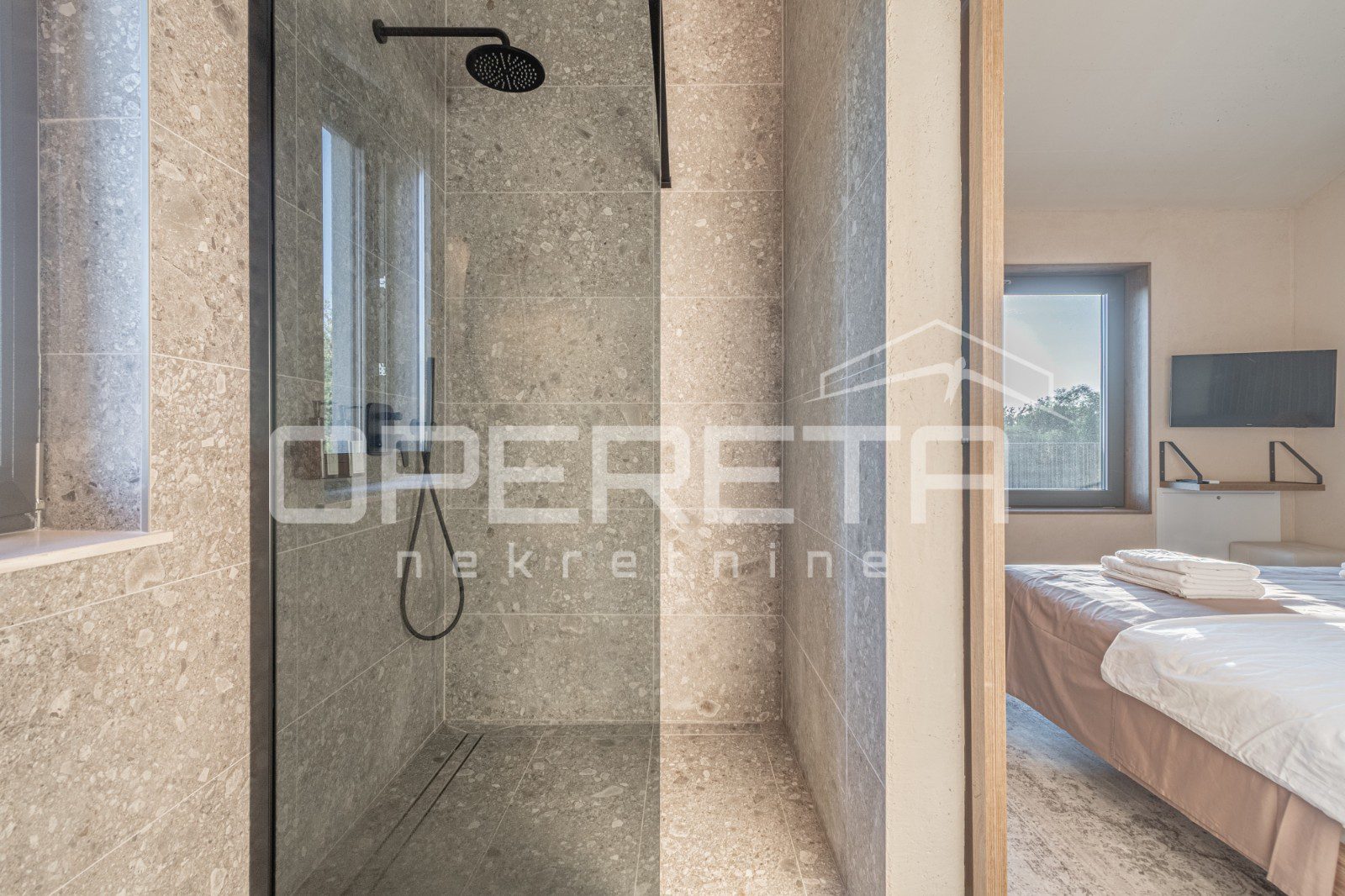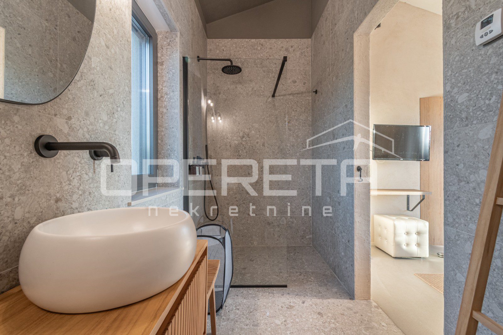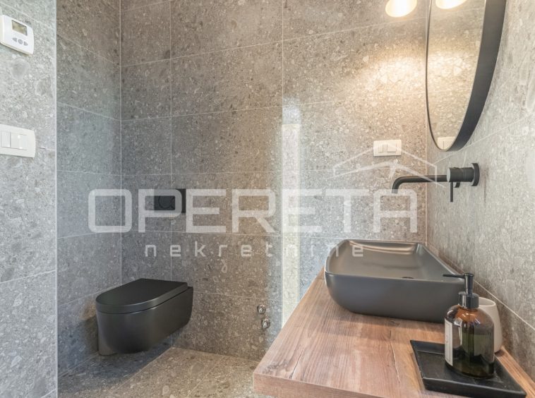 The house consists of a ground floor with a living room, kitchen with pantry, dining room, a bathroom, and a covered terrace. The first floor features two bedrooms, each with its own bathroom, and a terrace offering views of the sea and Motovun. There’s a possibility to create an additional room. This property is the last one in the building zone and is surrounded by a green zone where construction is not permitted.