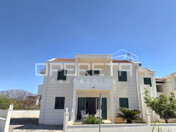 This contemporary villa, completed in 2025 and designed as a family property that equally suits tourist use, is situated in Kaštel Novi on a 517 m2 plot.
