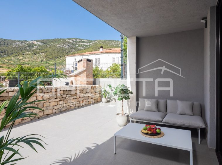 We offer a beautiful modern and luxurious house in Komiža, consisting of a ground floor and two floors. There is one apartment on each floor. The apartment on the ground floor has a total net area of 41.40 m2 and consists of an entrance area, kitchen with dining room and living room, bedroom, bathroom and storage room. The apartment also has a loggia of 8.3 m2. On the first and second floors there are apartments with a net area of 39.40 m2. The apartment on the first floor consists of an entrance area, kitchen with dining room and living room, bedroom and bathroom. The apartment also has a loggia of 8.3 m2. The apartment on the second floor consists of an entrance area, kitchen with dining room and living room, bedroom and bathroom. The apartment also has a terrace of 8.3 m2. Excellent opportunity in a prime location!