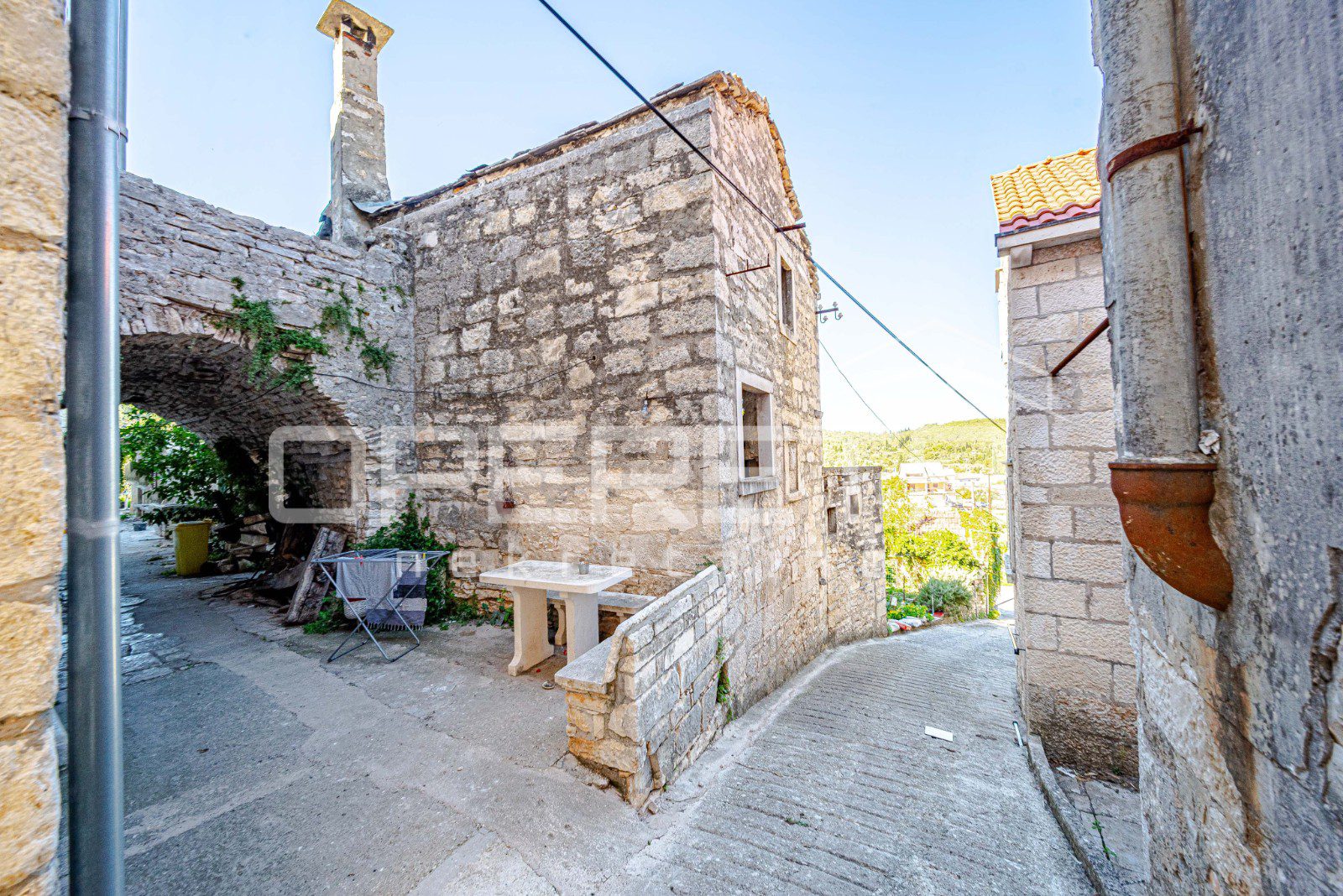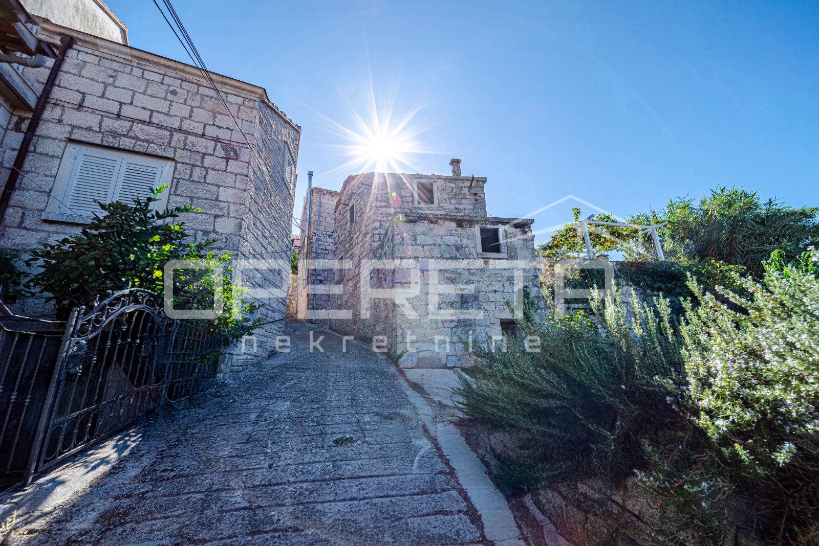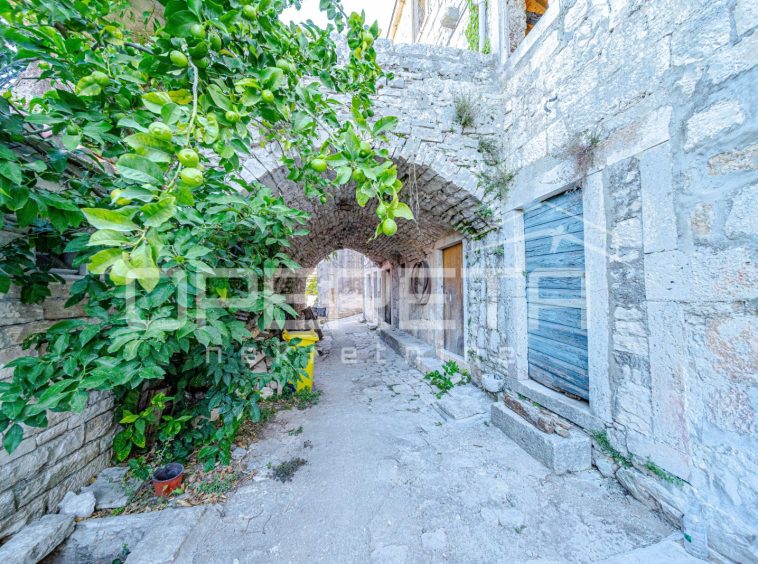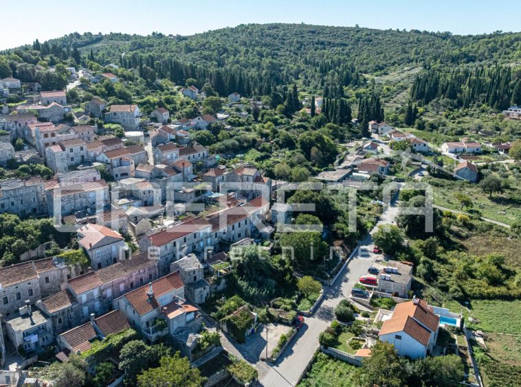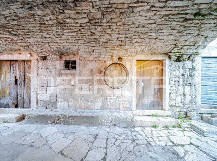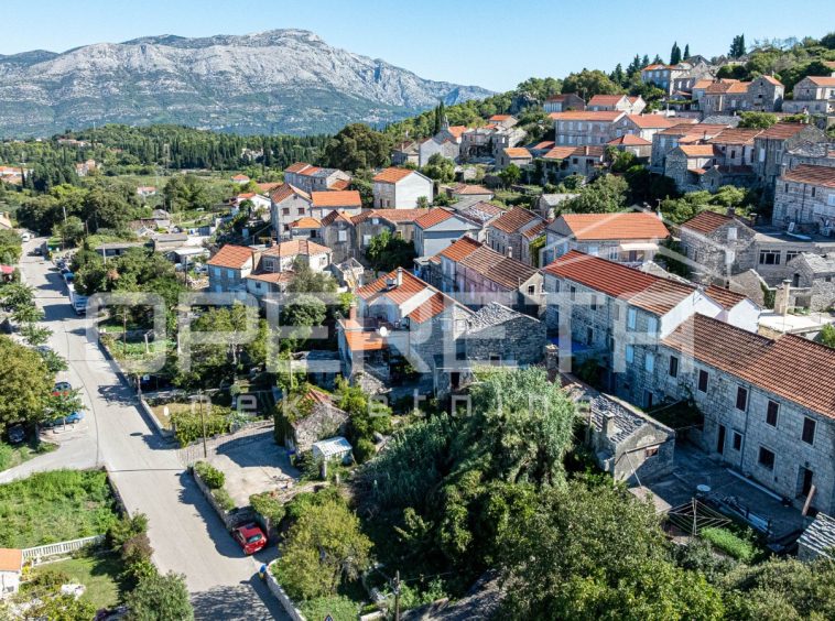 On the island of Korčula, in the peaceful and authentic village of Žrnovo, there are two charming stone houses connected by a courtyard and an impressive stone arch. Although connected, the smaller house is detached and has its own entrance. Both houses are in original condition and require complete interior renovation, but they offer great potential – whether as a family home or a tourism project.