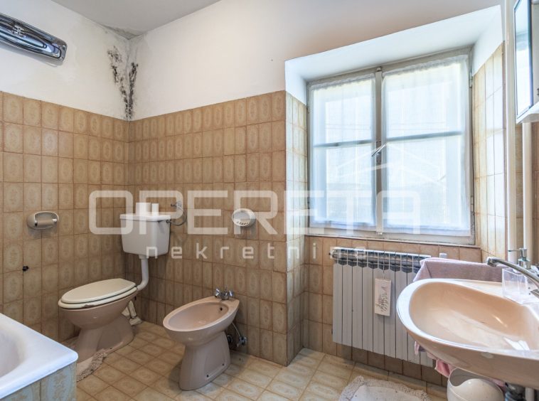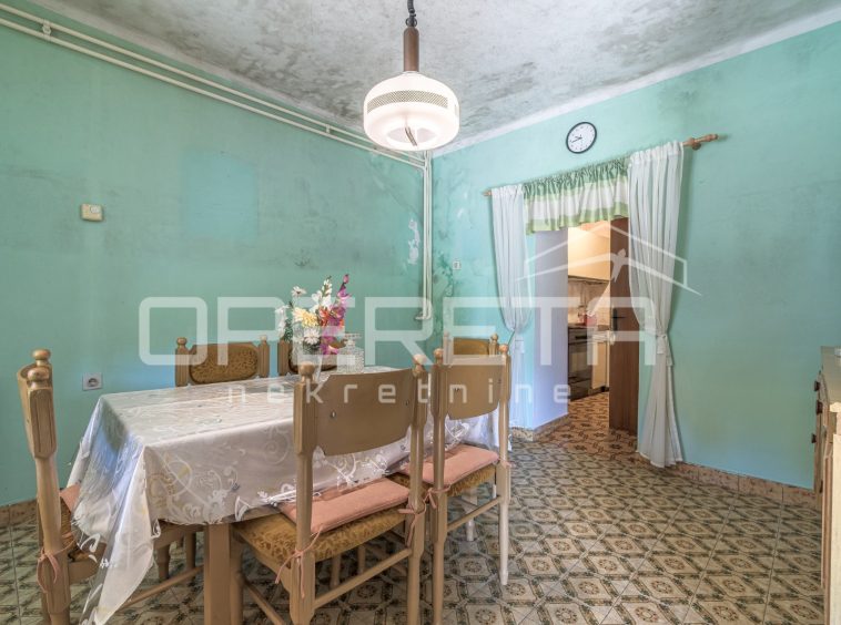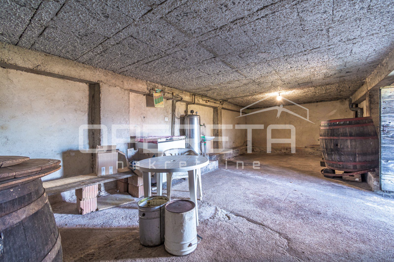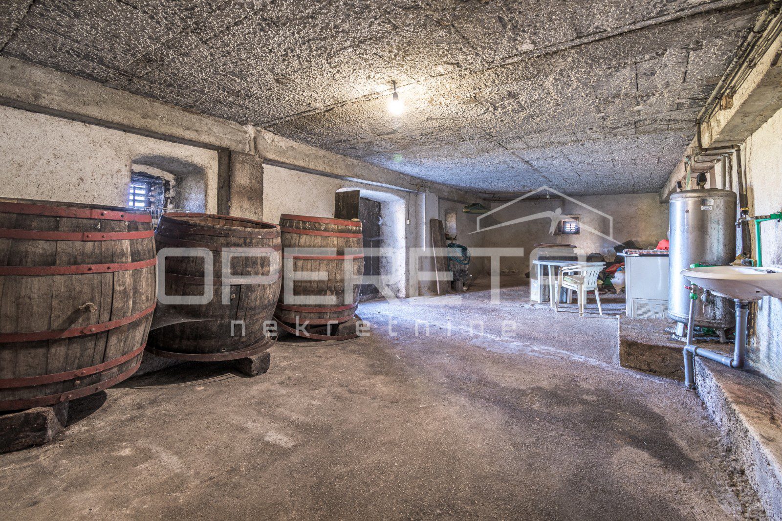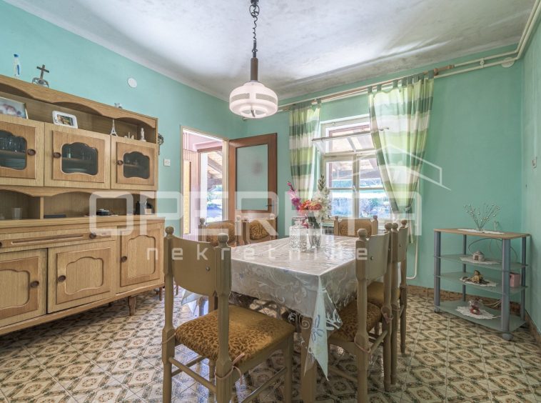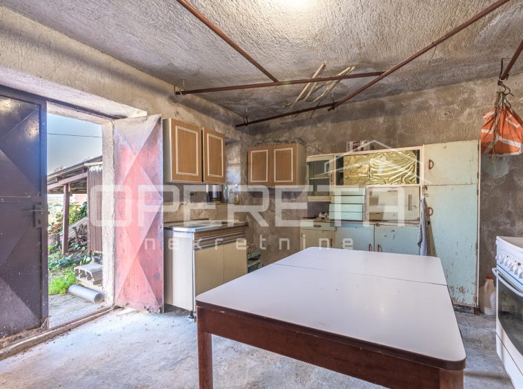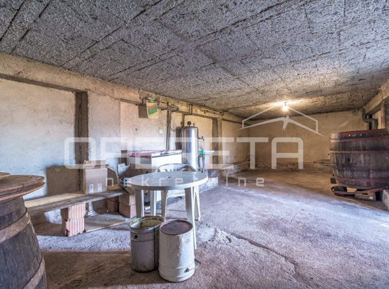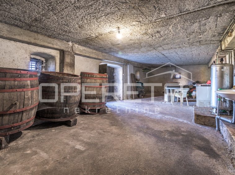 The habitable ground-floor house, with a footprint of 156 m², consists of a kitchen and living area, 3 bedrooms, a bathroom, and a storage room. A spacious konoba of 50 m² is situated in the basement. Heating is central via fuel oil, but there is also a wood-burning stove. The boiler room is located next to the house, in a separate building of 60 m².