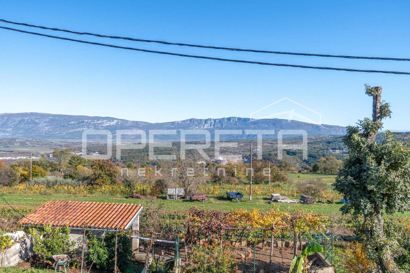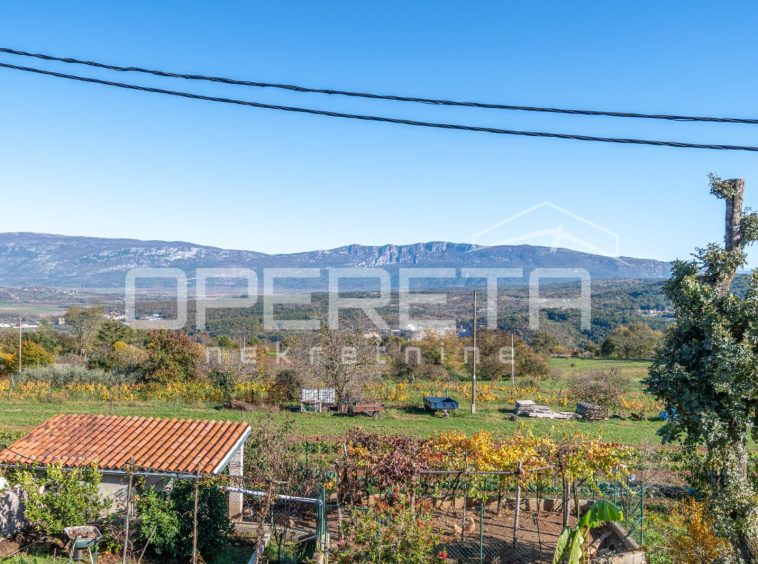 Located in a quiet village with a view of Mount Učka, this property features a house and four additional buildings, alongside a spacious plot, offering great potential to the future owner.