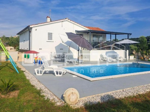 In a quiet village with beautiful scenery, just 5 km from the center of Labin, there is a modern villa in a complex with a total of five villas.