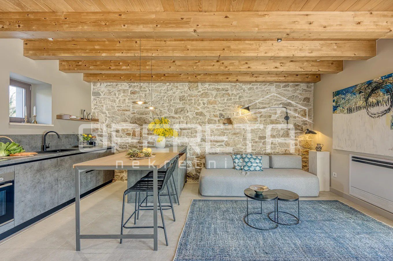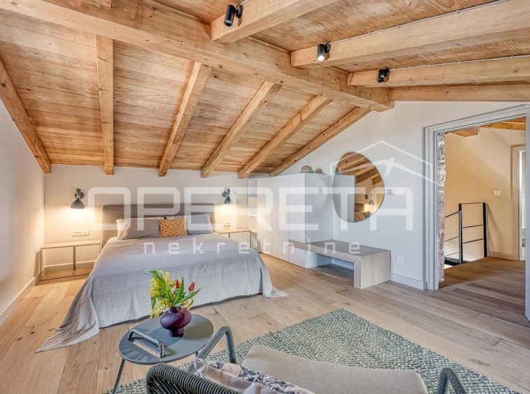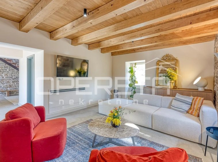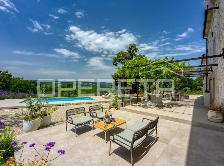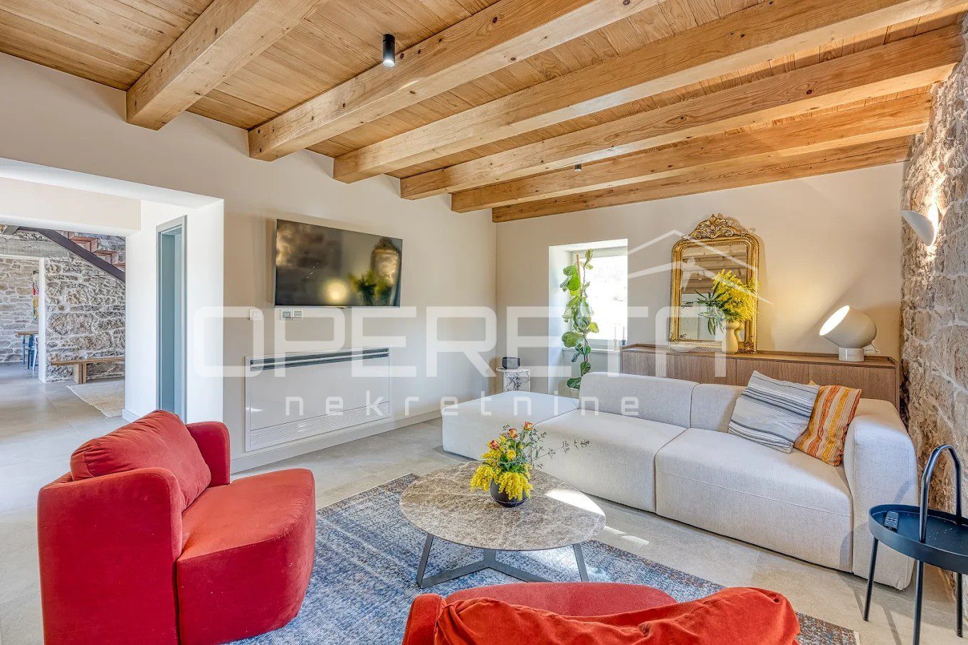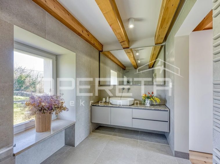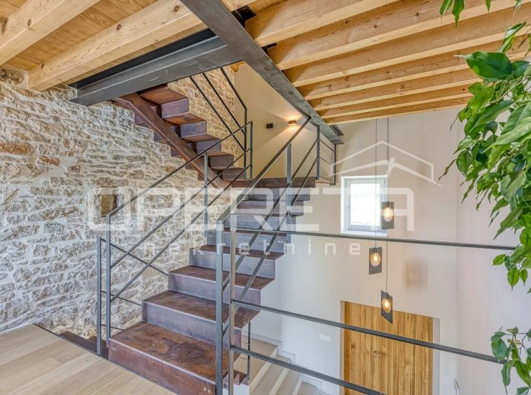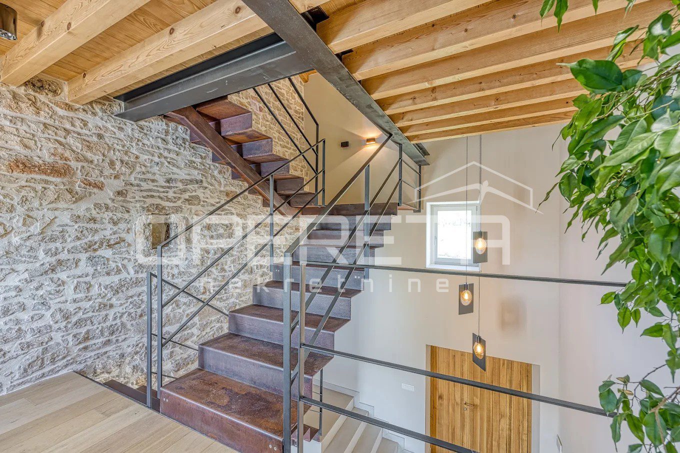 The villa was carefully renovated in 2023 using natural materials such as stone, wood, and metal, preserving its traditional Istrian character while offering modern comfort and a high level of luxury. The interior is spacious and elegant, featuring high ceilings, exposed stone walls, and custom-made furniture throughout.