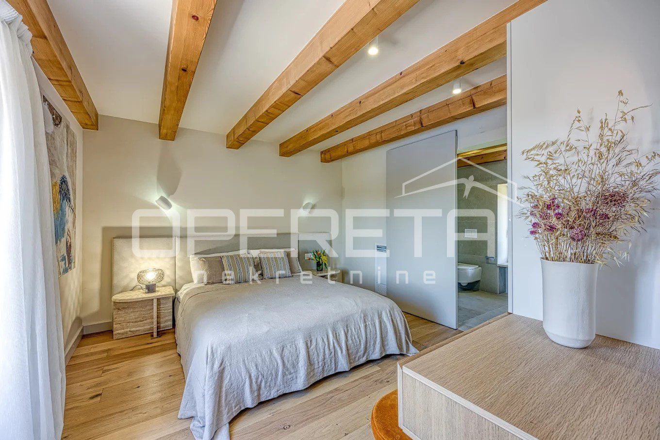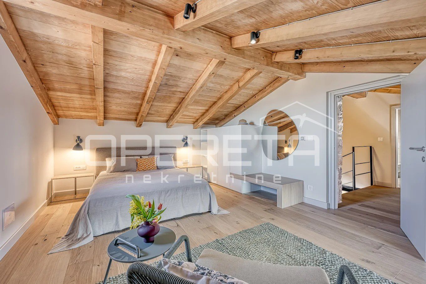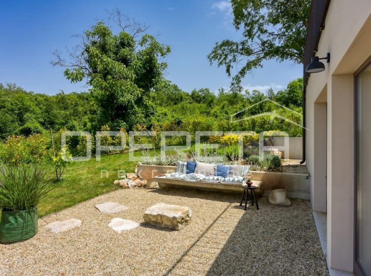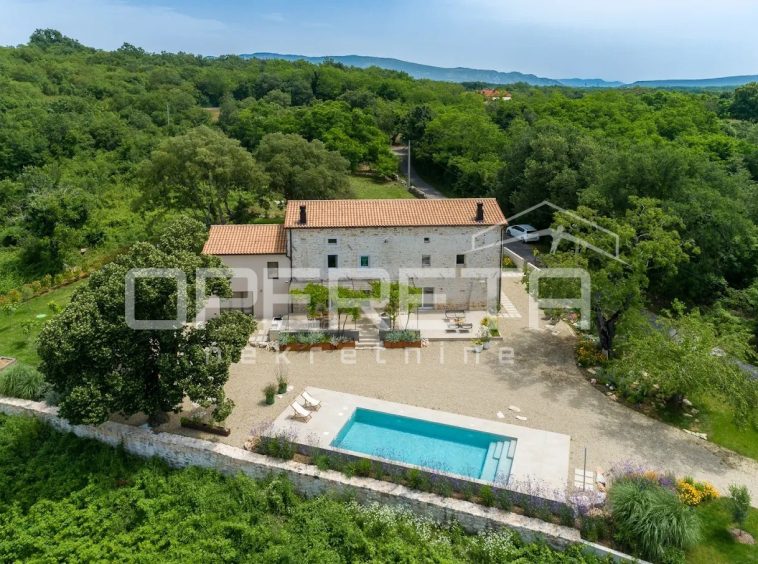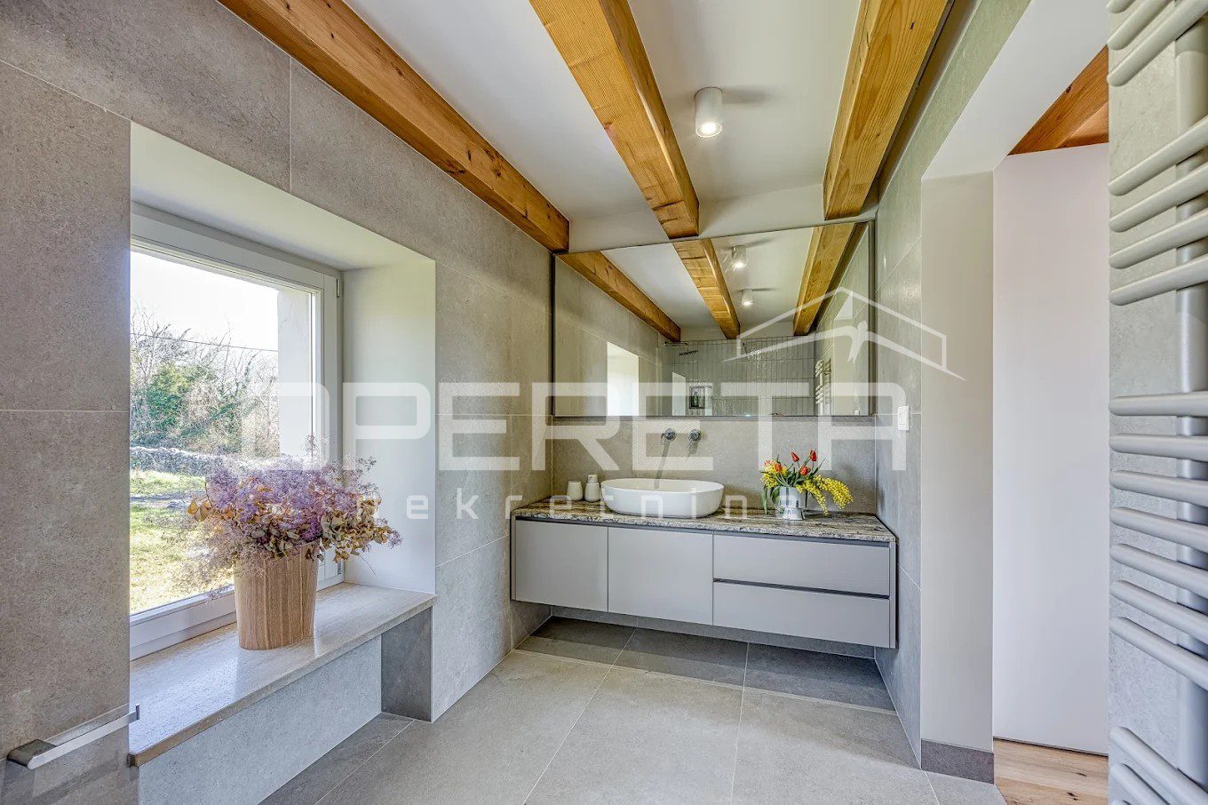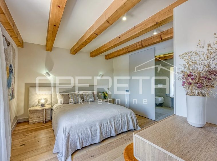 The villa was carefully renovated in 2023 using natural materials such as stone, wood, and metal, preserving its traditional Istrian character while offering modern comfort and a high level of luxury. The interior is spacious and elegant, featuring high ceilings, exposed stone walls, and custom-made furniture throughout.