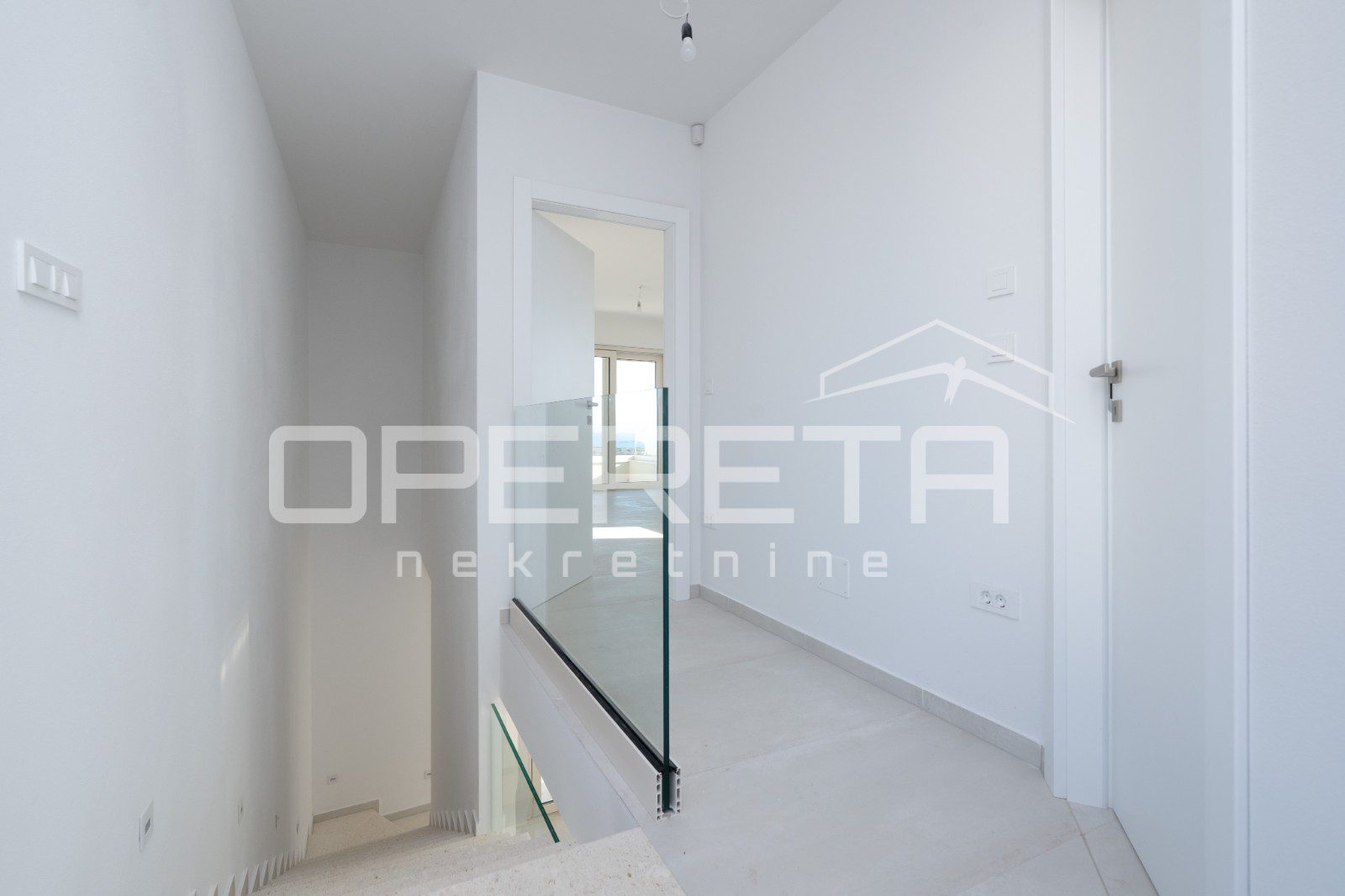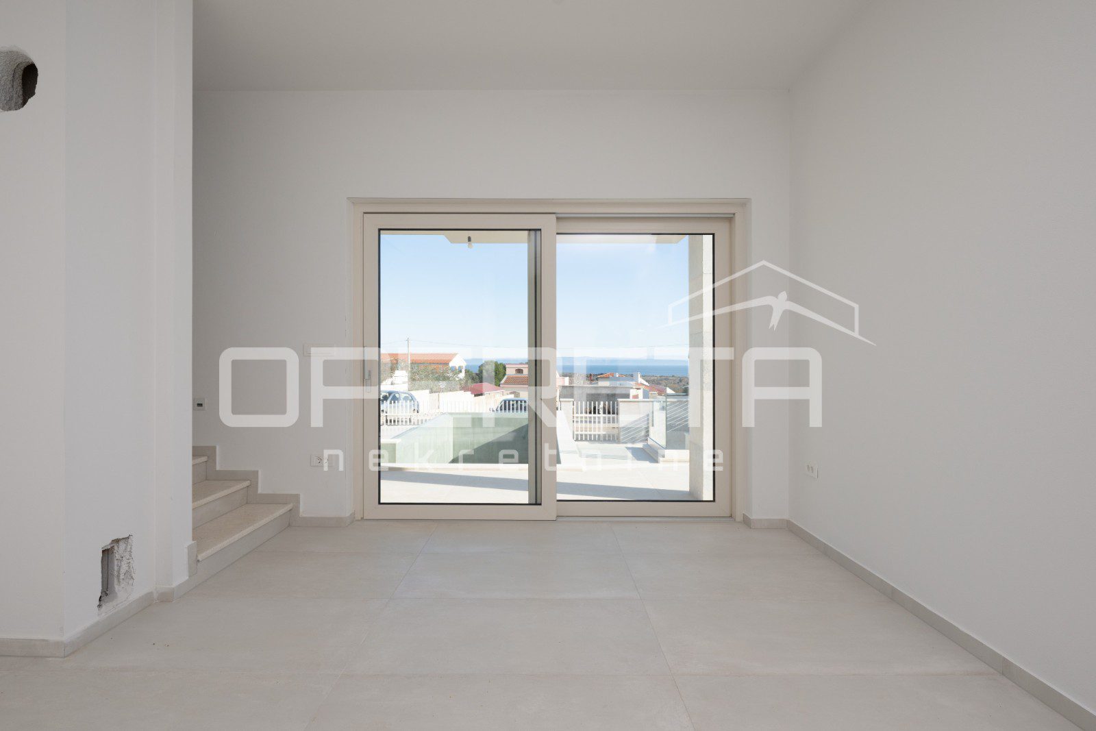 Upstairs are two spacious master bedrooms, each with its own bathroom and access to a terrace with a beautiful panoramic view of the sea. The bathrooms are planned to have a bathtub, allowing you to relax with a view of the sea – a real luxury in your own home.