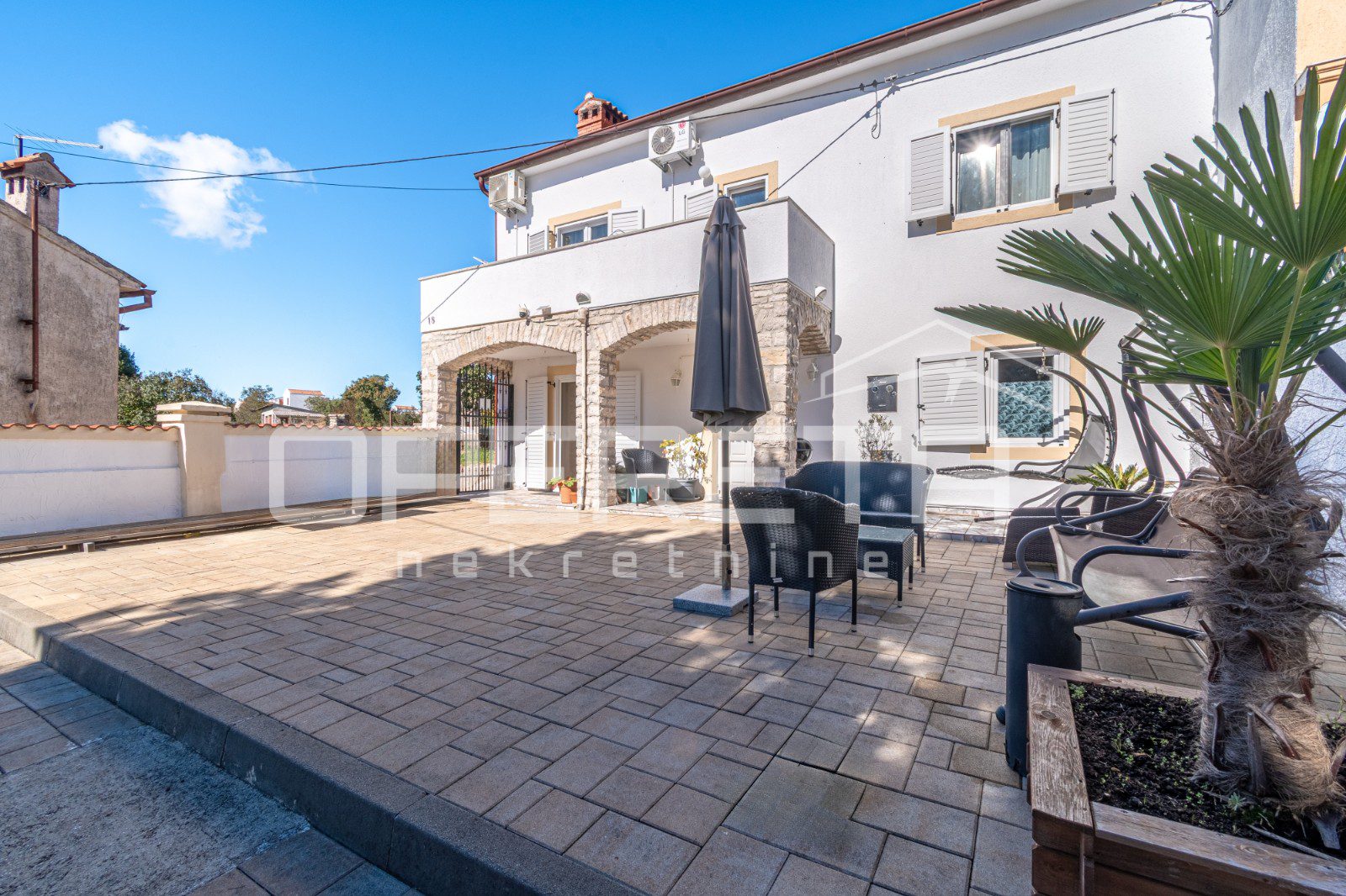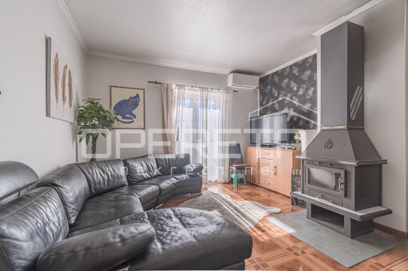 The entire plot is fenced and offers a beautiful view of the greenery. The house is equipped with three air conditioners and has a chimney, which allows for additional heating options.