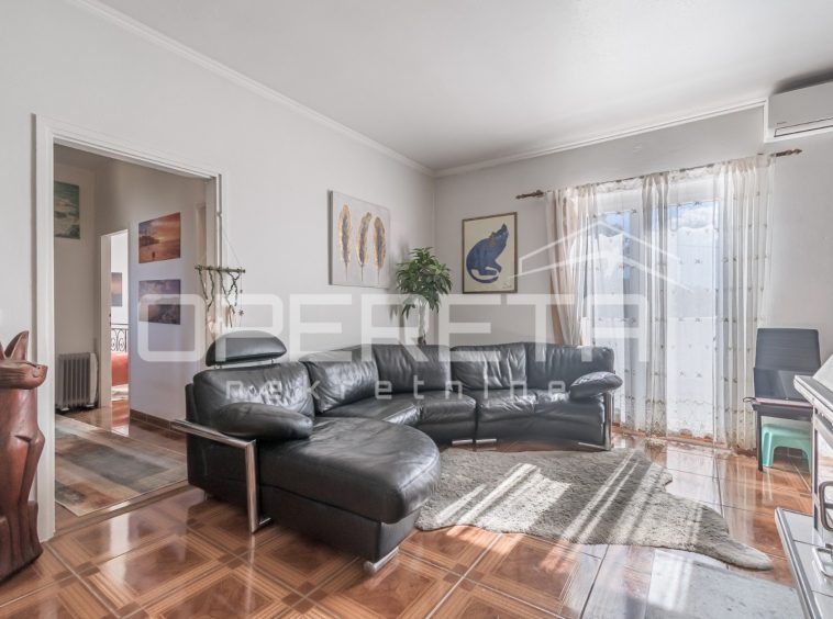 The house covers 130 m² of net area, while the total land area is 664 m². It is partially renovated, equipped with PVC joinery and is located at the end of a row of houses, which further contributes to privacy.