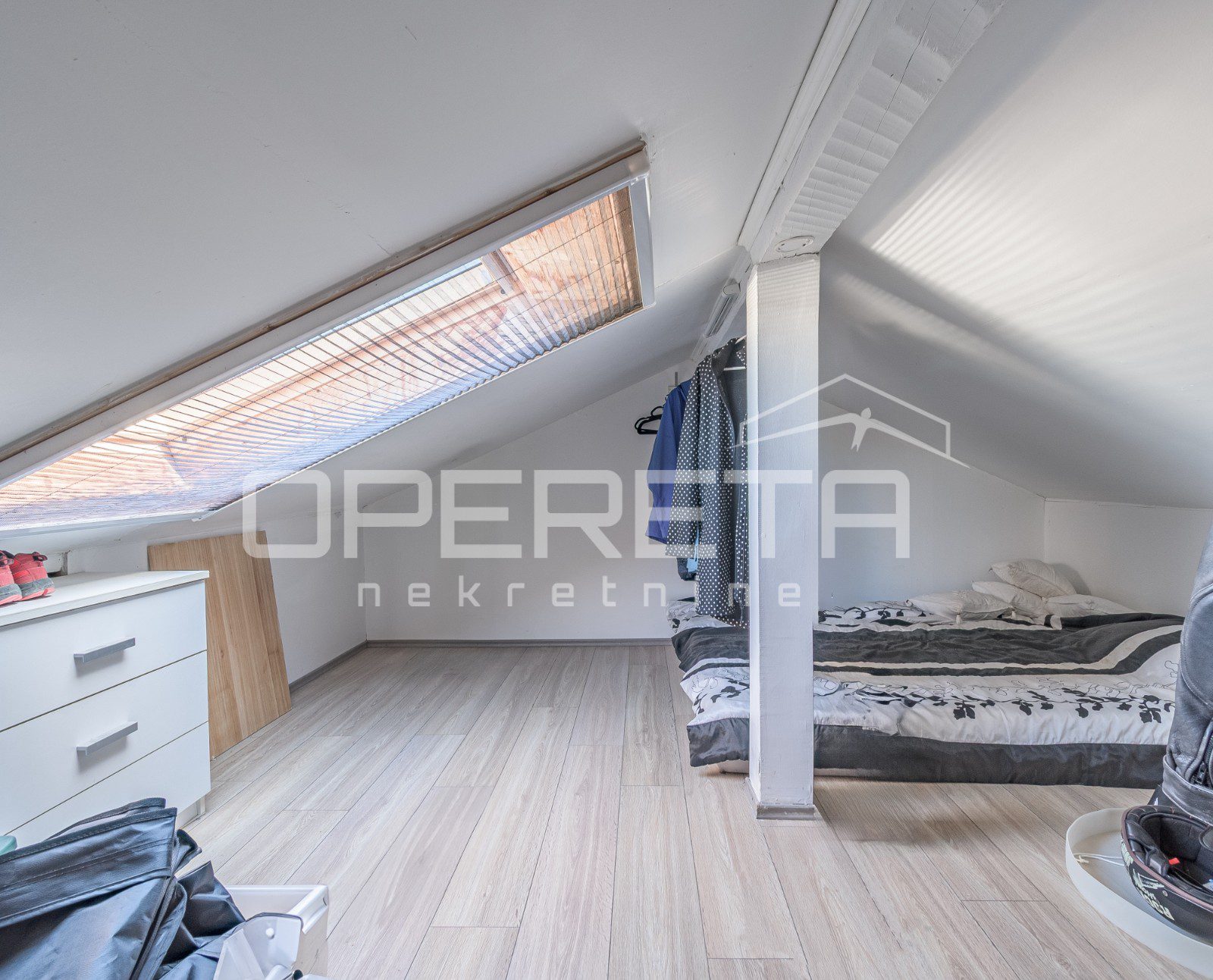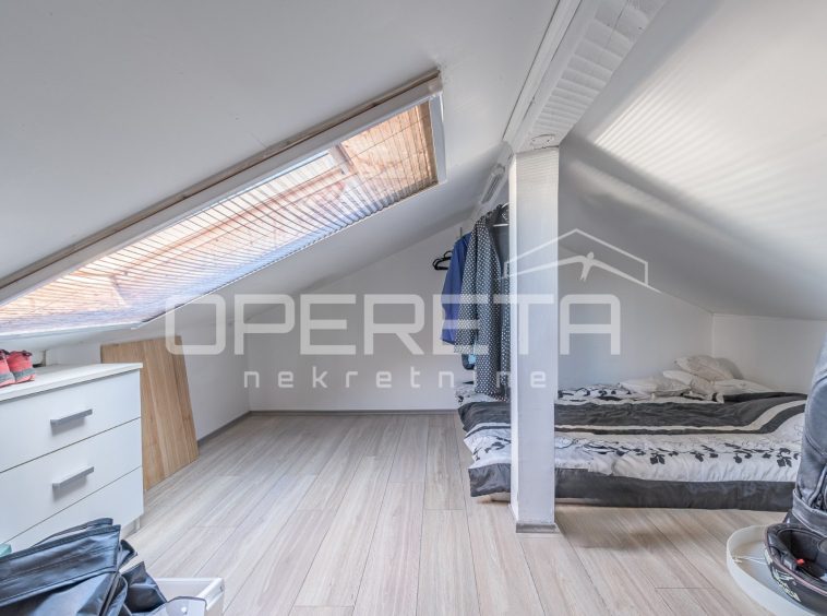 From the living area, stairs lead to the attic, the height of which (the lowest part is 1.55 m) allows it to be used as a smaller room or additional storage space.