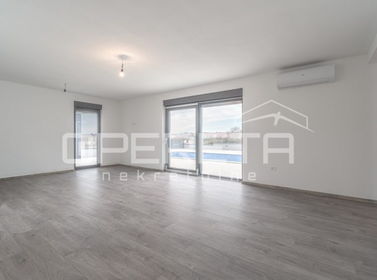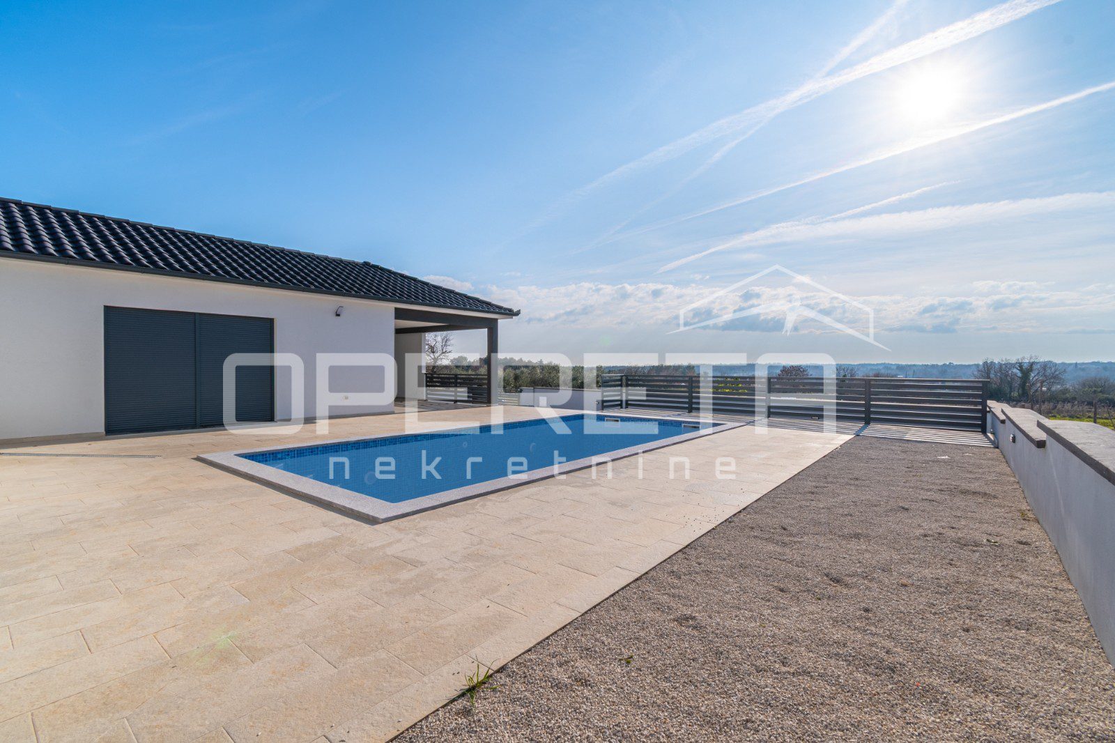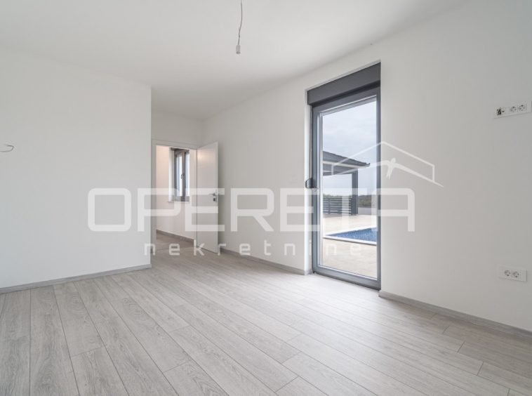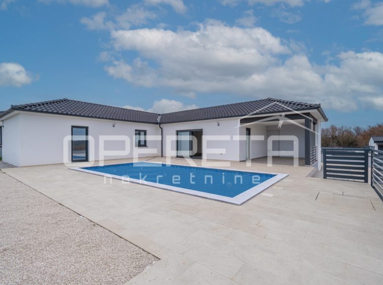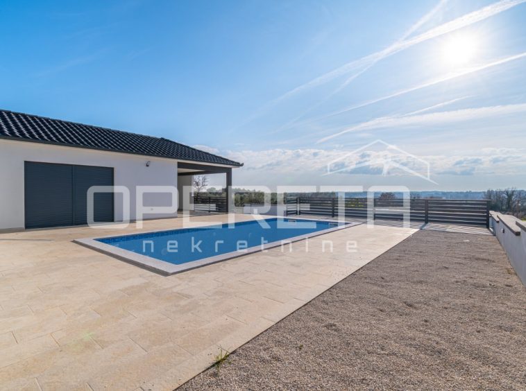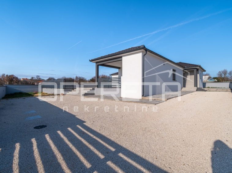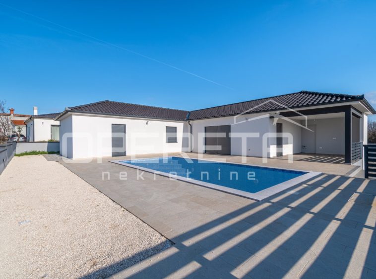 A modern house is for sale in a quiet part of Marčana, on the edge of the construction zone. The house was built in 2024 and is located on a plot of land with a total area of ​​650 m².