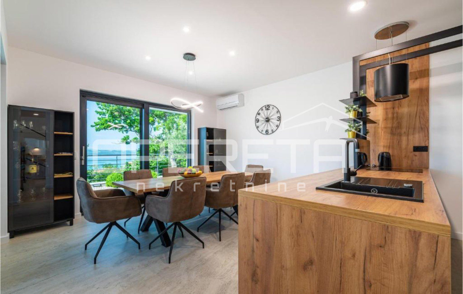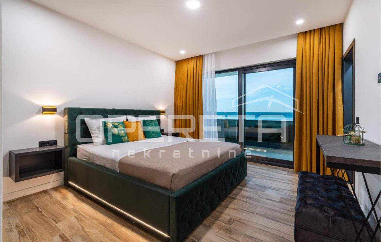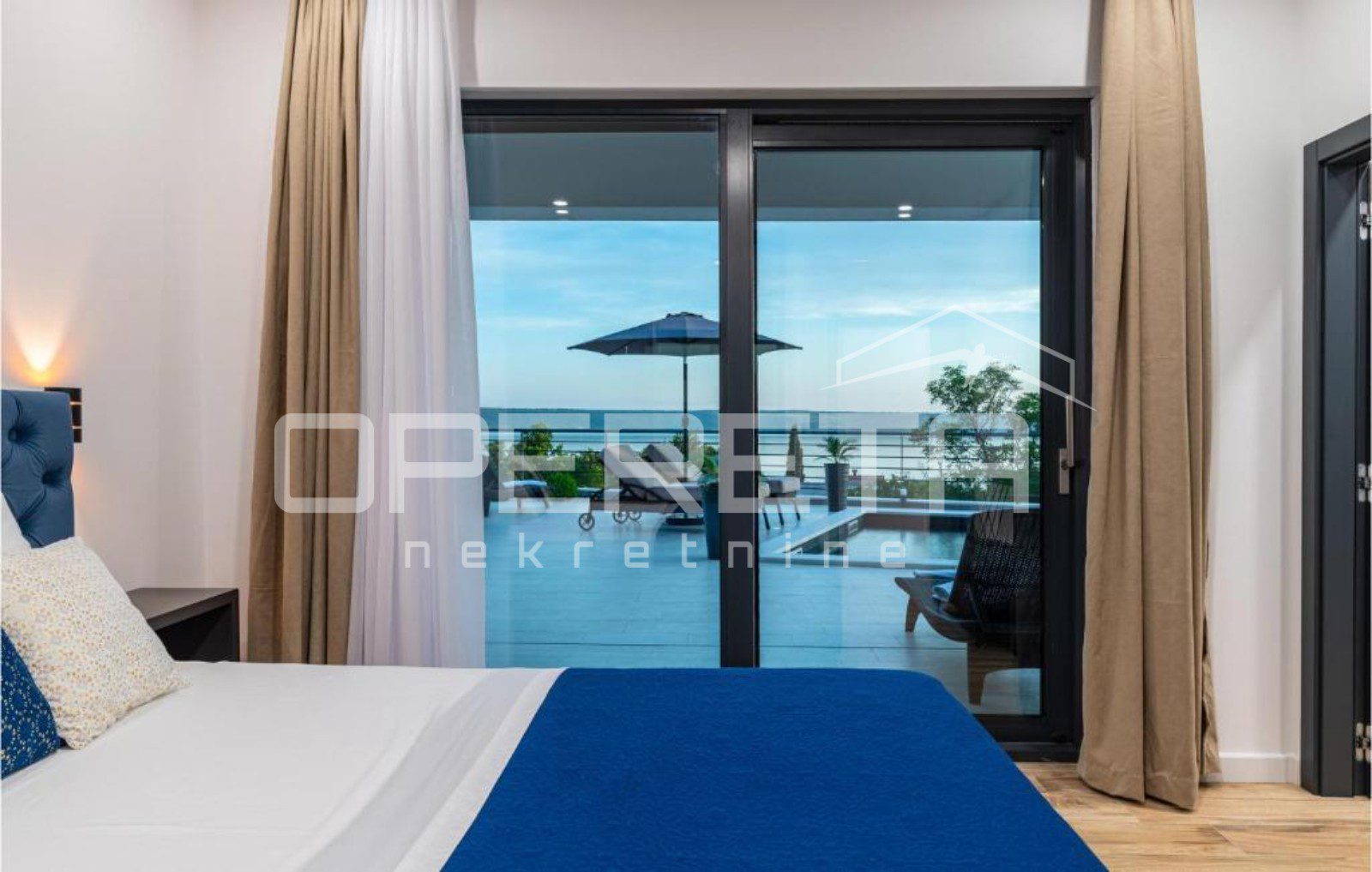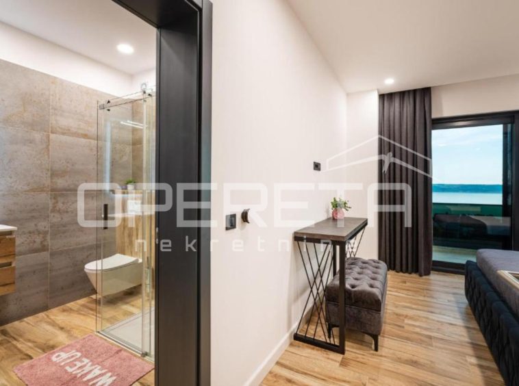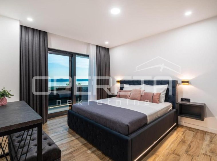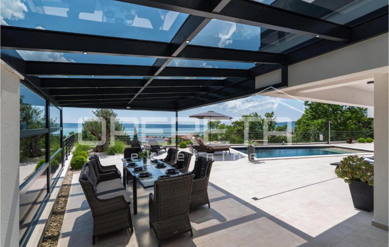 A special feature of this property is the exterior – a unique terrace for relaxation with a dining area and barbecue, a sunbathing deck with loungers, and an outdoor seawater pool of 35 m². From this level, you can enjoy an uninterrupted and stunning sea view.