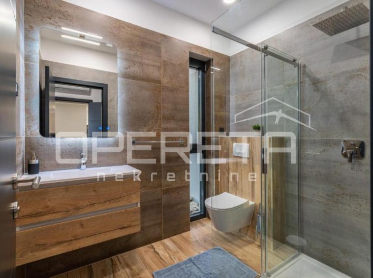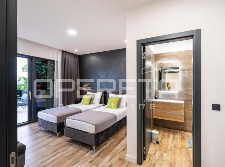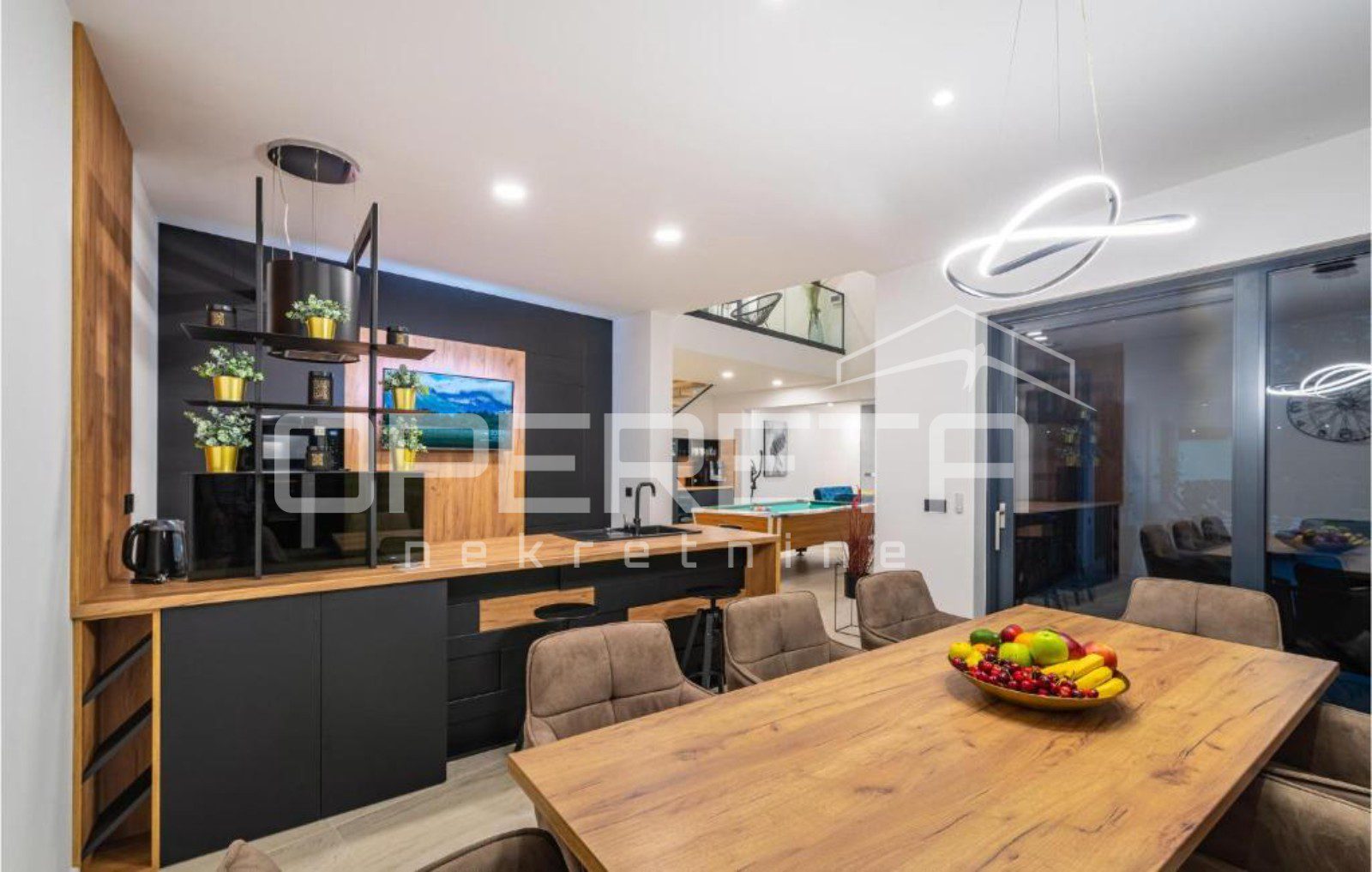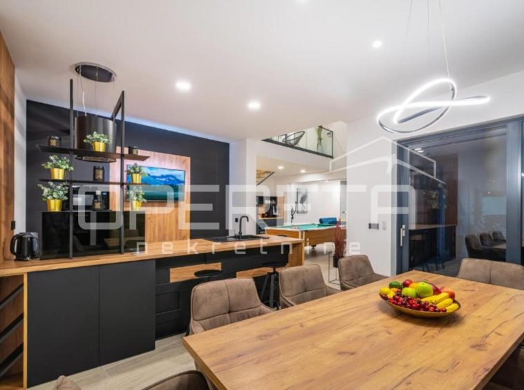 For additional comfort, the villa is equipped with a modern heating and cooling system – a heat pump – which is also environmentally friendly. Underfloor heating is installed in all rooms.