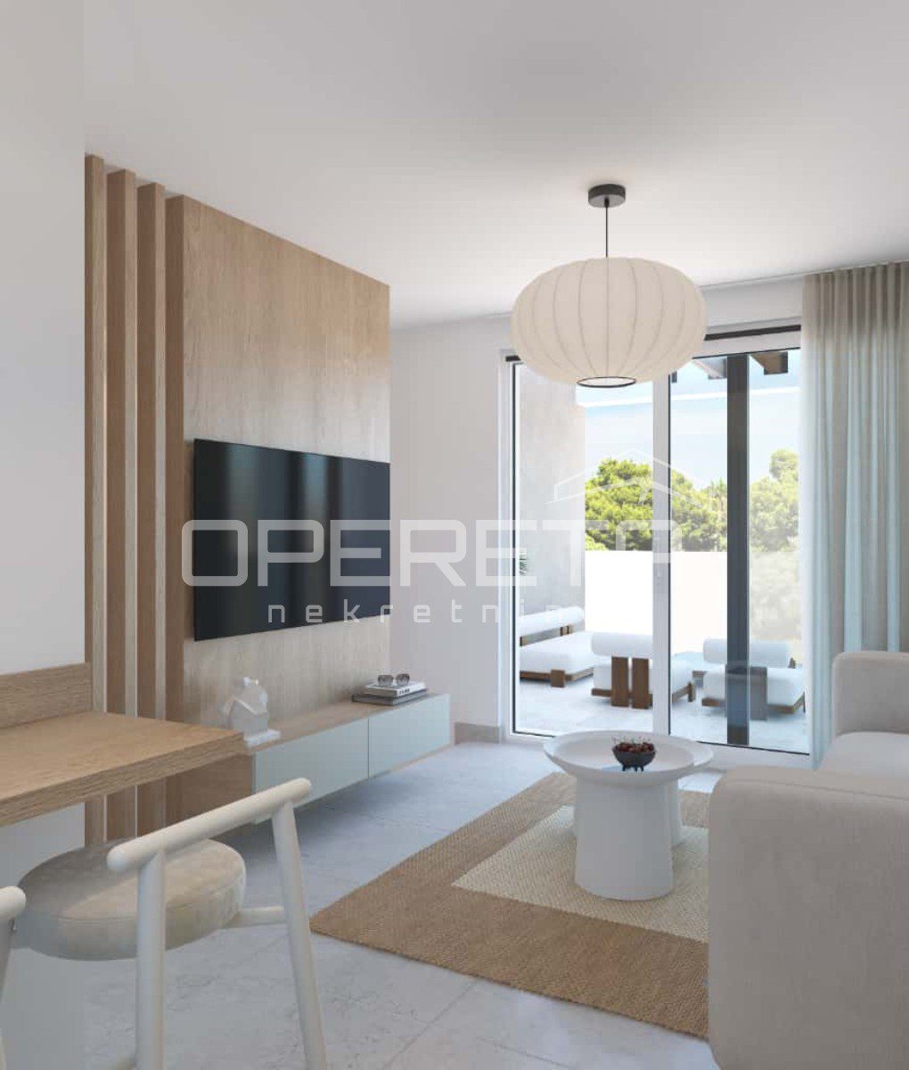 On the ground floor, there is a living room connected to the kitchen and dining room, from which there is access to a landscaped garden of 71 m², where a jacuzzi is provided – a detail that further emphasizes luxury and the possibility of complete relaxation in your own home. The toilet is located on the same level, while the internal staircase leads to the first floor. On the first floor there are two bedrooms, one of which has a terrace with a beautiful view of the sea, as well as a shared bathroom. On the second floor, there is another living room that opens onto a spacious terrace of 17 m² with a panoramic view of the sea, and an additional toilet. If necessary, it can be converted into an additional bedroom.