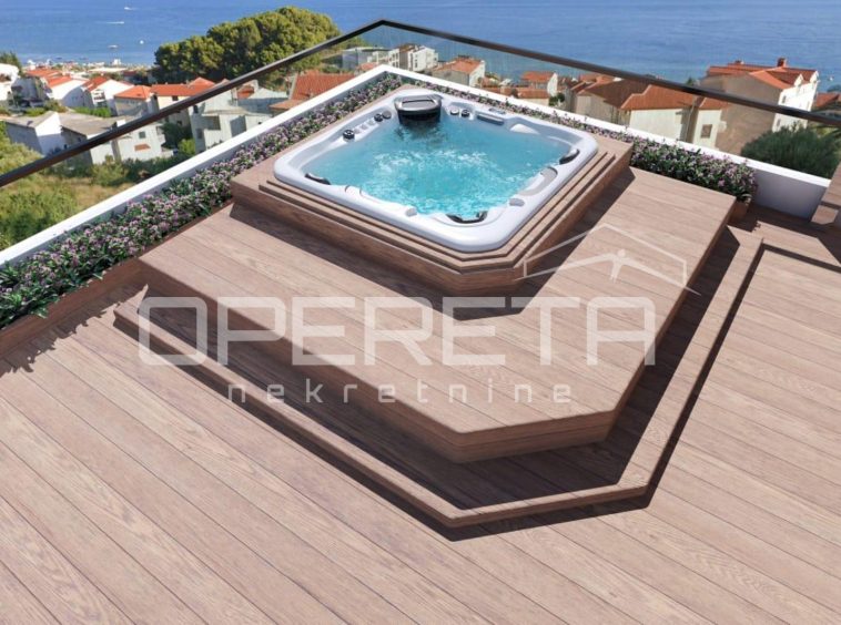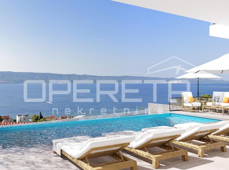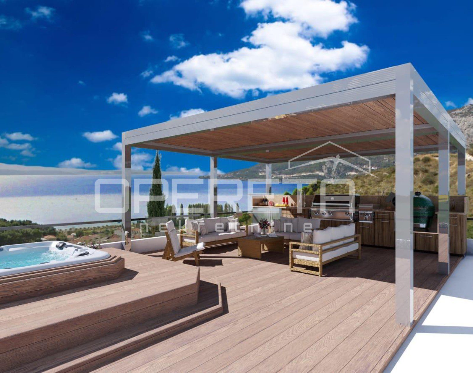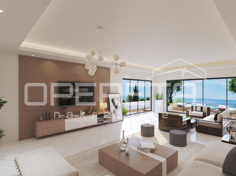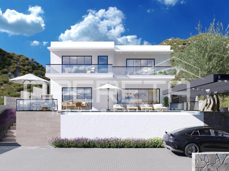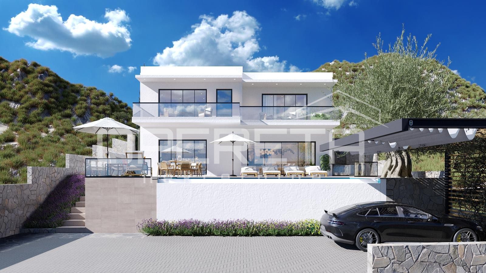 A modern villa under construction in Duće is for sale, with a total living area of 242.94 m², just 200 meters from the sea and the nearest beach. The villa has an unobstructed panoramic view of the sea and offers complete privacy and peace in an attractive environment.