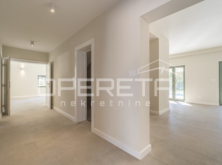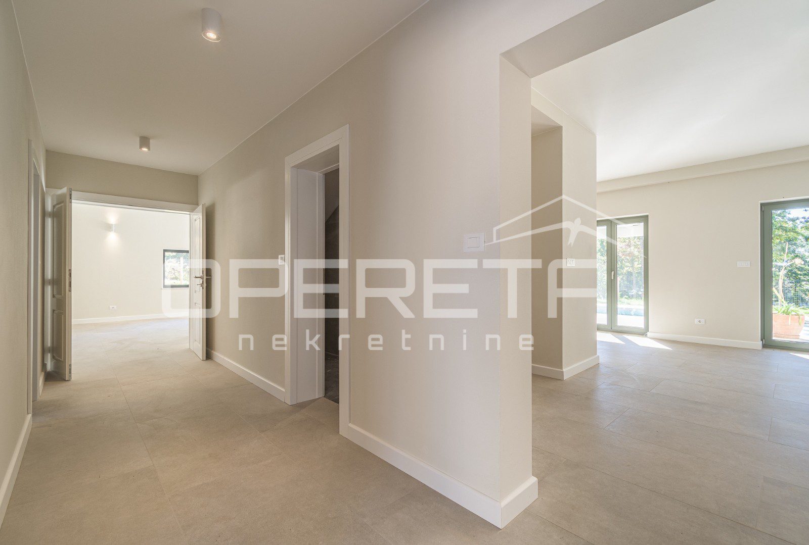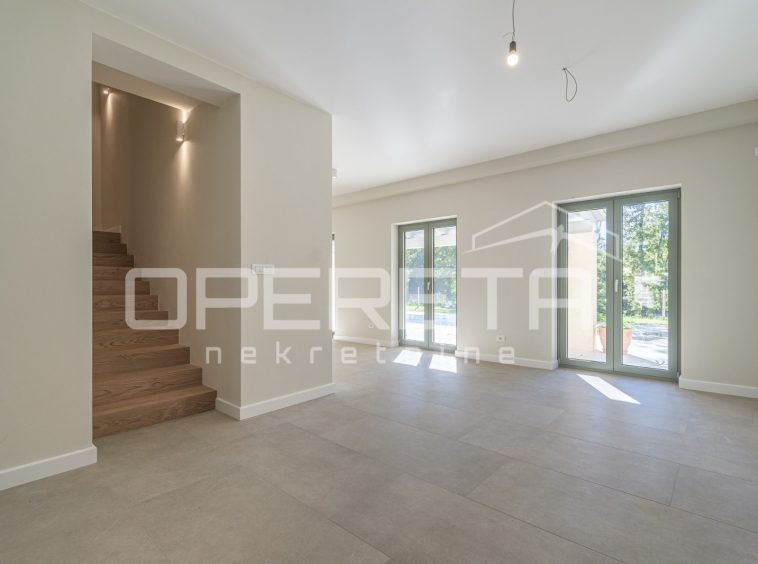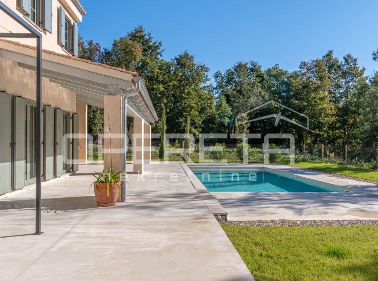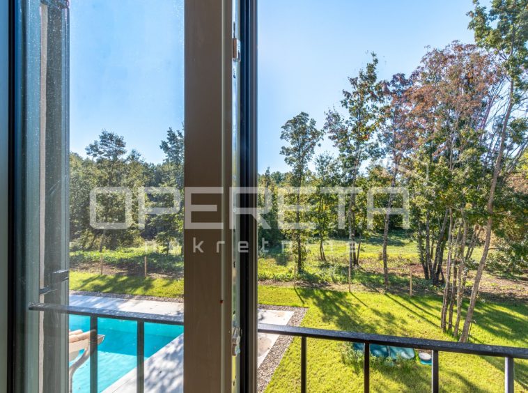 The exterior is designed for complete relaxation and enjoyment of nature. Besides the pool and spacious sundeck, the yard offers a beautifully landscaped Mediterranean garden and secure parking. As the property is situated in a secluded spot, surrounded by greenery, it guarantees complete privacy and tranquility.