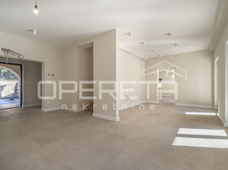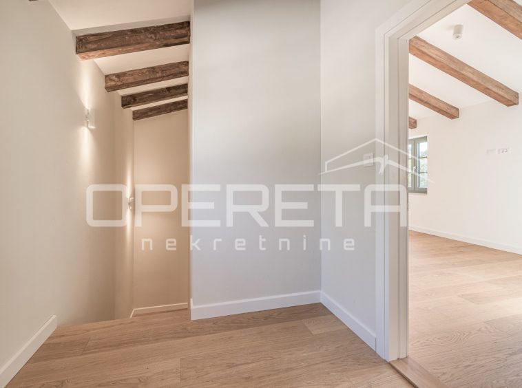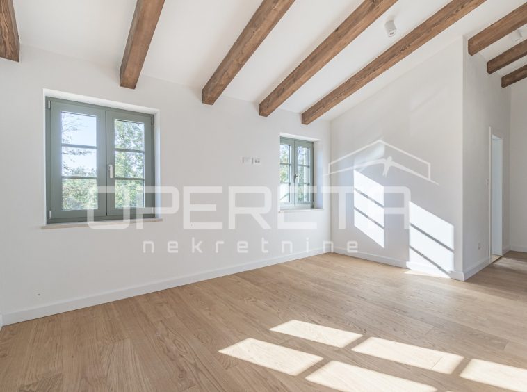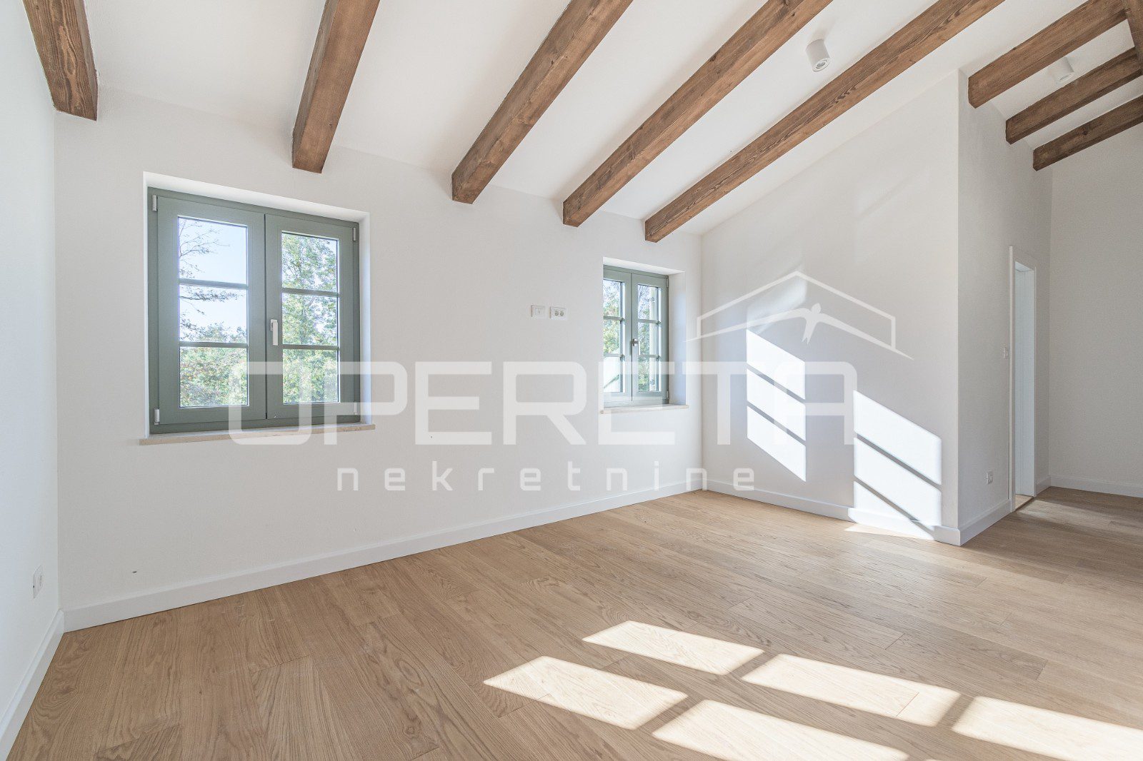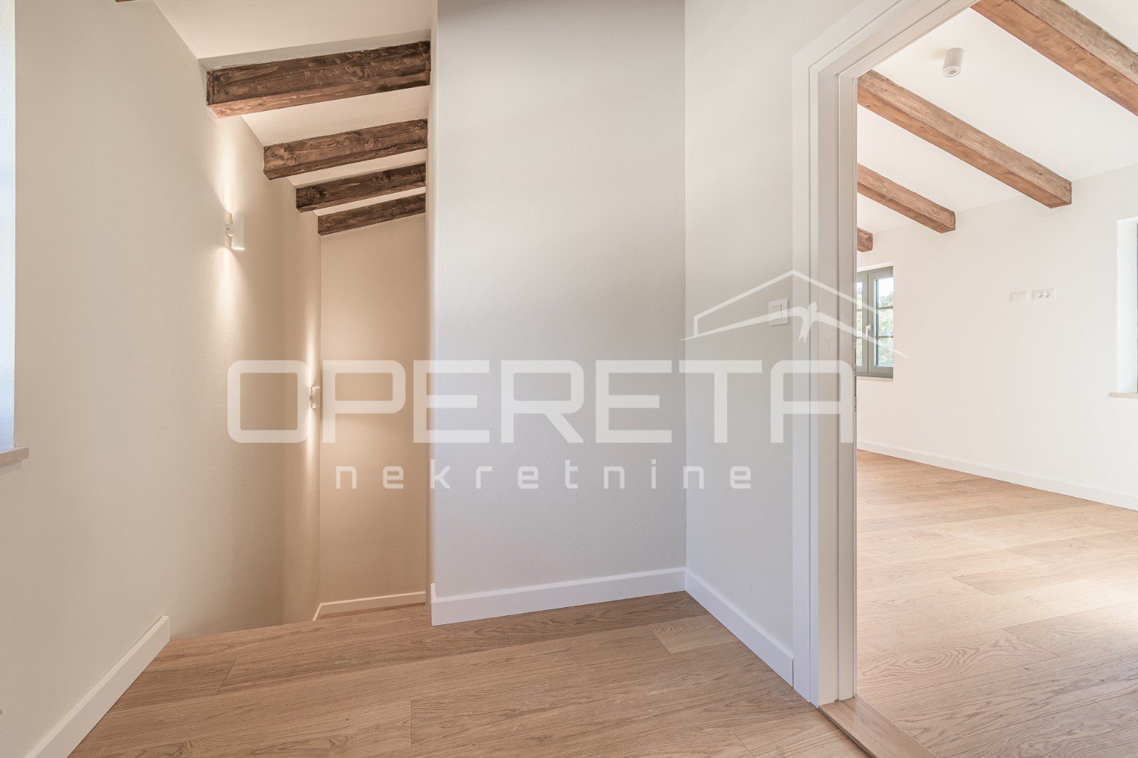 In the small Istrian village of Lindar, a traditional Istrian house with a pool is for sale, offering a total area of 227 m² on a 1000 m² plot. The house itself has a living area of 170 m² spread over two floors.
