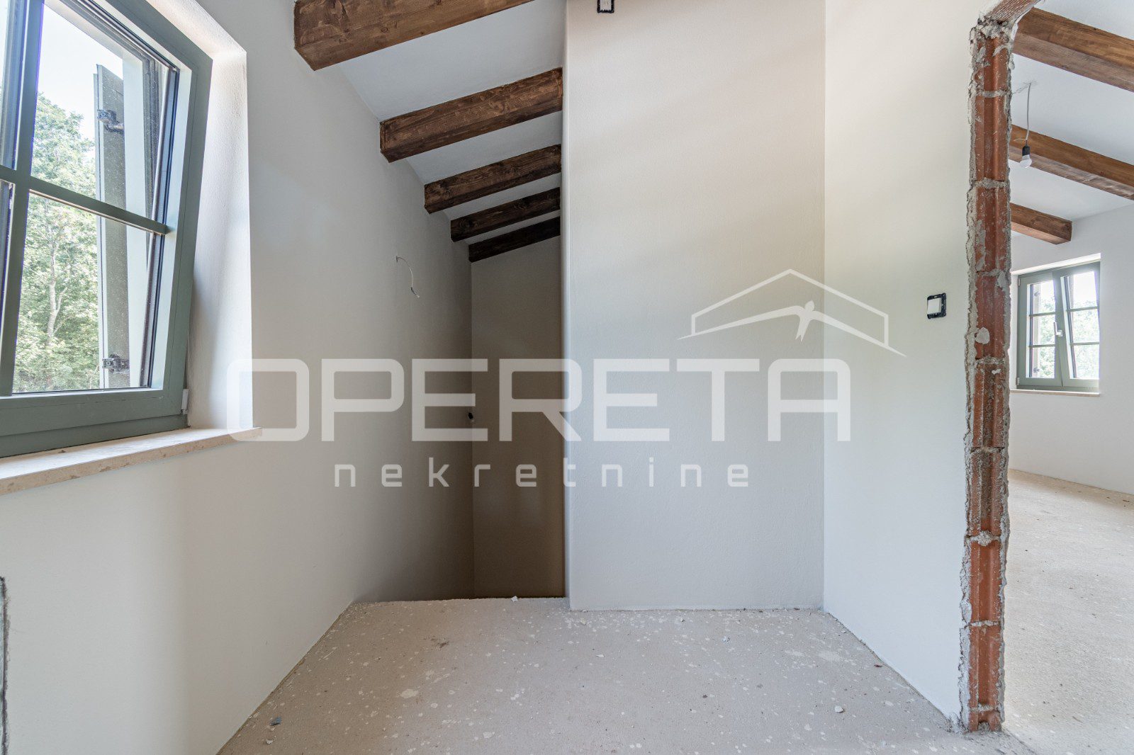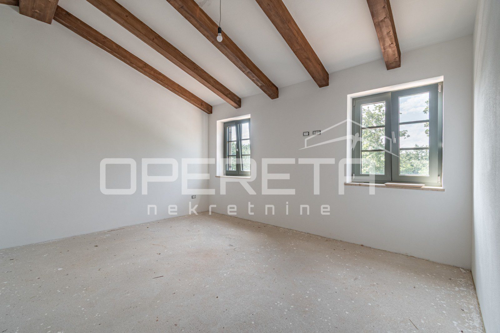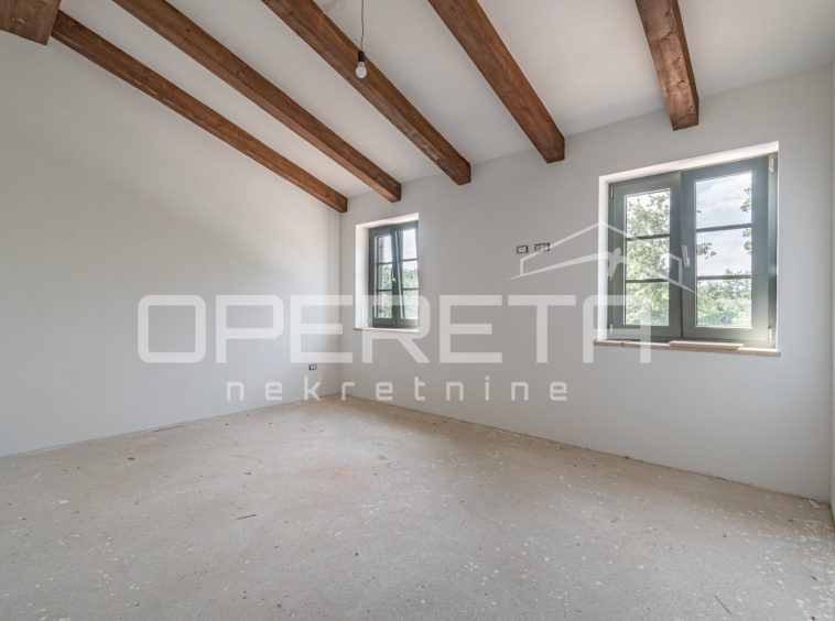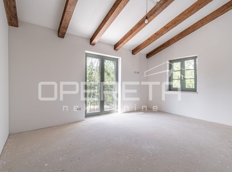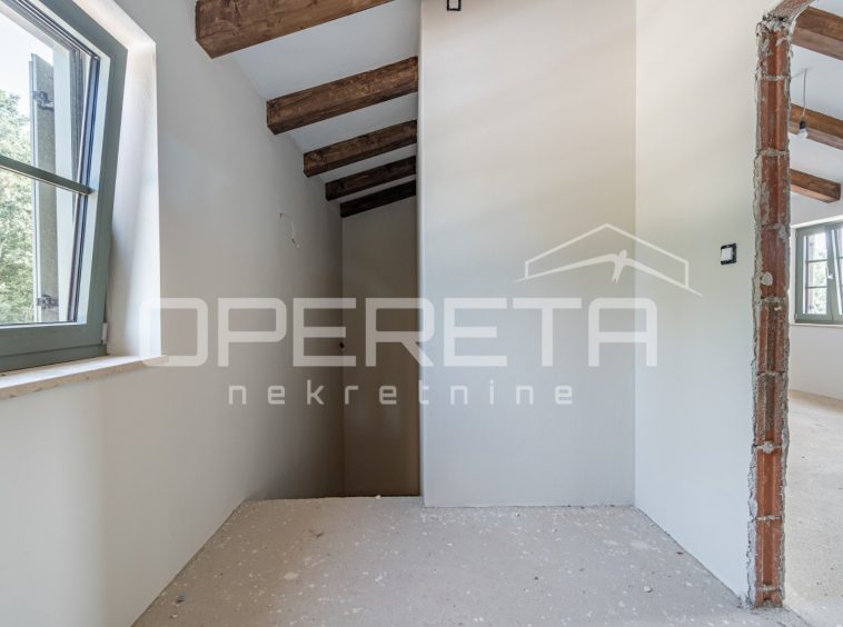 In the small Istrian village of Lindar, a traditional Istrian house with a pool is for sale, offering a total area of 227 m² on a 1000 m² plot. The house itself has a living area of 170 m² spread over two floors.