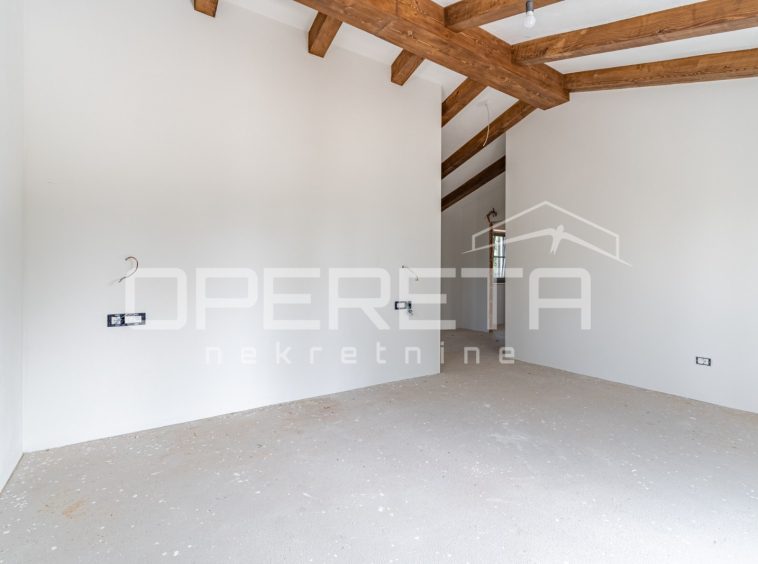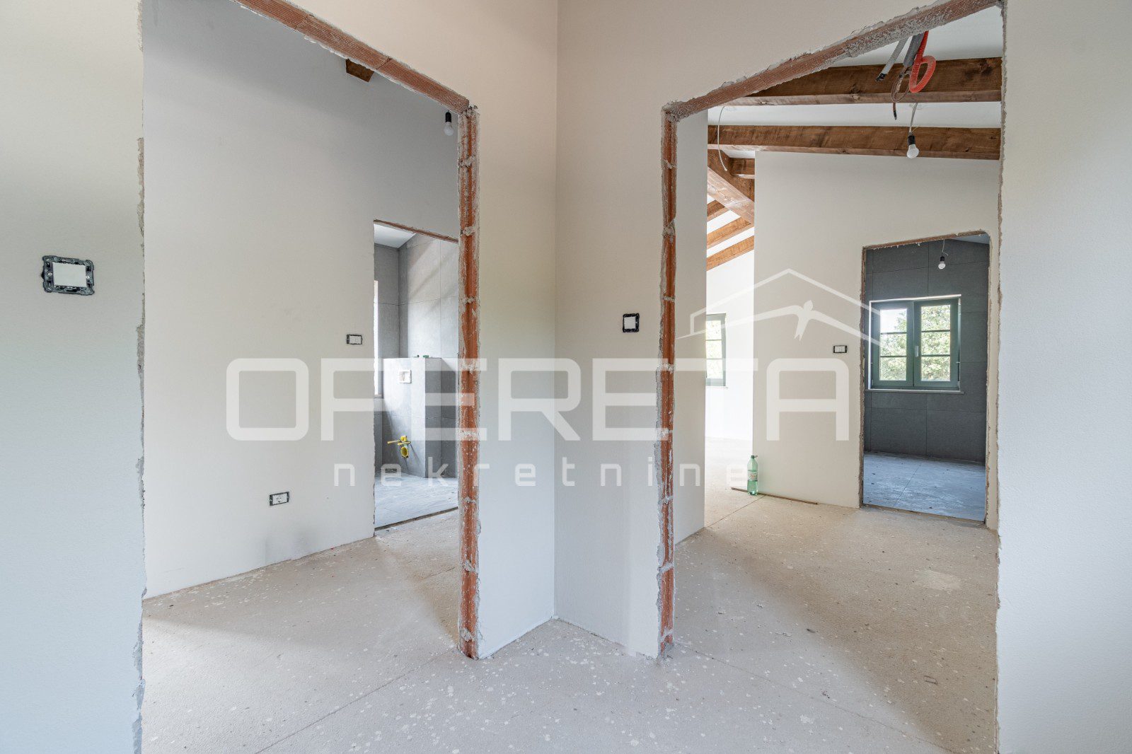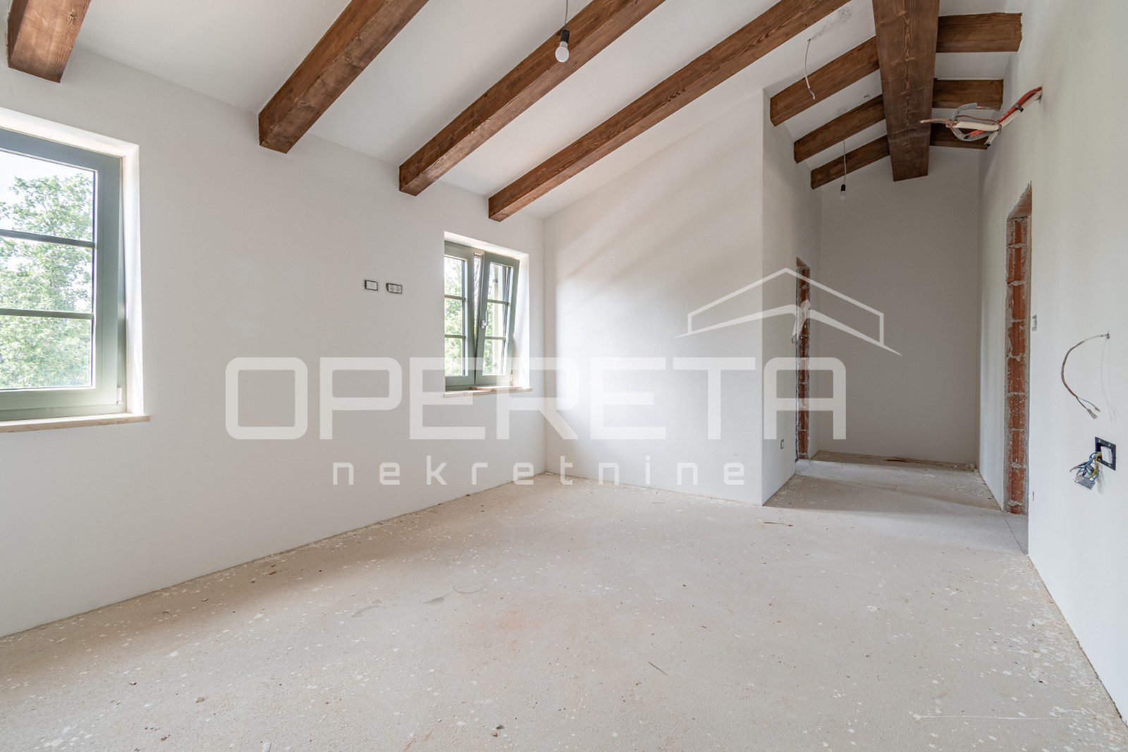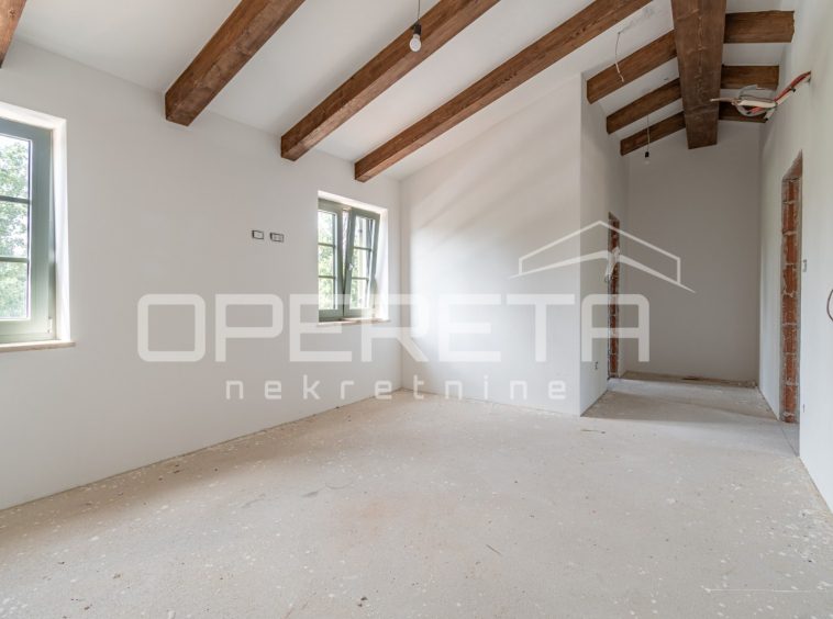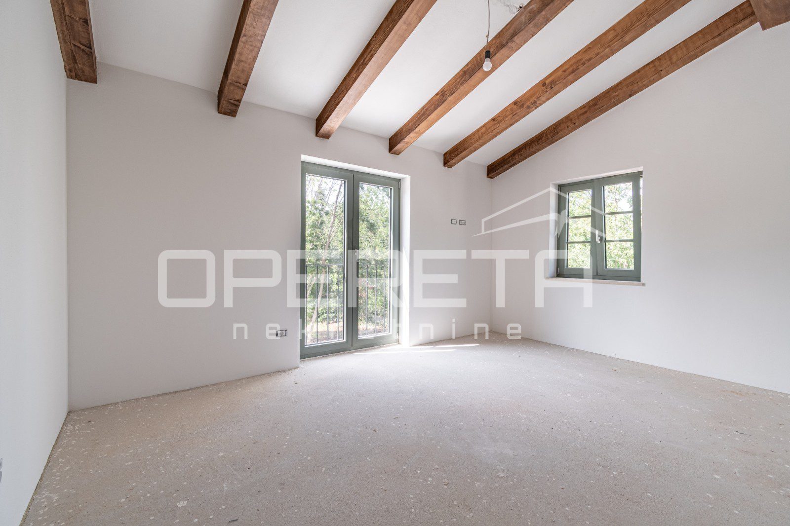 In the small Istrian village of Lindar, a traditional Istrian house with a pool is for sale, offering a total area of 227 m² on a 1000 m² plot. The house itself has a living area of 170 m² spread over two floors.