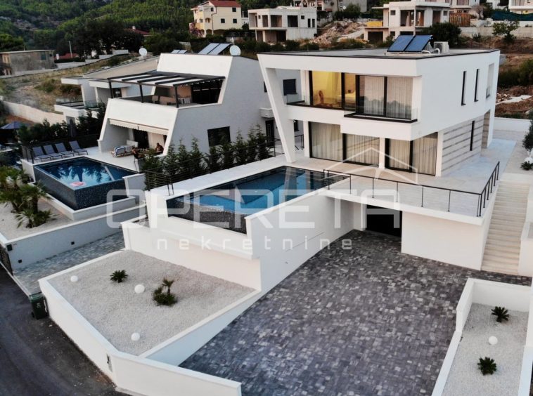 Enjoy a relaxed Mediterranean lifestyle and spectacular views of the city of Split and the Adriatic Sea. A sophisticated first-class interior and idyllic outdoor areas. Situated on the 800-square meters plot, it comprises 320 square meters of living space spread over three levels.