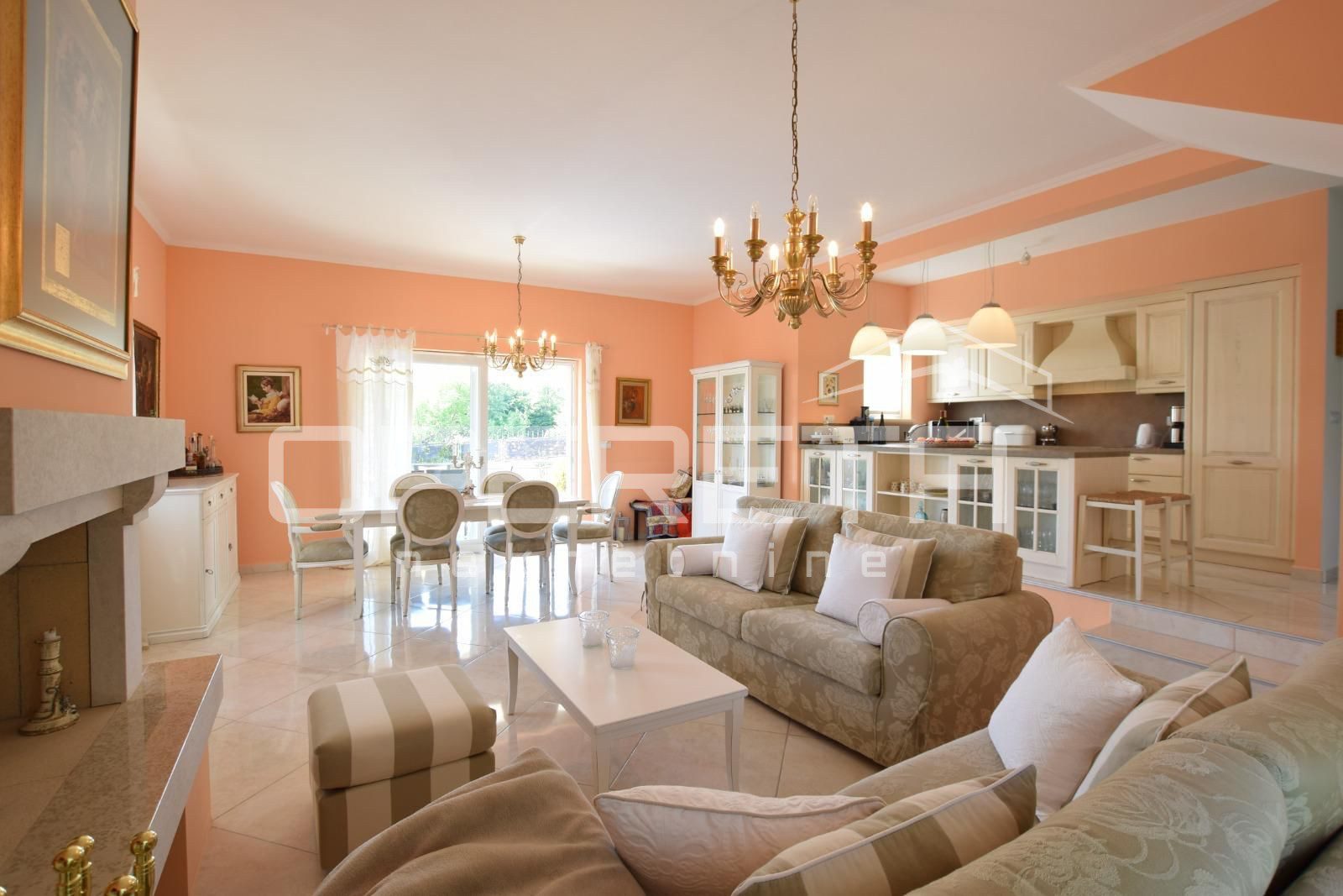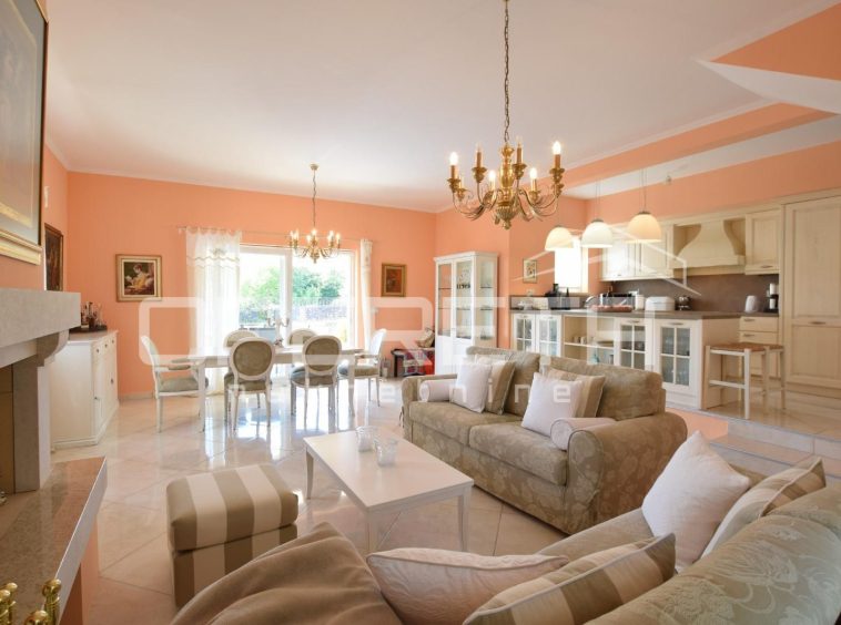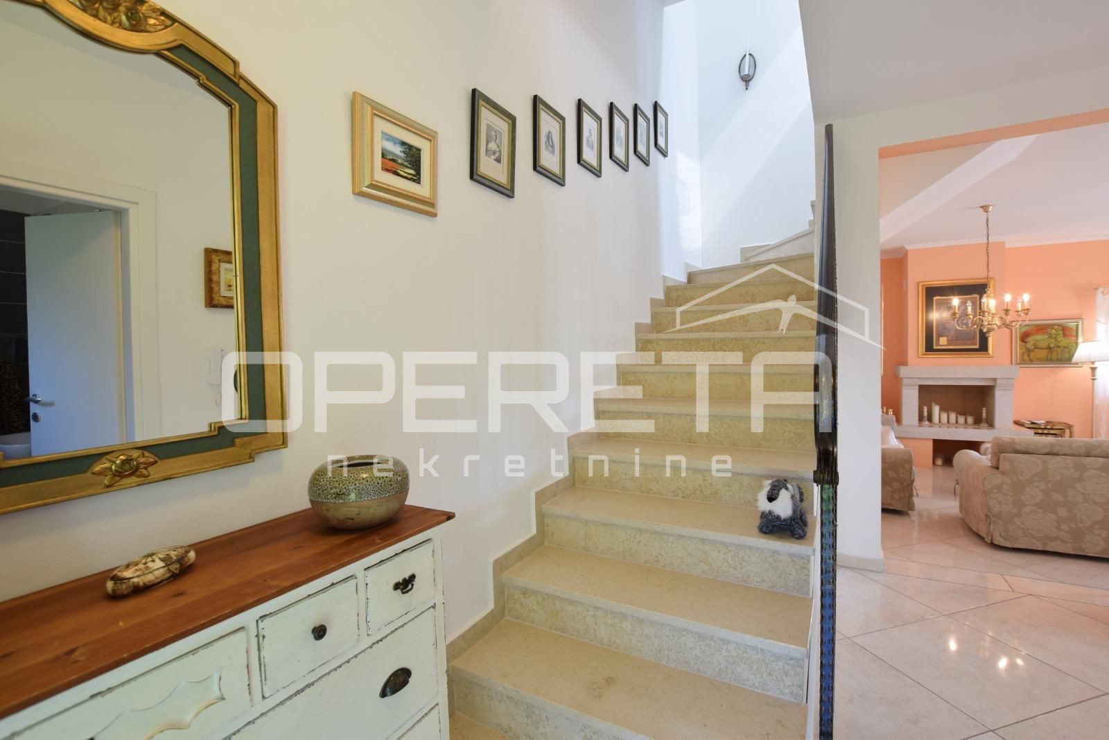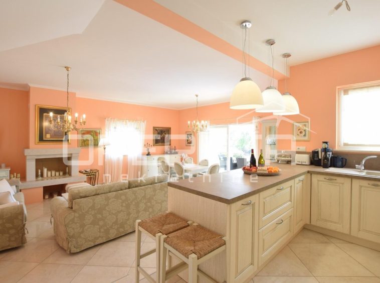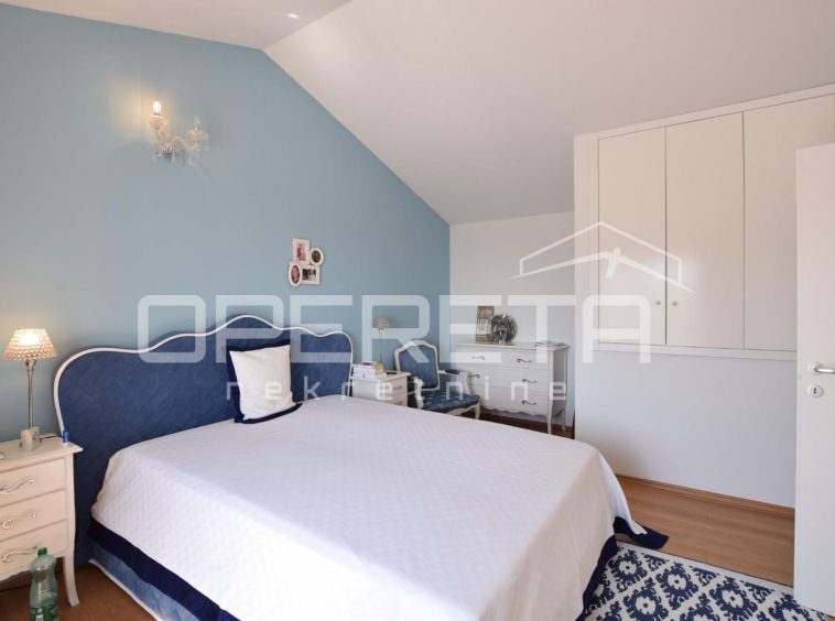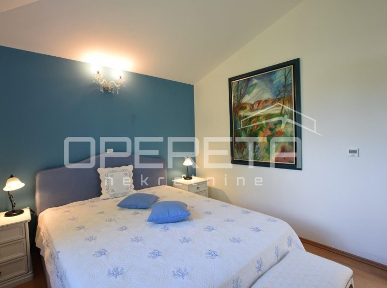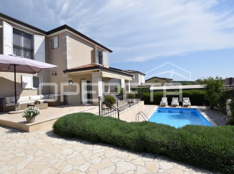 Heating is provided by a heat pump-driven underfloor heating system, along with additional air conditioning units for temperature regulation. The beautifully arranged courtyard features a 24 m² swimming pool with a sunbathing area and a well-maintained garden. The nearest beaches are only 4–5 km away, and the center of Poreč can be reached in about 10 minutes by car.