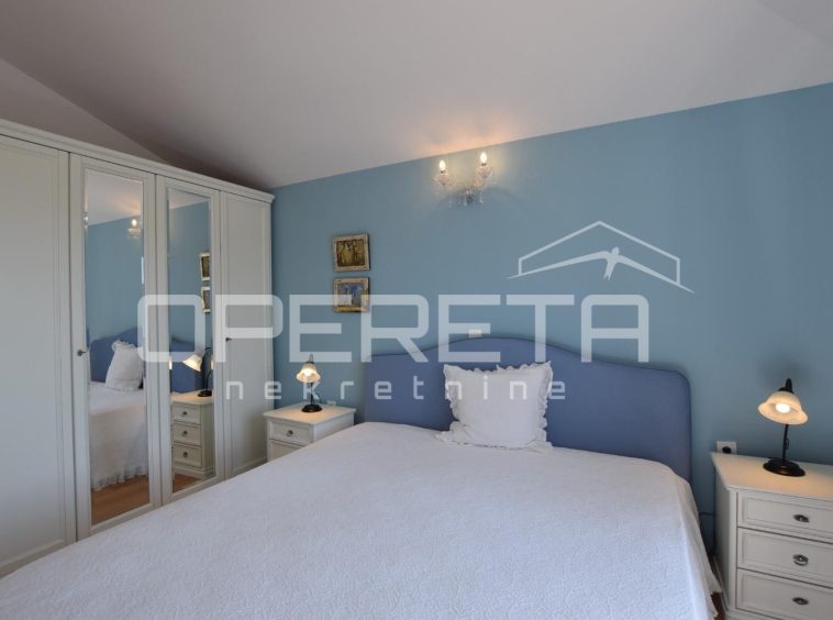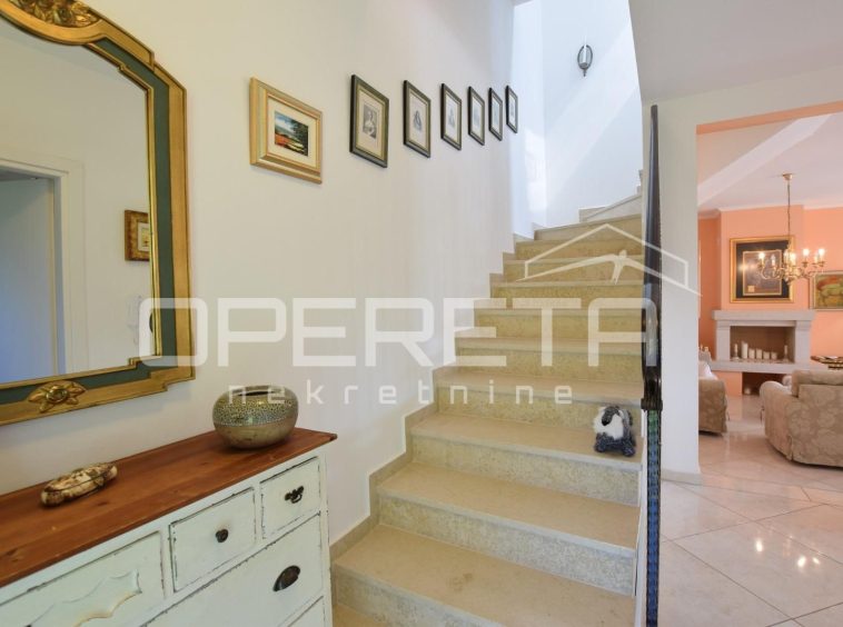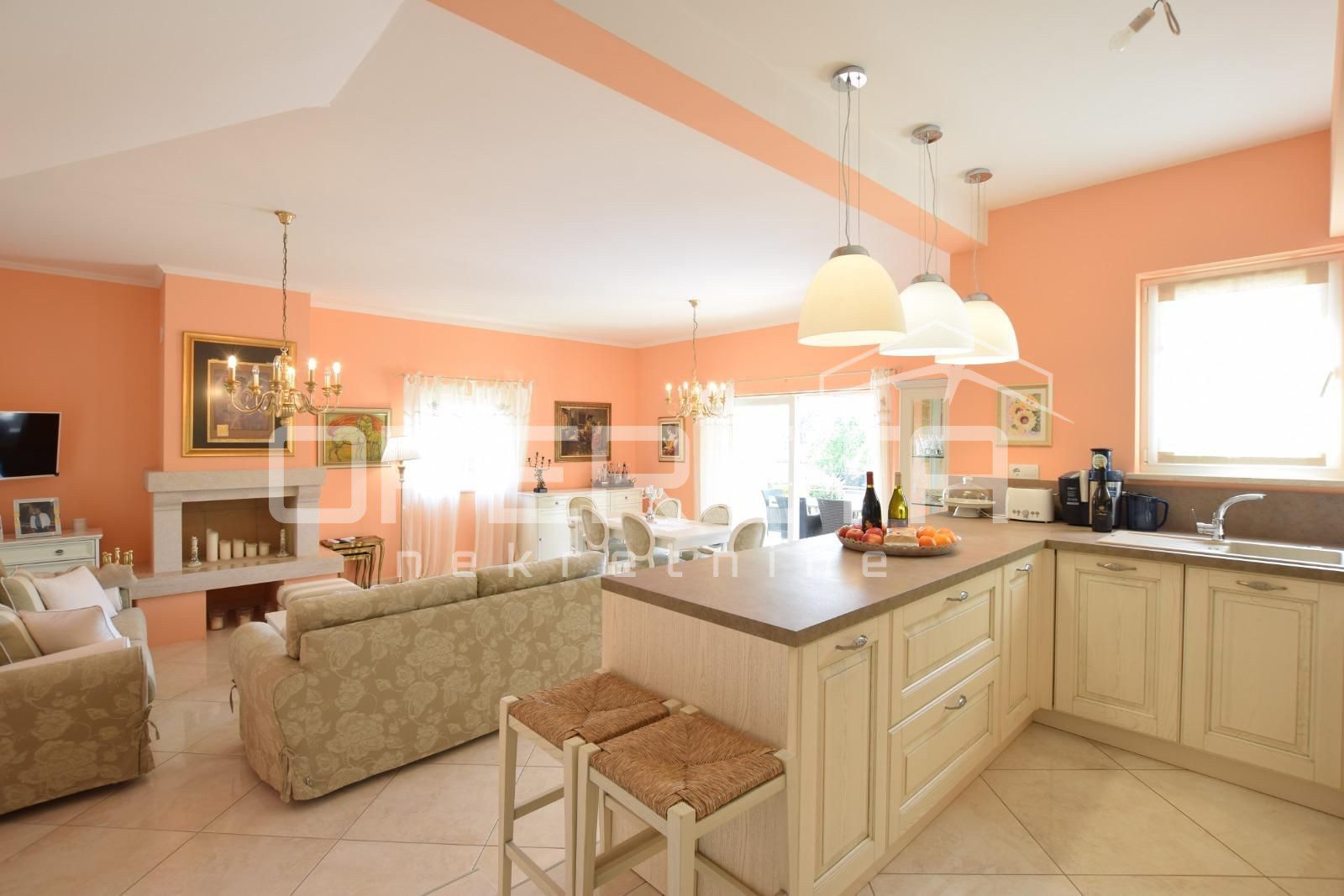 For sale is a house of 145 m² located on a landscaped plot of 533 m² in a quiet village near Poreč. The ground floor consists of an entrance hall, a kitchen and dining room with access to the terrace, a living room, a small storage room, and a bathroom with a shower. Upstairs there are three bedrooms and one bathroom with a bathtub, from which a lovely sea view is offered.
