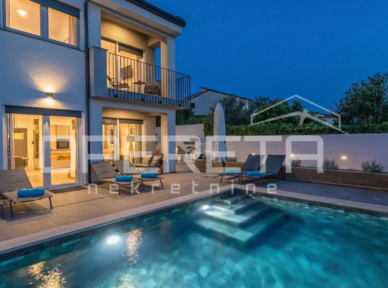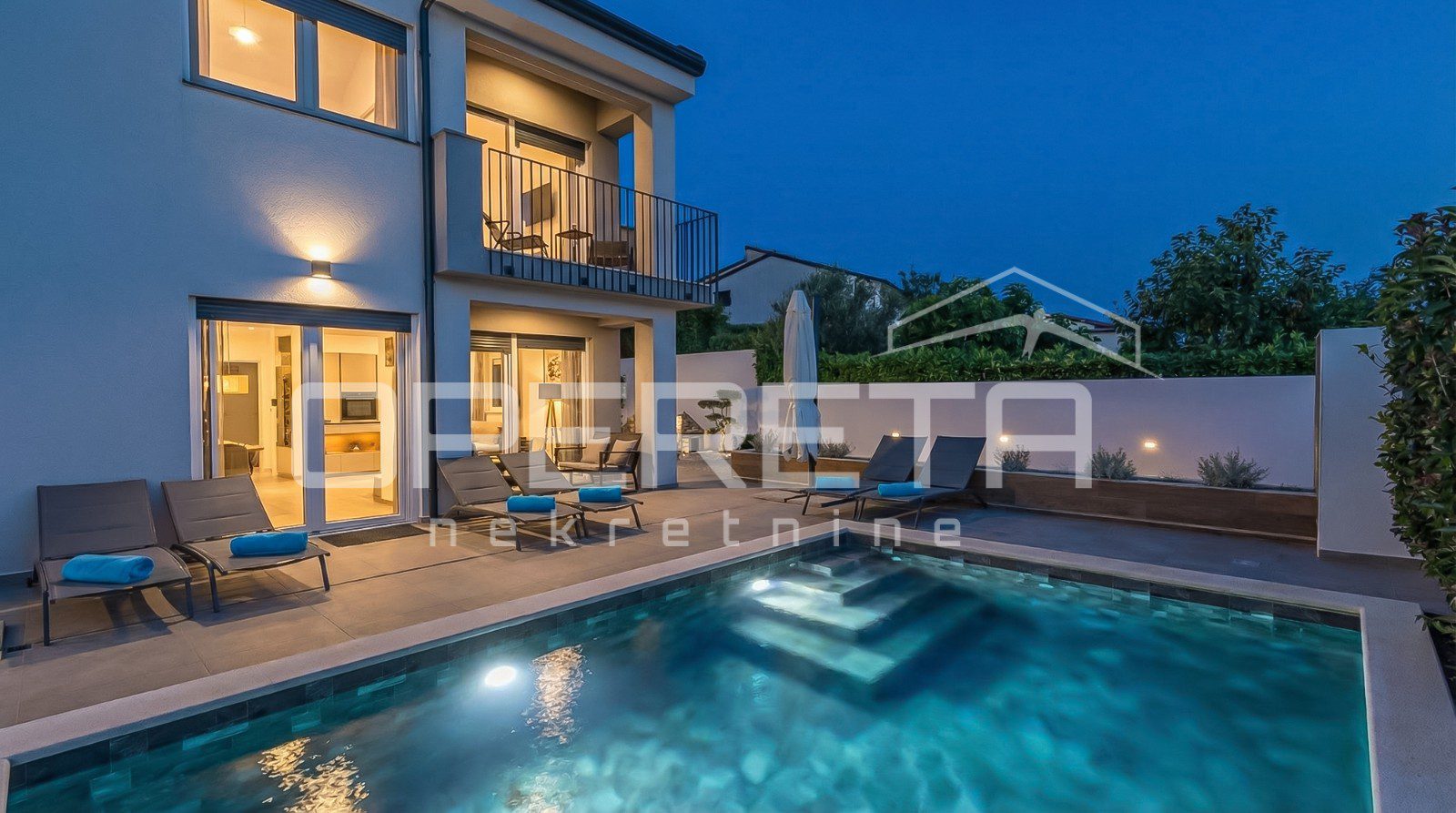 The house spans 160 m² of interior space, with a spacious garden of approximately 250 m² ensuring privacy and relaxation. The central part of the garden is occupied by a private swimming pool, ideal for cooling off during warm Istrian days, conveniently located in front of the house.