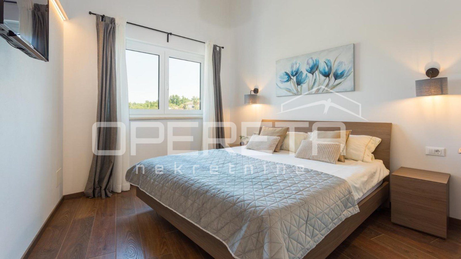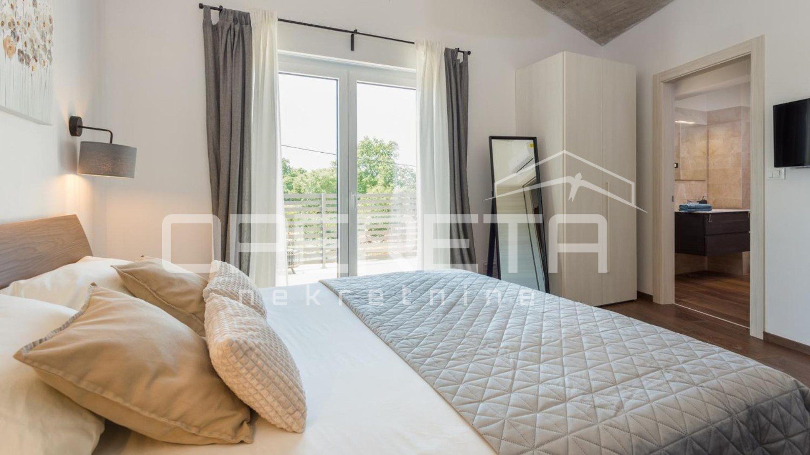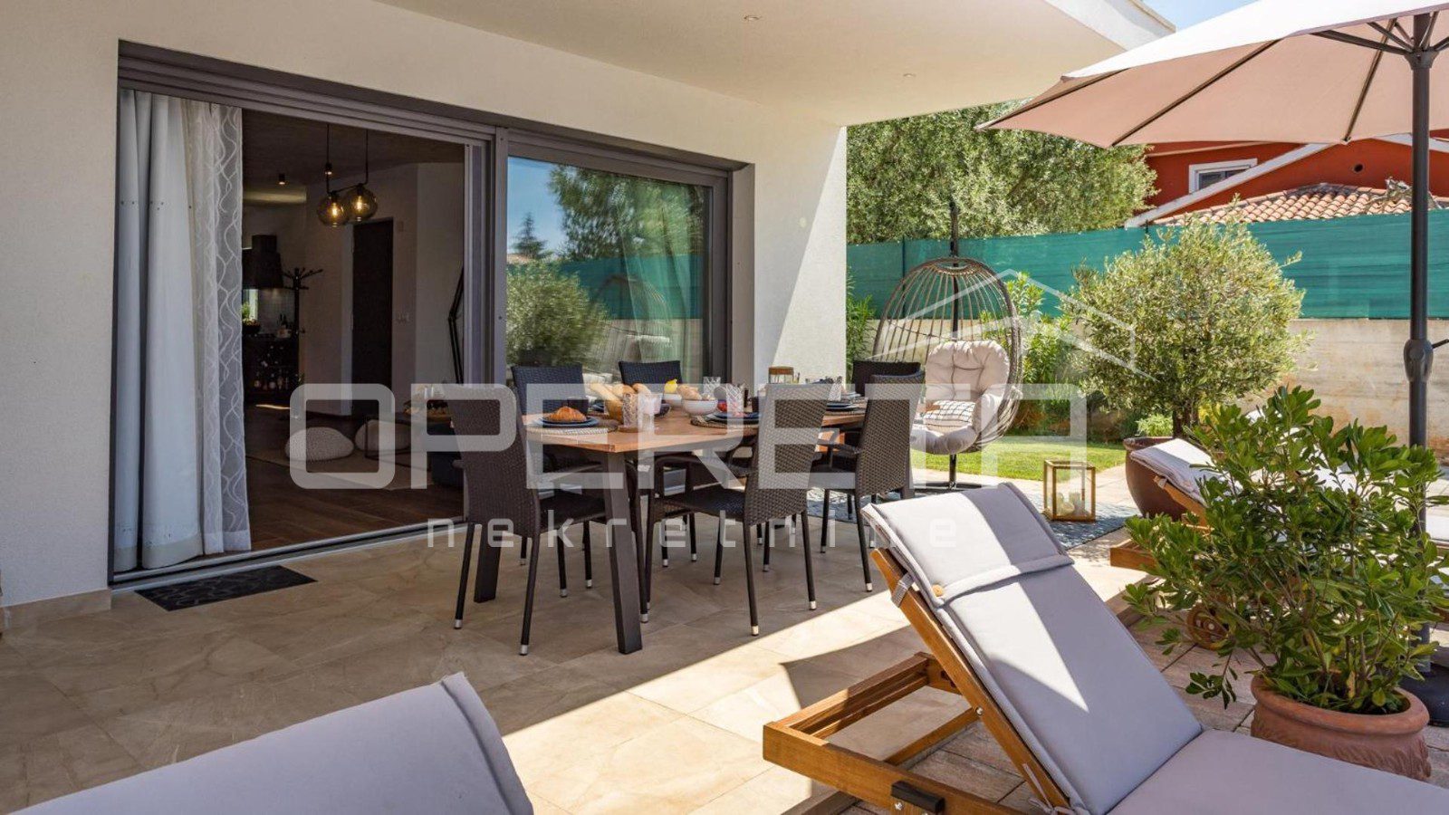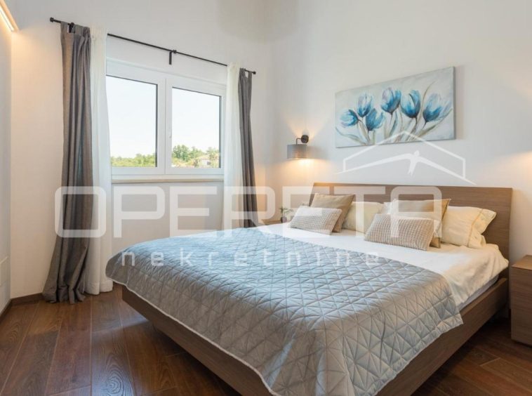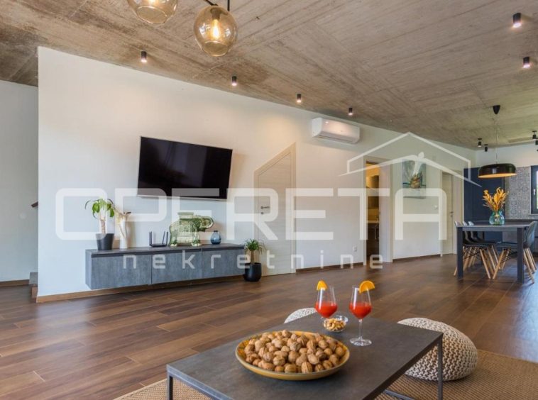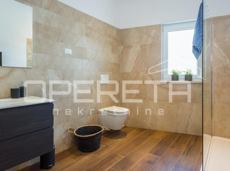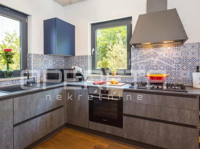 From our offer, we present a modern semi-detached house with a surface area of 129 m², situated in a quiet location only 4 km from Poreč. The house extends over two floors on a fenced plot of 250 m².