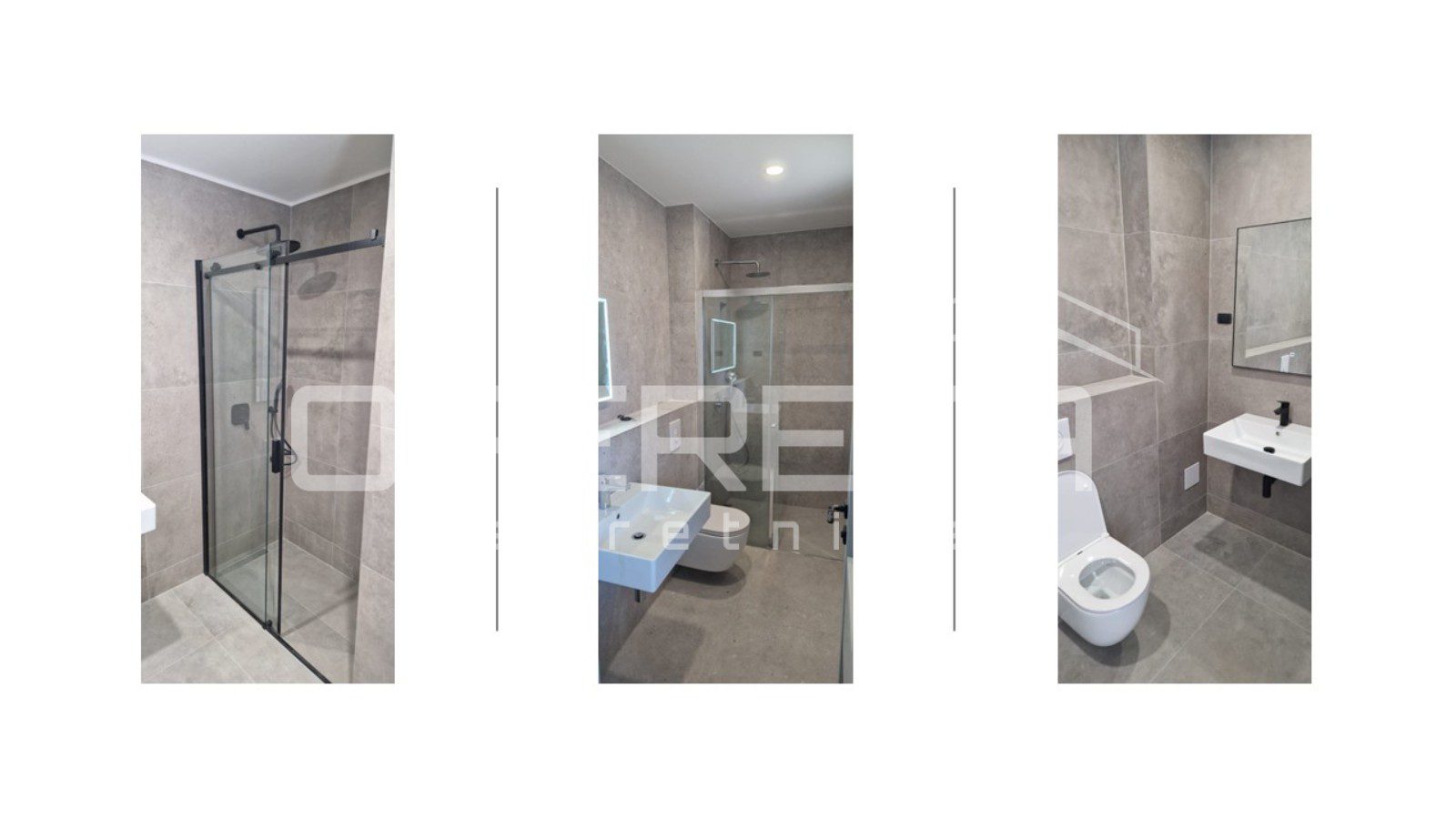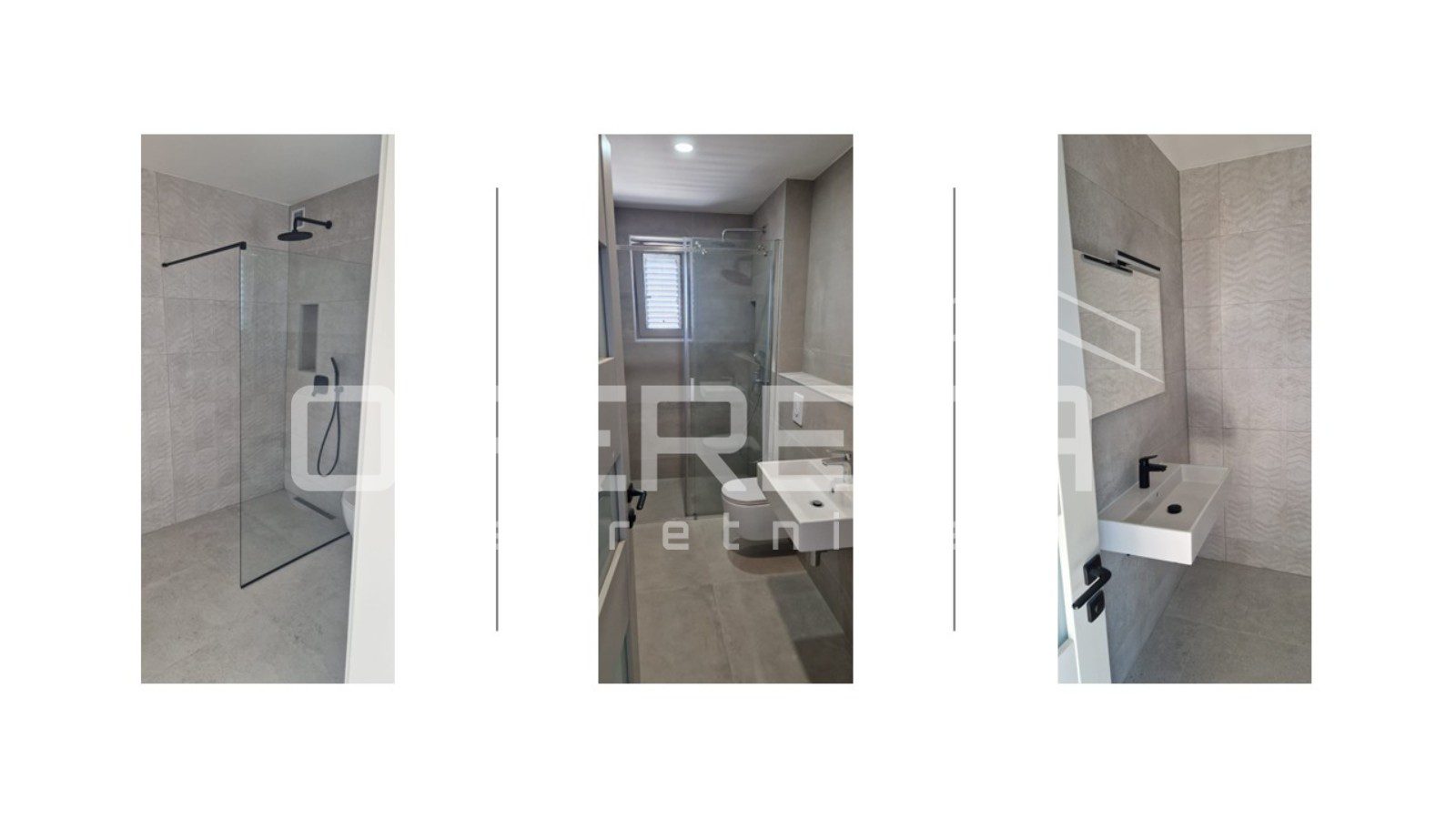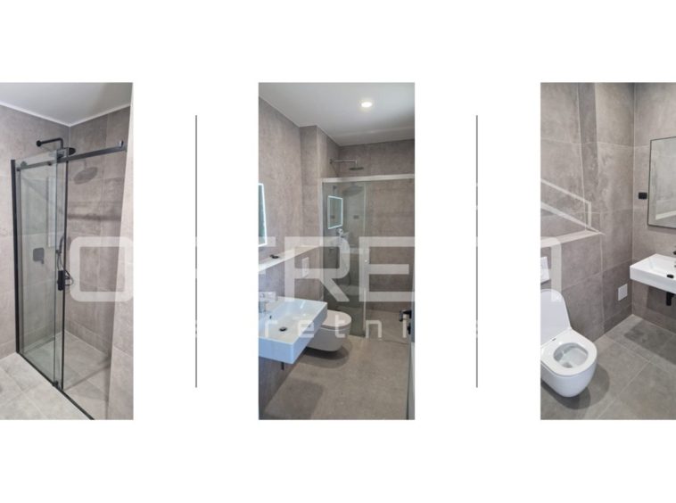 The property features aluminum joinery with insect screens and shutters, Inotherm entrance doors, and designer interior doors 220 cm high, enhancing the modern and refined character of the interior. Terraces and loggias are finished with high-quality materials for durability and aesthetics.