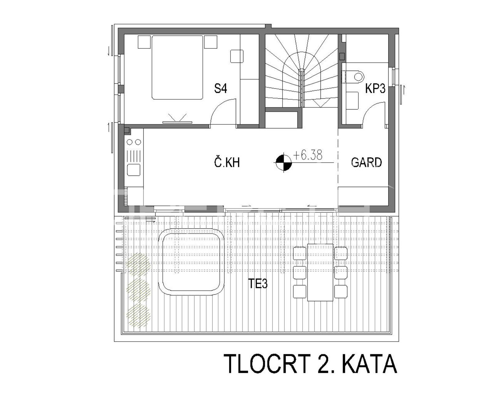 The first floor hosts three spacious bedrooms, two bathrooms, and a loggia, while the second floor has a fourth bedroom with bathroom and walk-in closet, as well as a roof terrace with a closed summer kitchen and a terrace with a jacuzzi (30 m²).
