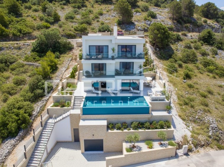 Just 100 meters from the sea, in the quiet and well-maintained settlement of Zatoglav near Rogoznica, there is a modern villa that offers a perfect balance of comfort, privacy and contemporary design on three floors. Situated on a slightly elevated position, the villa offers a view of the sea, and the carefully designed layout of the rooms allows for comfortable living throughout the year.