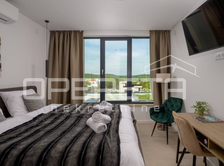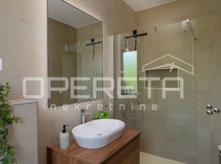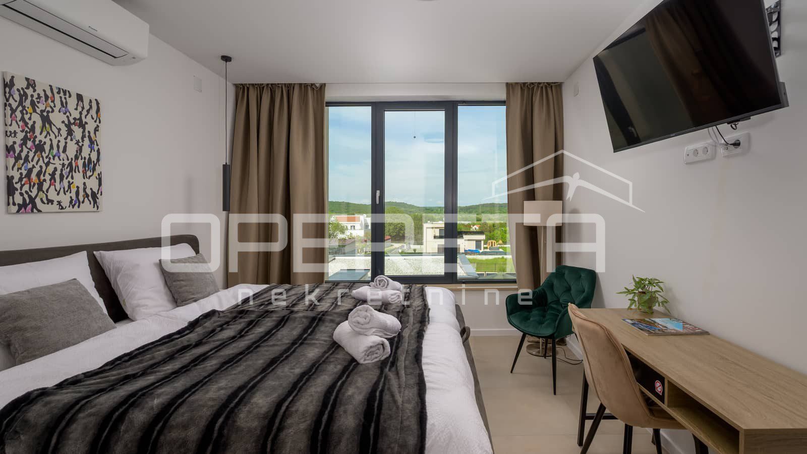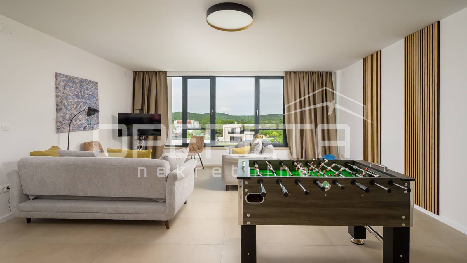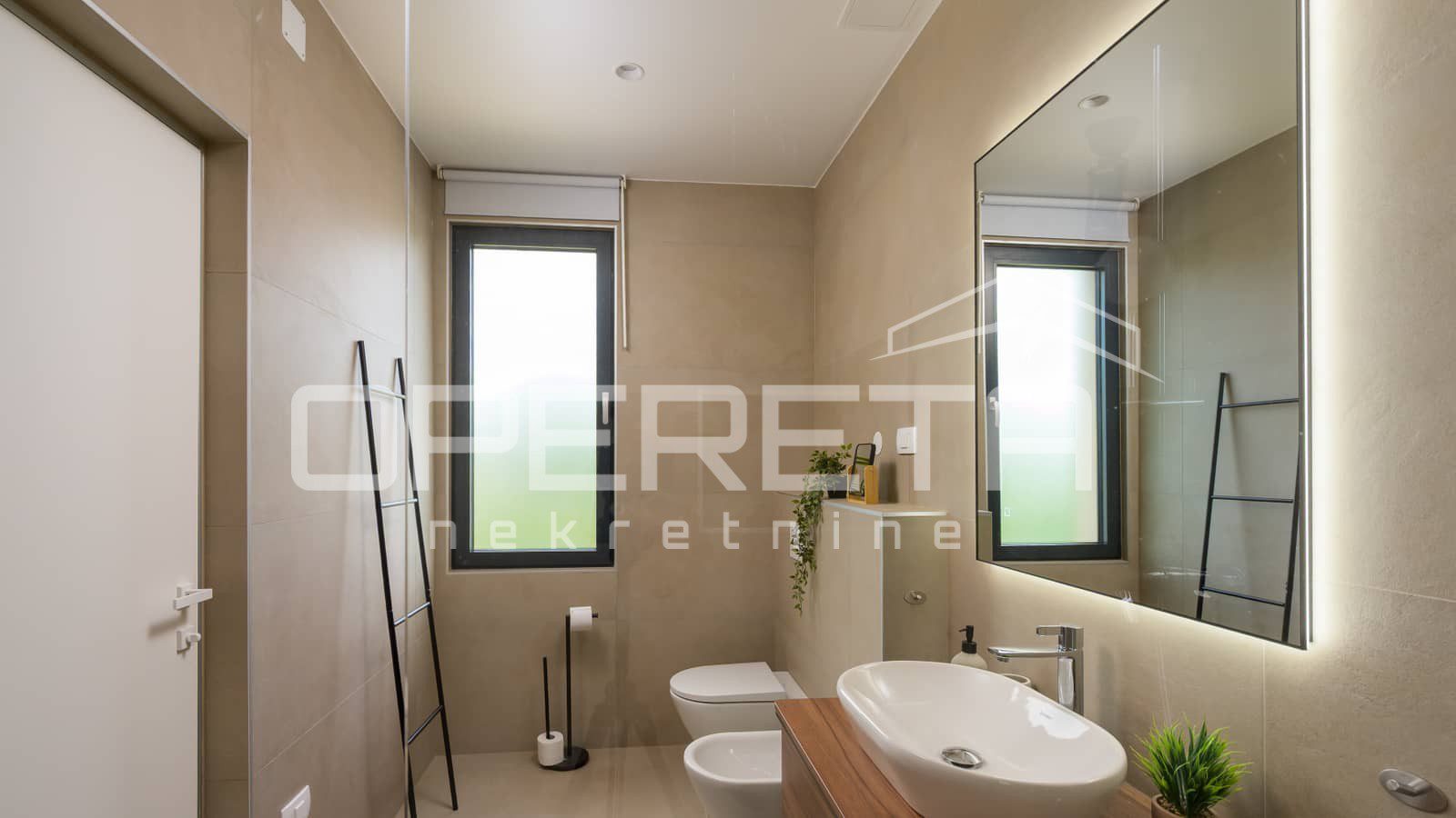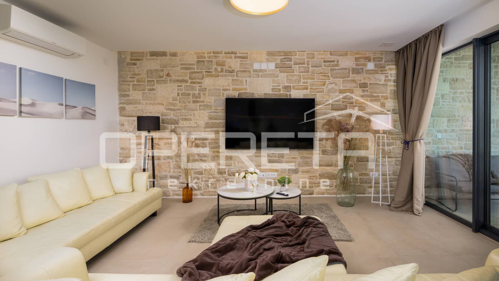 Just outside Rovinj, in the peaceful village of Rovinjsko Selo, this modern and luxuriously furnished villa is available for rent. Surrounded by an authentic Istrian setting, the villa offers tranquility, complete privacy, and a stay immersed in nature, while still being close to all essential amenities.