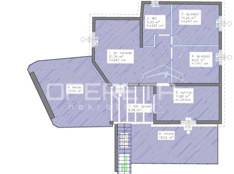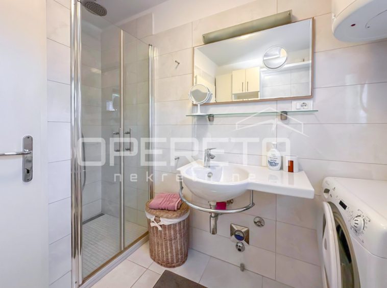 On the upper floor, the second unit has three spacious terraces totaling 52 m² – two covered (10 m² and 23 m²) and one uncovered (19 m²). From the terraces, there is a beautiful view of the sea, giving the space a special atmosphere and connection to the surroundings. The interior comprises a living room, kitchen, two bedrooms, and a bathroom, with a total area of 60 m².