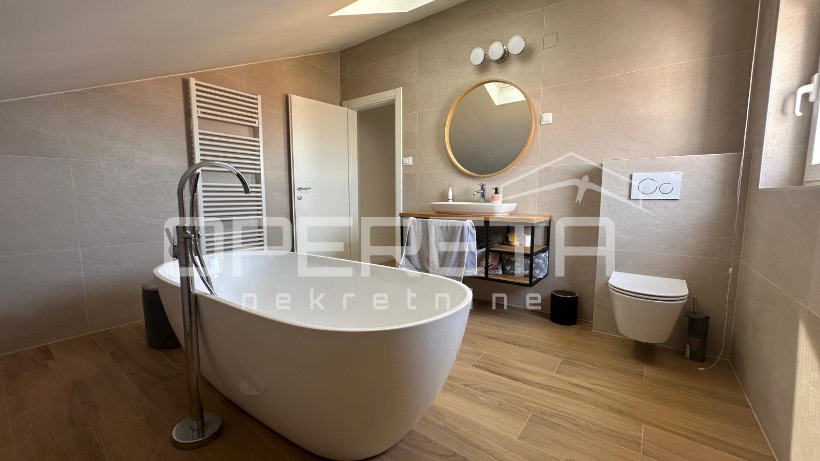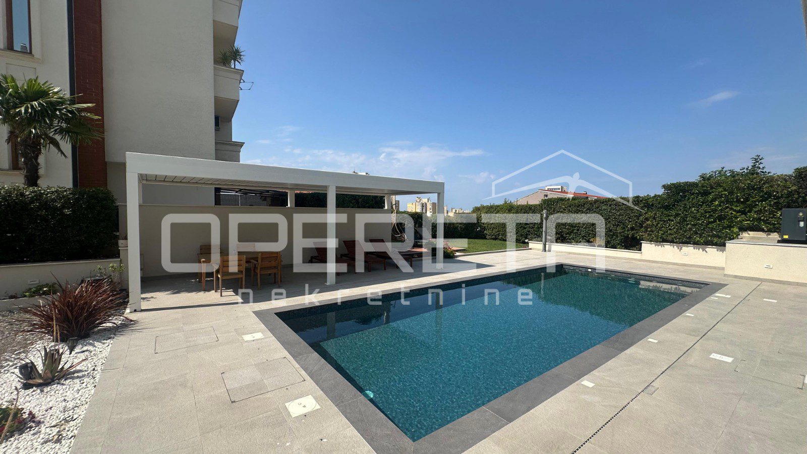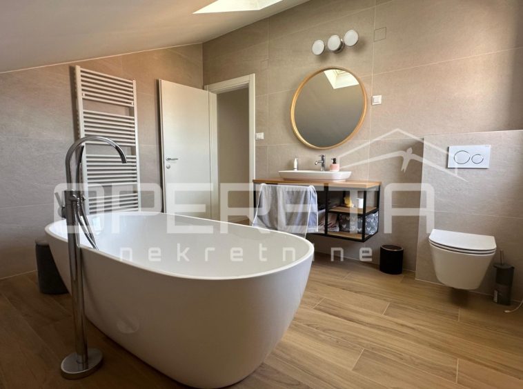 On a plot of 870 m² sits an impressive villa of exceptional construction quality, materials, and interior design, spread over five levels, with a large landscaped and fenced courtyard, swimming pool, auxiliary building, sun deck, and parking for 7 large vehicles.